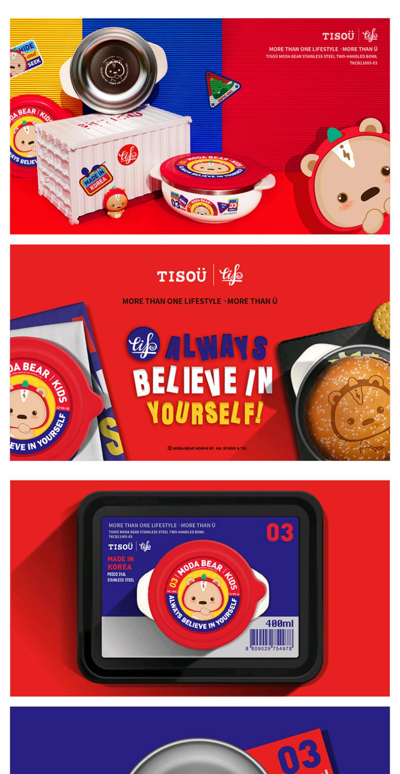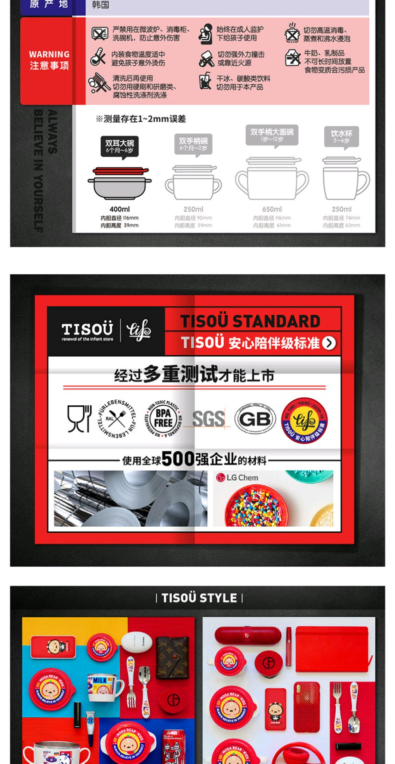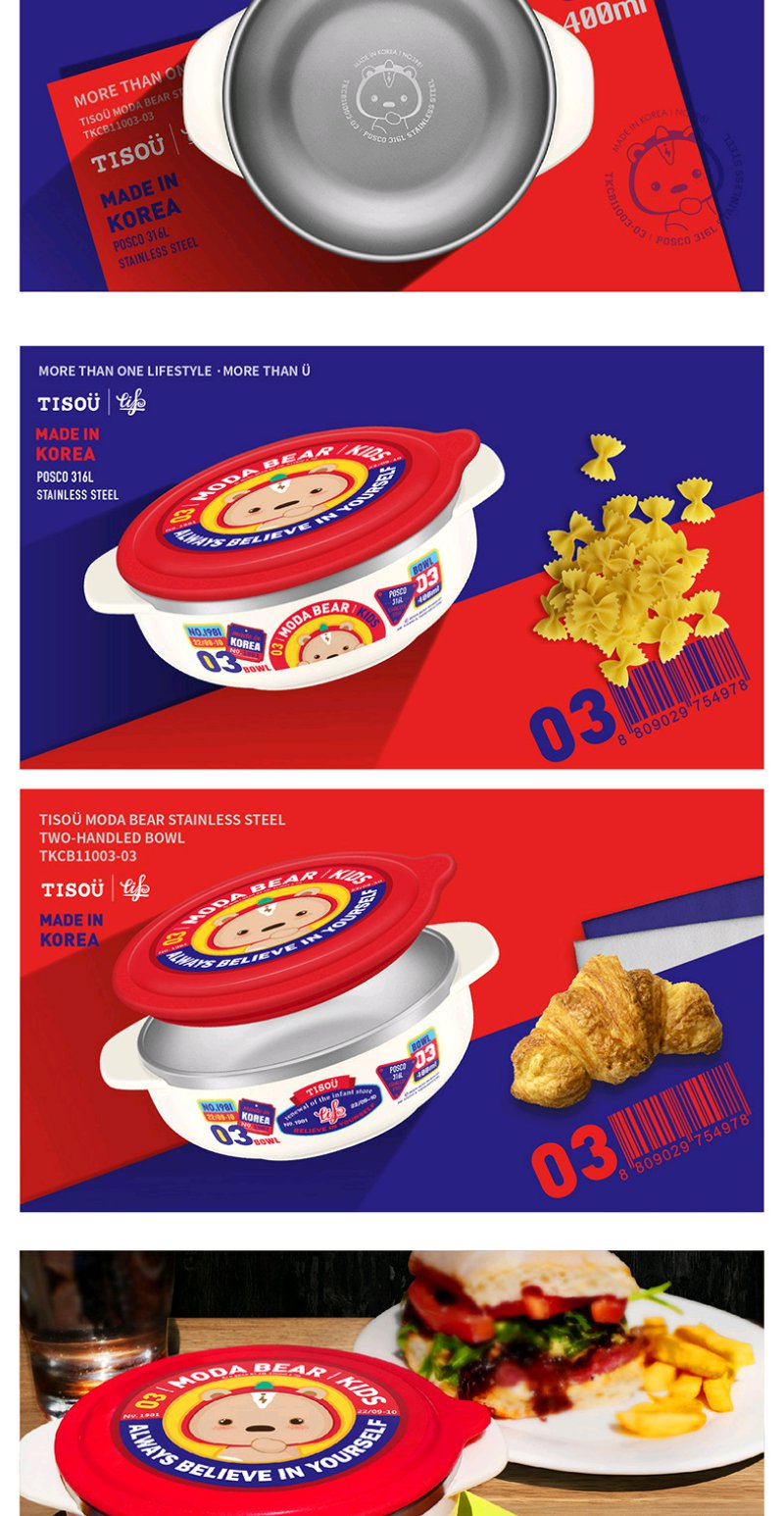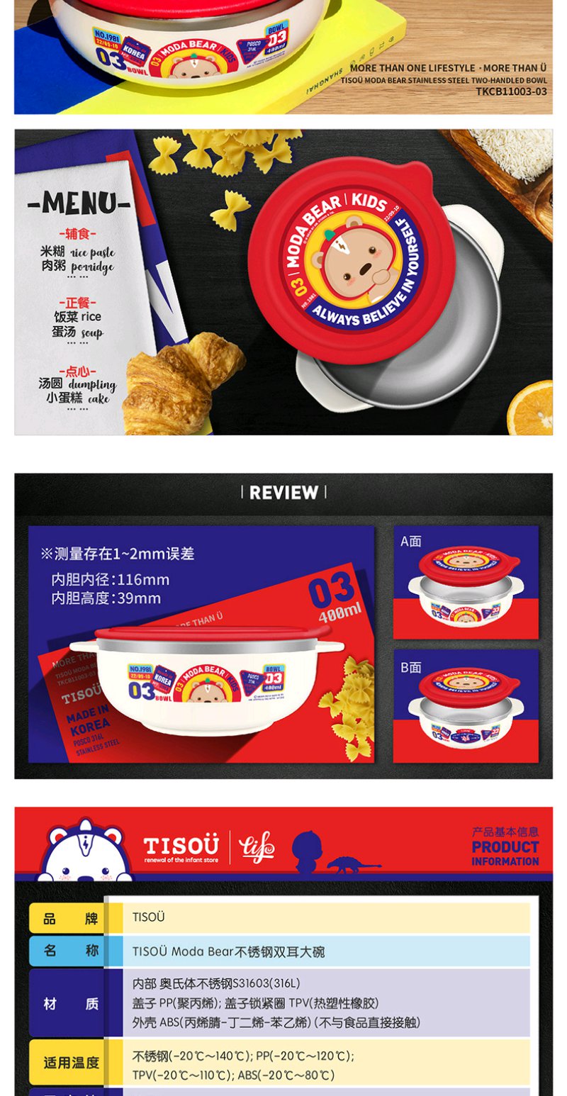 韩国进TISOU爱婴小铺ModaBear儿童餐具不锈钢儿童双耳大碗防烫