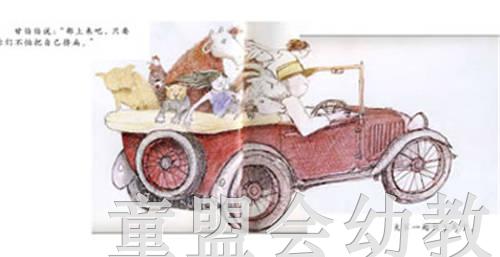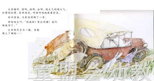 这是名作《和甘伯伯去游河》的姐妹篇。有一天,甘伯伯打算开车去兜风。他的朋友都要求上车一起去兜风,可是,半途下雨,车陷在烂泥里。小羊、小牛、鸡、绵羊、猪等等最先都不愿意下去推车,最后,甘伯伯说:“我们抛锚了。”大家只好全都下去推车。分别的时候甘伯伯还不忘和大家说,“想坐汽车,下次再来