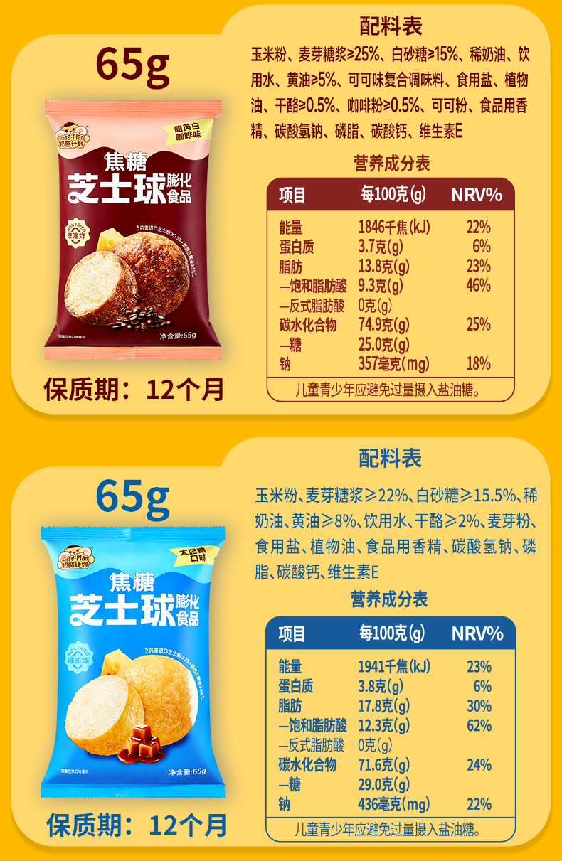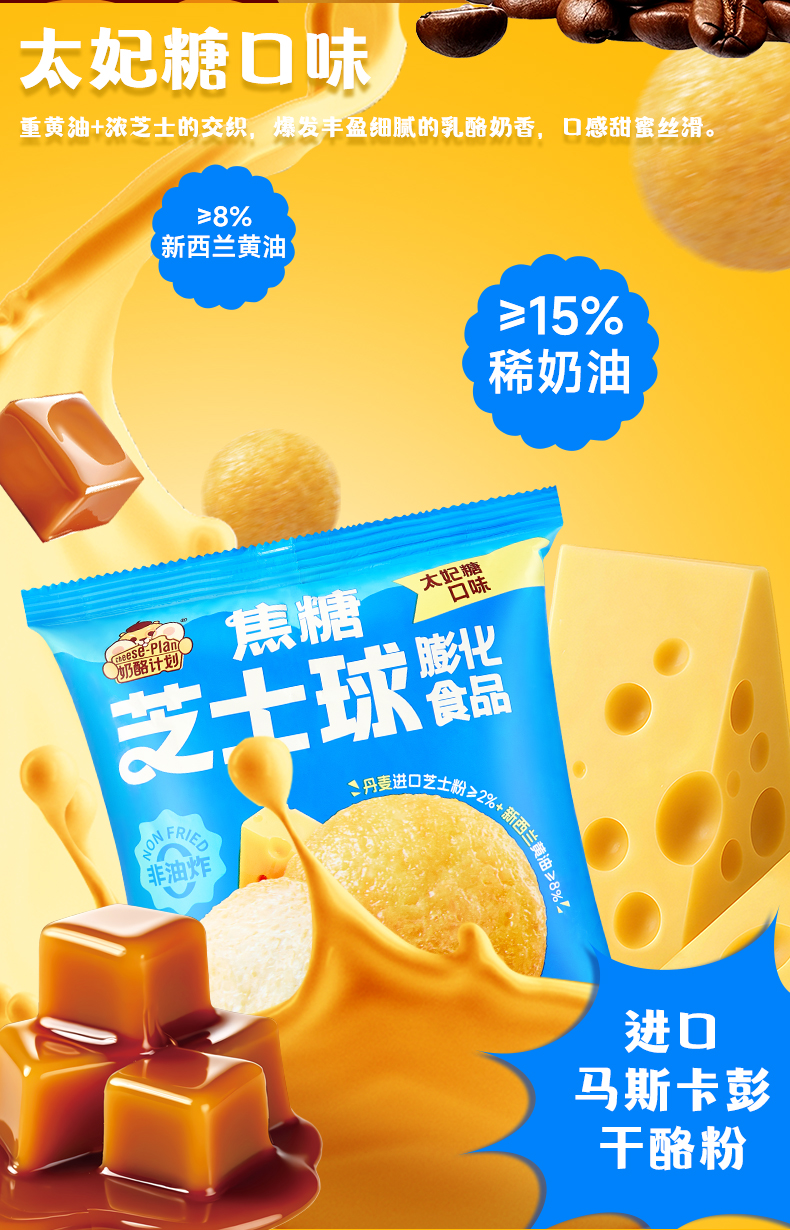 奶酪计划焦糖芝士球咖啡味35g*3+太妃糖味35g*3