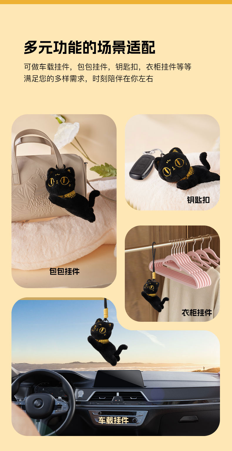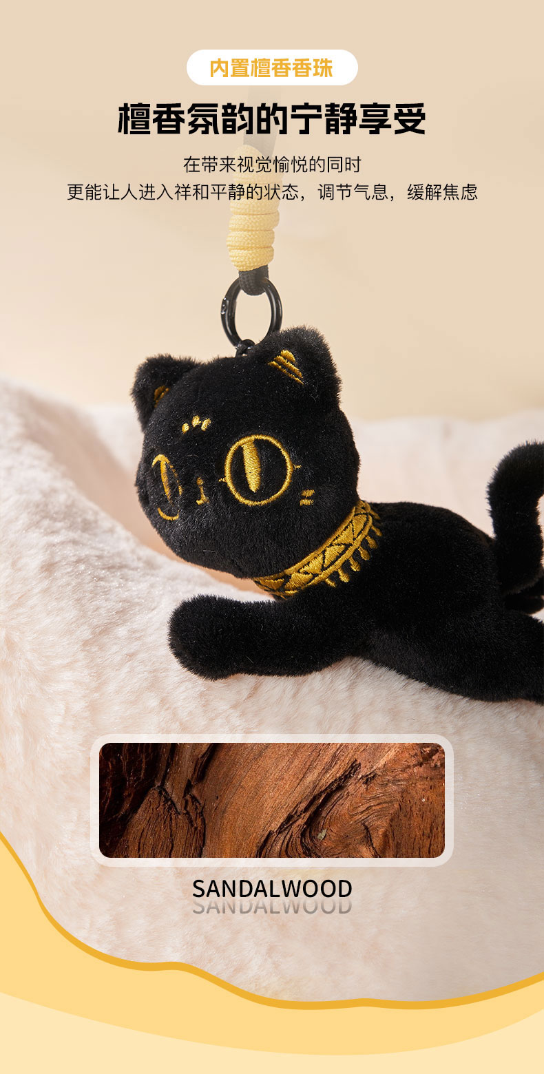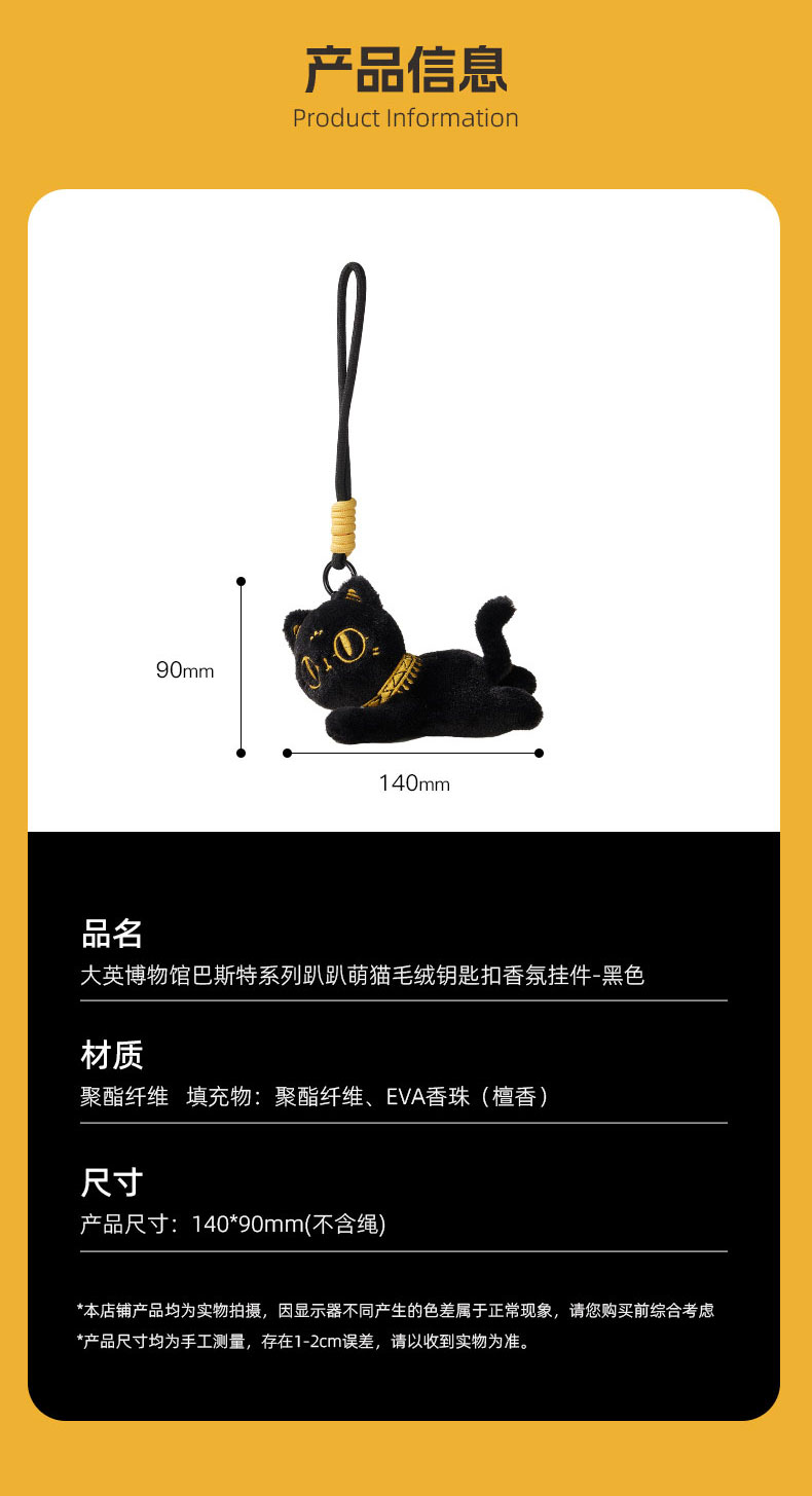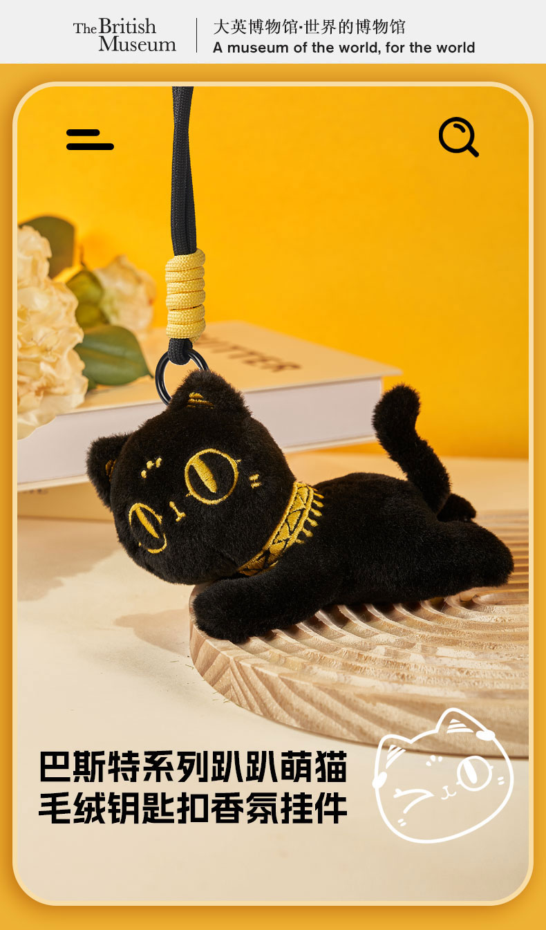 大英博物馆 巴斯特系列 趴趴萌猫 毛绒钥匙扣 香氛挂件 黑色
