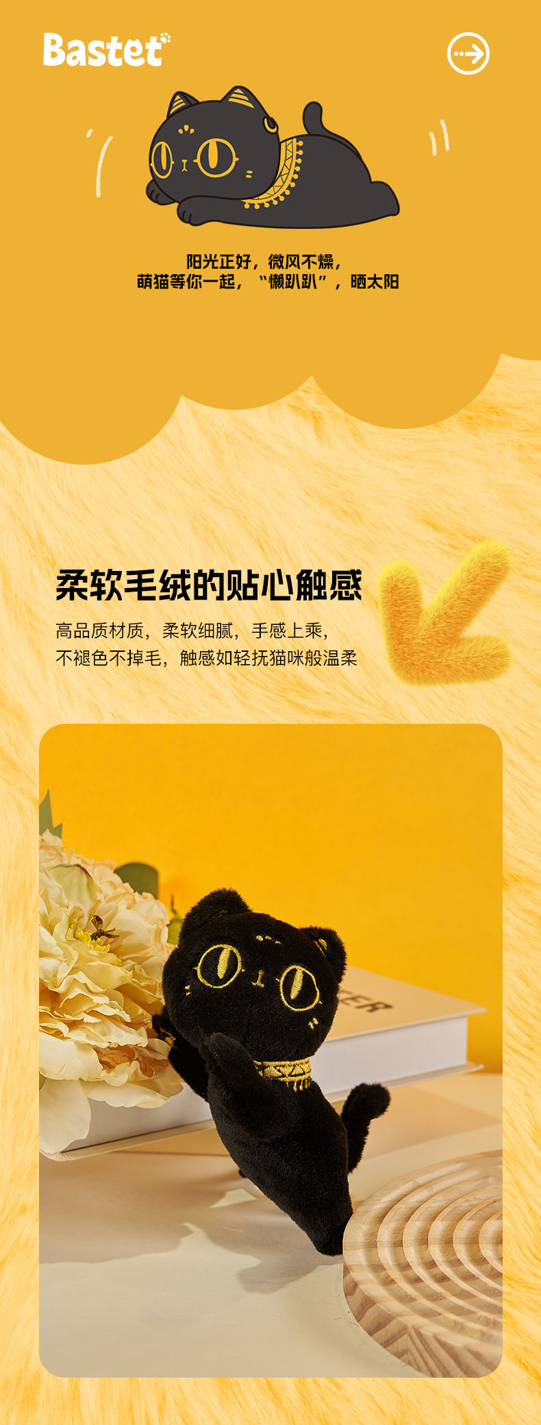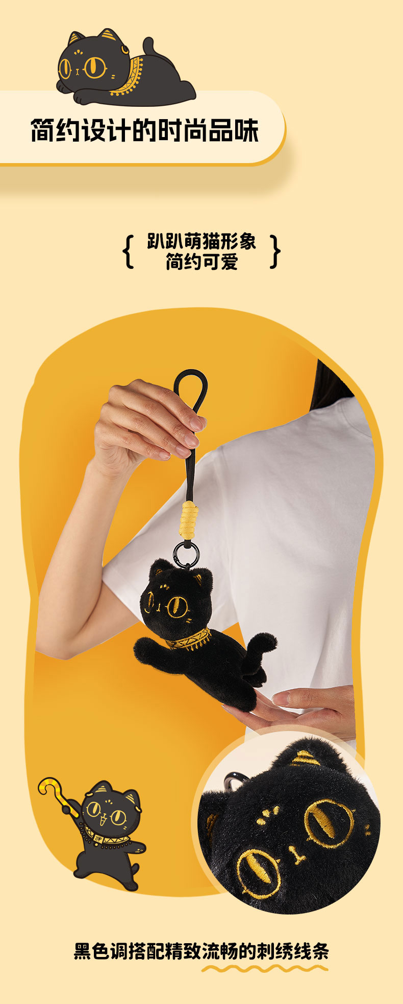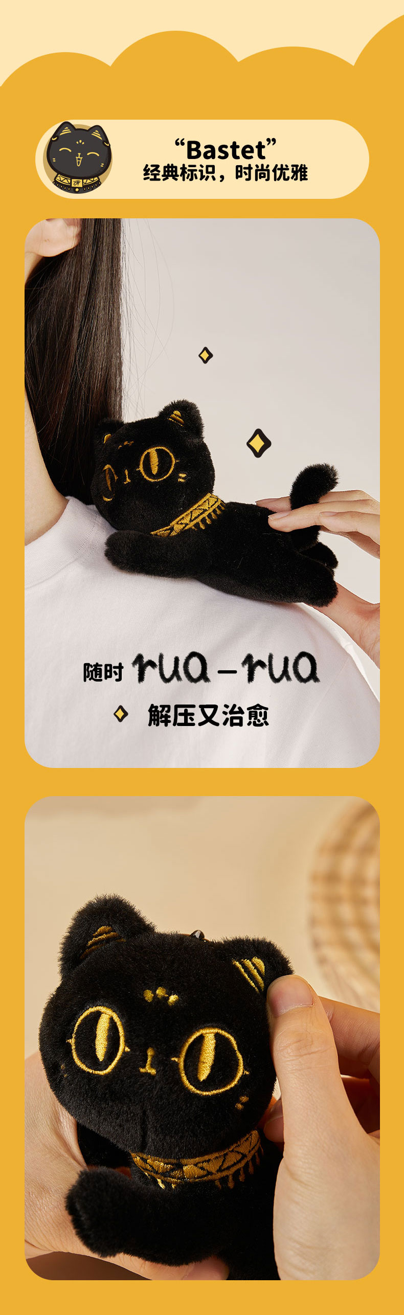 大英博物馆 巴斯特系列 趴趴萌猫 毛绒钥匙扣 香氛挂件 黑色
