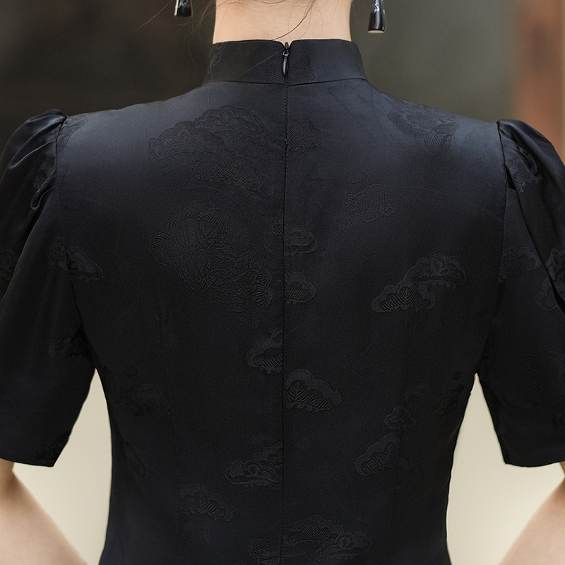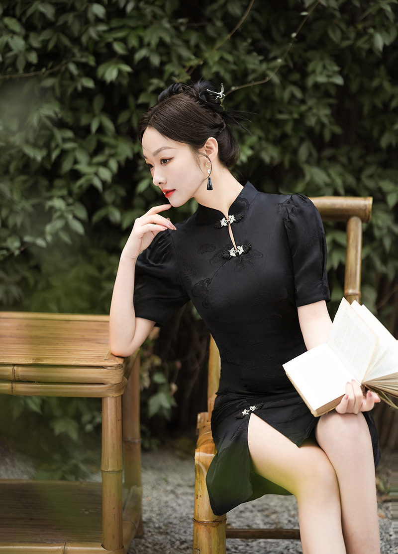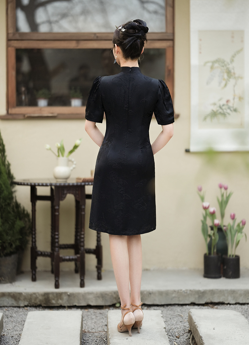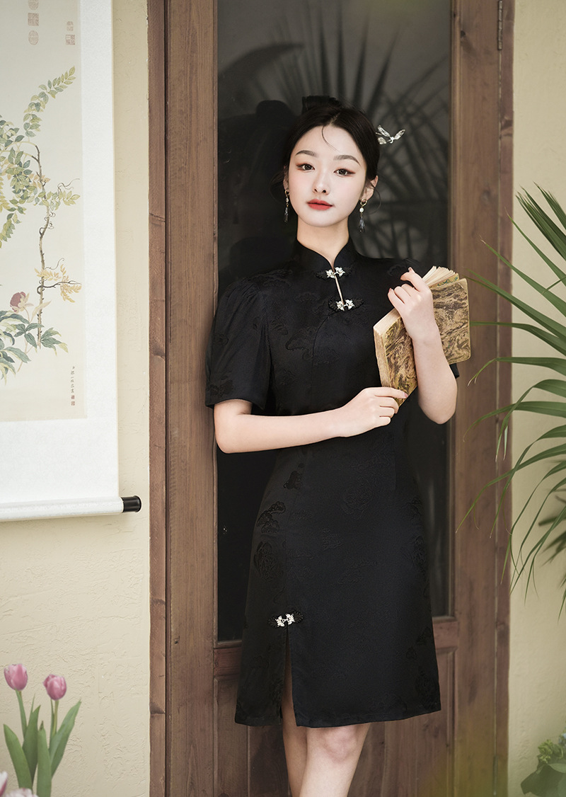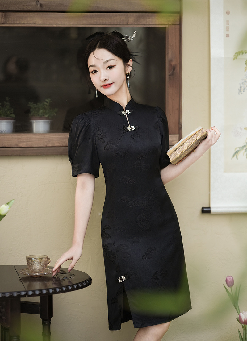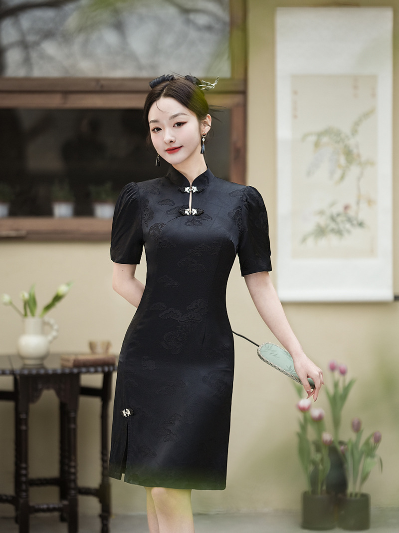 春夏新款,国潮泡泡袖小立领改良旗袍XL-24021