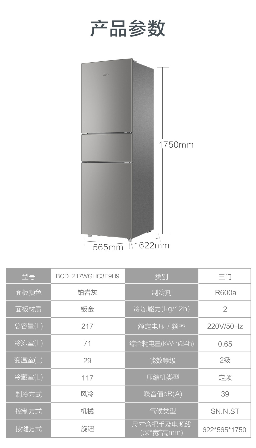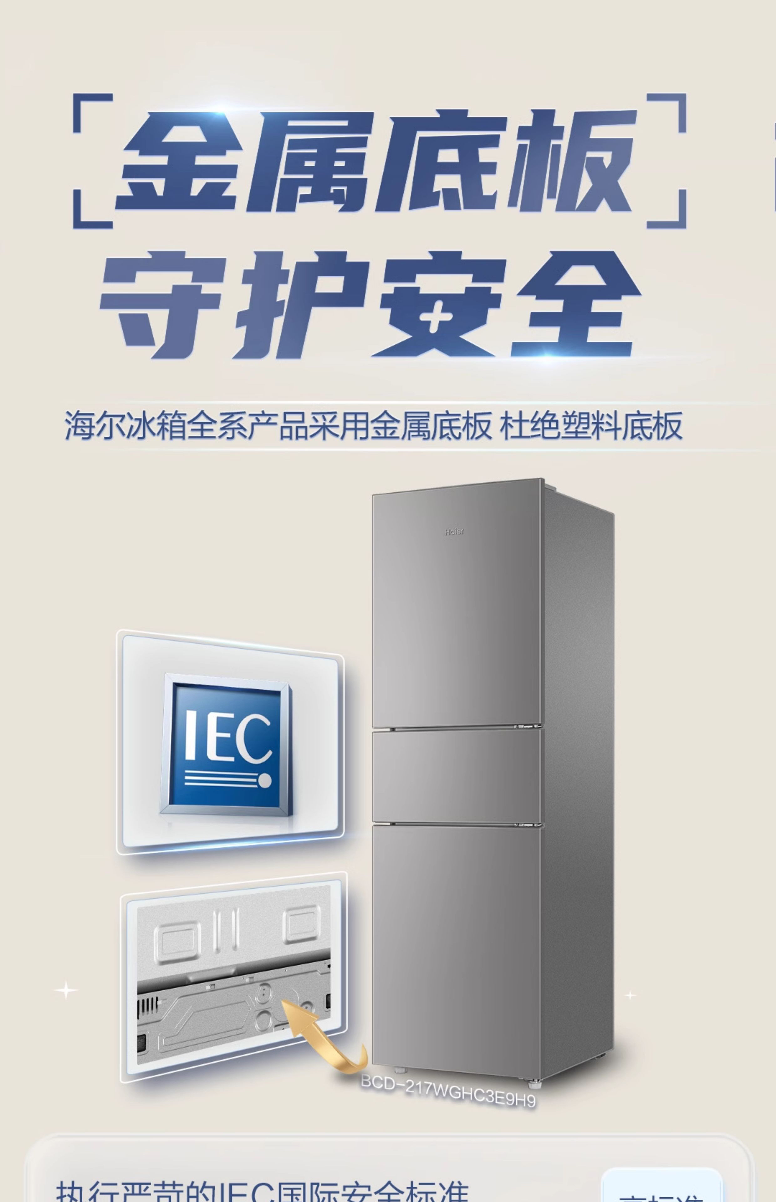 海尔(Haier)冰箱 BCD-217WGHC3E9H9