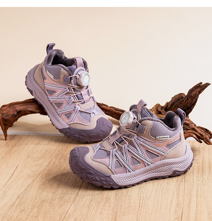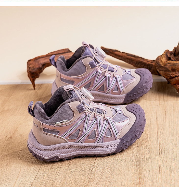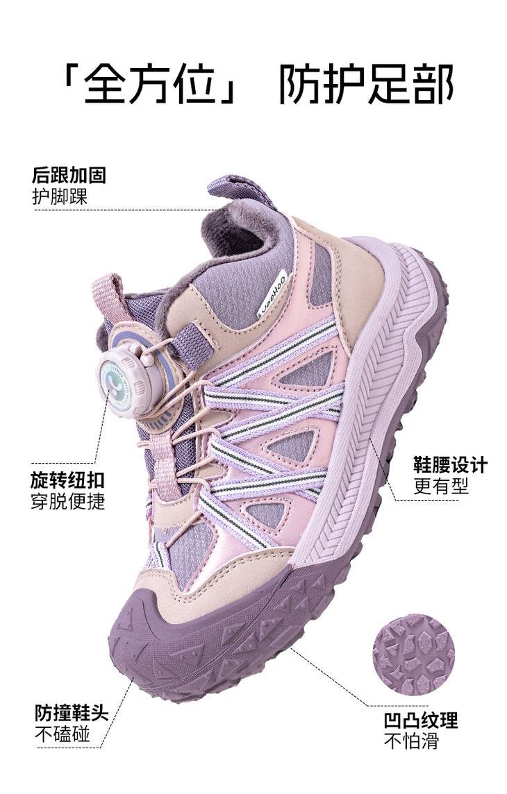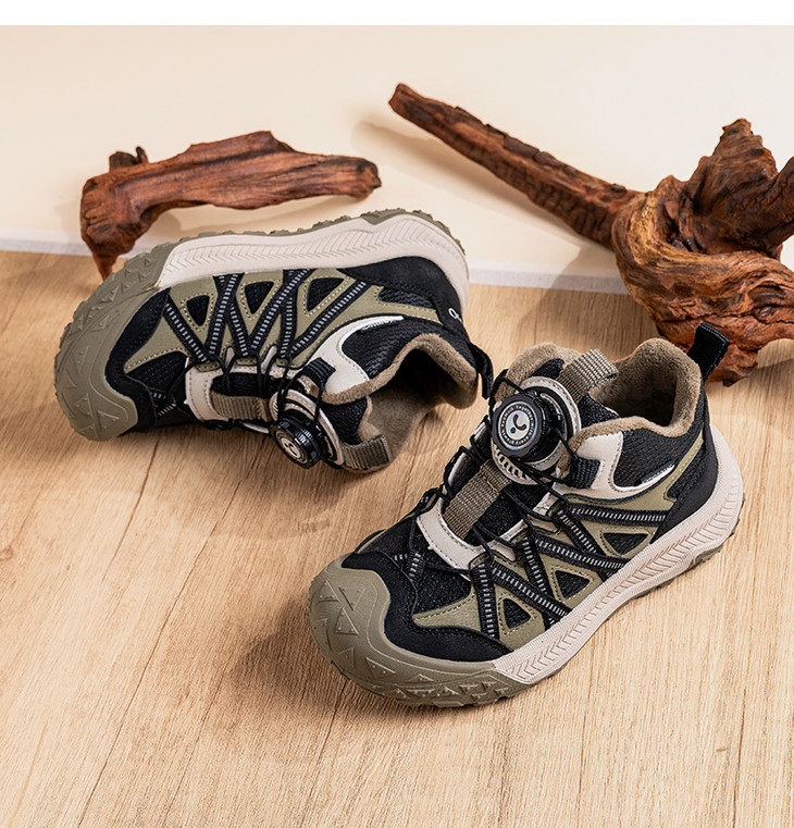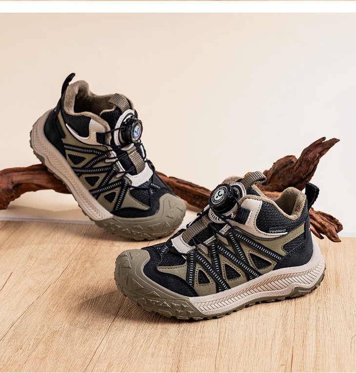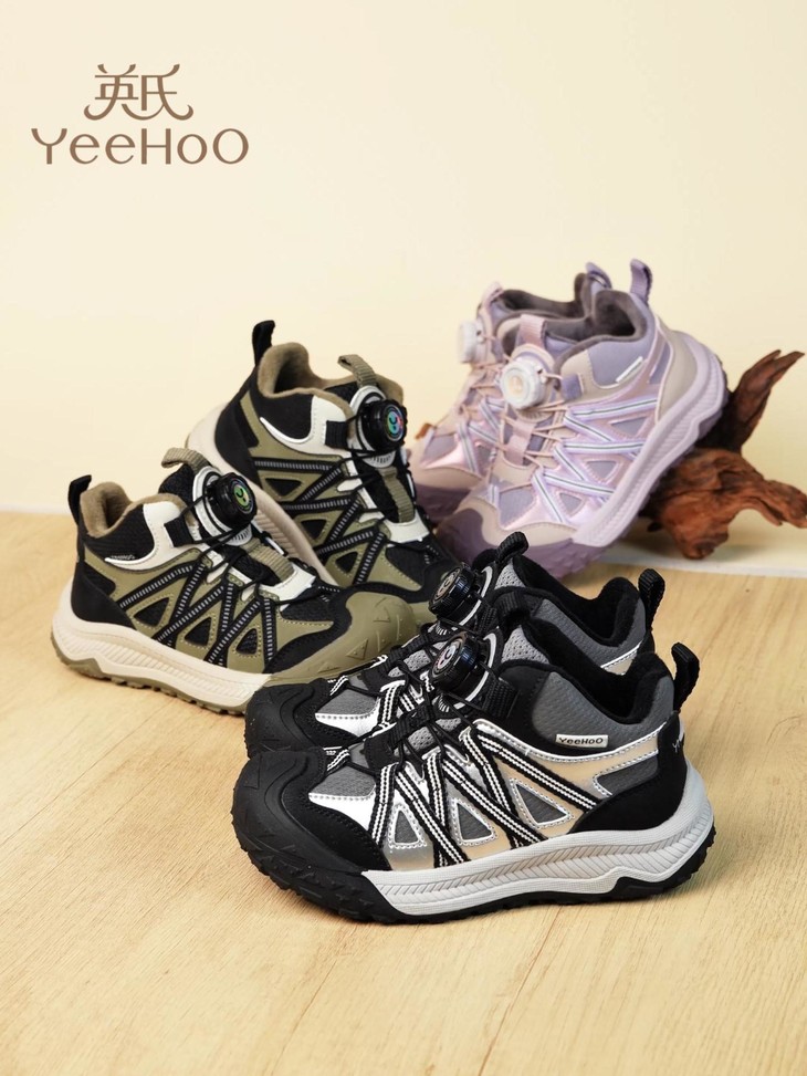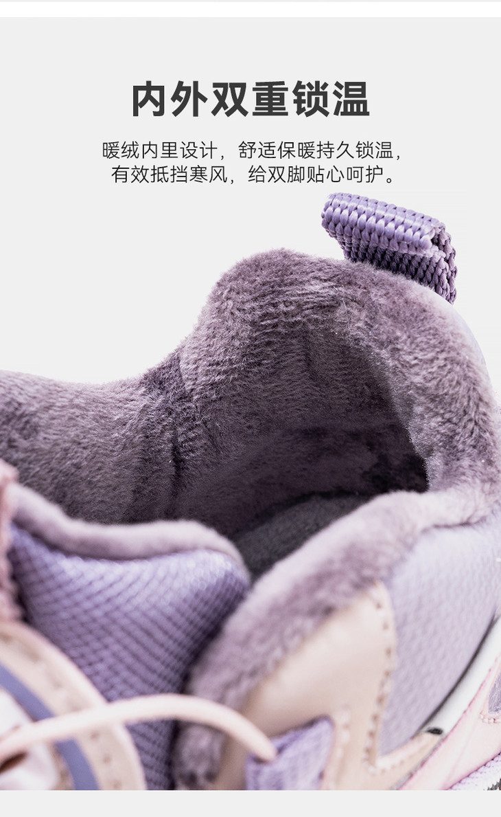 英氏YeeHo0童鞋冬季保暖加绒旋转纽扣运动鞋YHBS2541904 货号:YHBS2541904 颜色:黑绿色、黑灰色、粉紫色 尺码:31-38 材质:鞋面 合成革;鞋底 橡胶 外观时尚百搭,有多种颜色可供选择,无论是上学还是户外活动,都能让孩子展现出活力与时尚感。 这款鞋有冬季加绒款,适合在寒冷天气穿着。内里的绒毛柔软舒适,能够有效锁住热量,为孩子的双脚提供温暖的呵护,让孩子在户外活动时也不会感到寒冷。 鞋底采用了柔软的详见材质,中底部分则使用高弹力材料,能够有效缓解地面带来的冲击,减少孩子行走时的疲劳感,同时提供良好的脚感,让孩子行走更加轻松。 鞋头部分做了加固处理,能够防止鞋子在受到碰撞时轻易变形,保护孩子的脚趾。 后跟处也有加固设计,有助于稳定孩子的脚部,让脚型得到更好的保护,同时也增加了鞋子的耐用性。 鞋子采用旋钮纽扣设计,替代了传统的鞋带,孩子自己可以轻松调节鞋子的松紧度,方便穿脱,同时也避免了鞋带散开的问题,让家长更加省心。