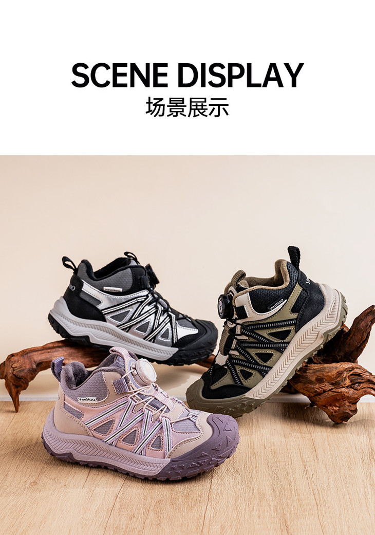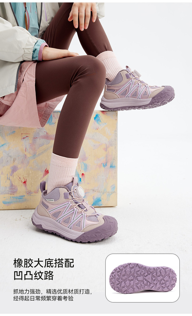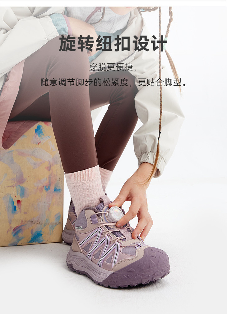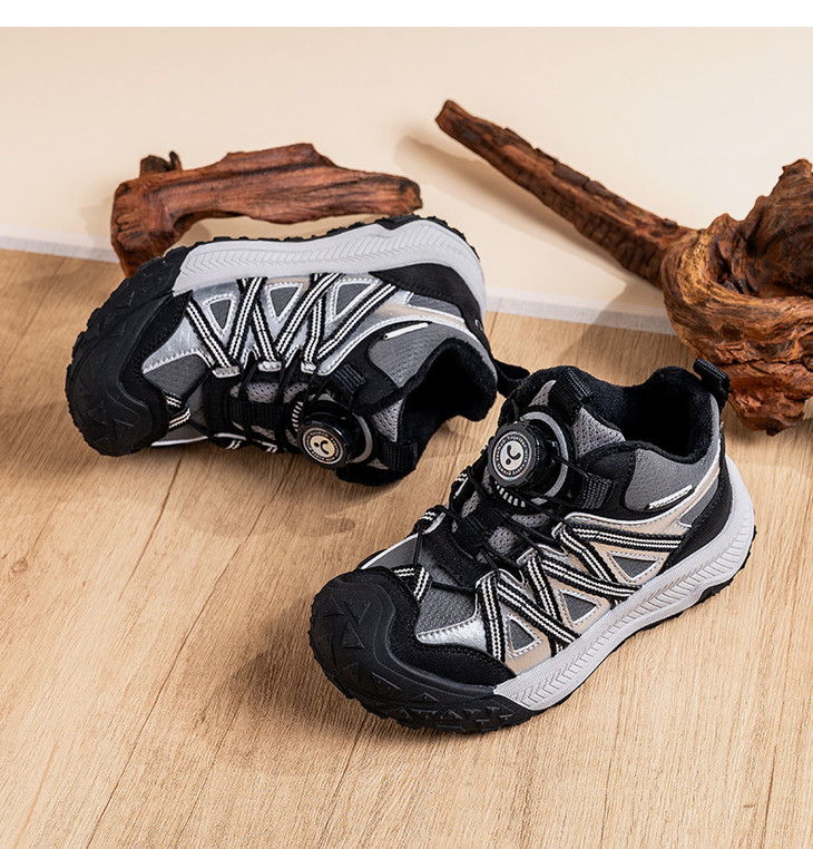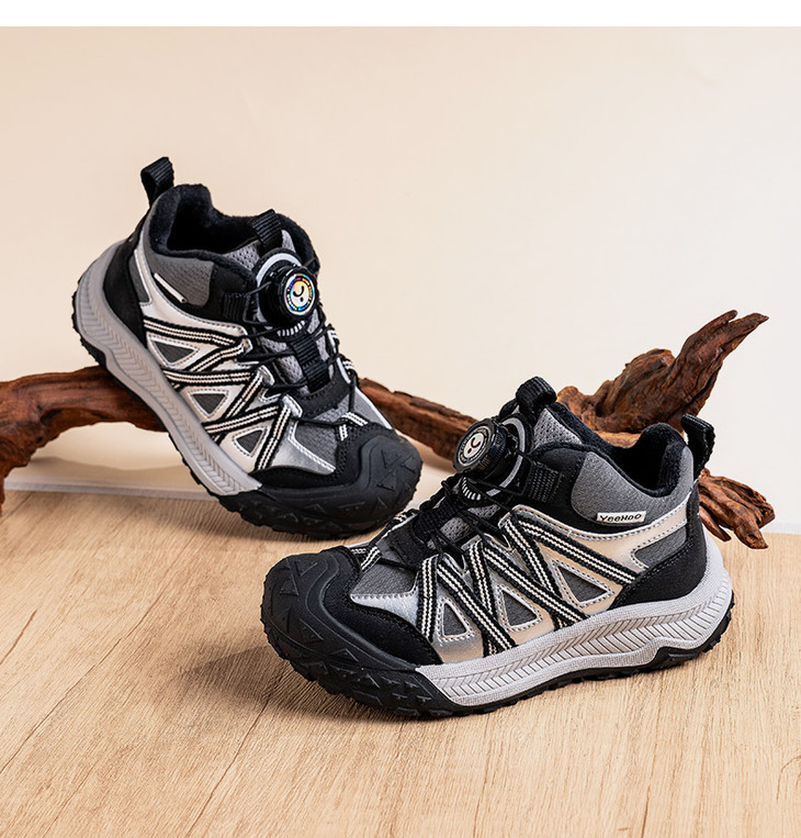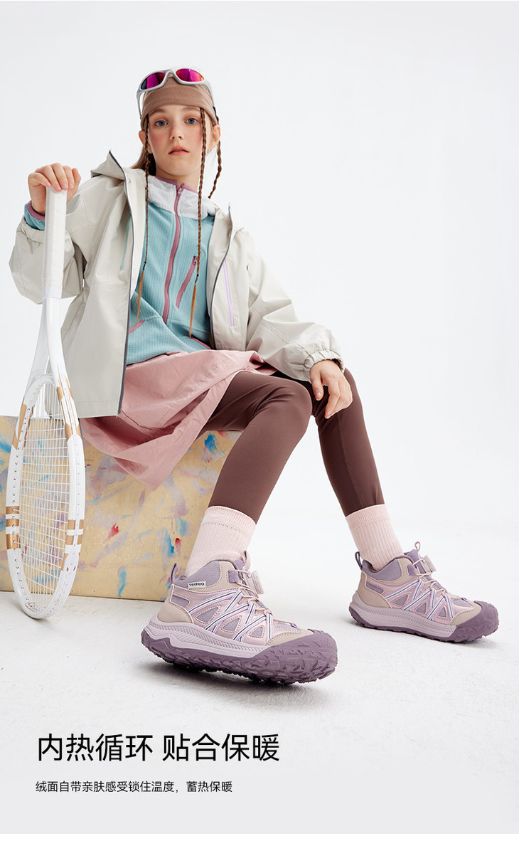 英氏YeeHo0童鞋冬季保暖加绒旋转纽扣运动鞋YHBS2541904 货号:YHBS2541904 颜色:黑绿色、黑灰色、粉紫色 尺码:31-38 材质:鞋面 合成革;鞋底 橡胶 外观时尚百搭,有多种颜色可供选择,无论是上学还是户外活动,都能让孩子展现出活力与时尚感。 这款鞋有冬季加绒款,适合在寒冷天气穿着。内里的绒毛柔软舒适,能够有效锁住热量,为孩子的双脚提供温暖的呵护,让孩子在户外活动时也不会感到寒冷。 鞋底采用了柔软的详见材质,中底部分则使用高弹力材料,能够有效缓解地面带来的冲击,减少孩子行走时的疲劳感,同时提供良好的脚感,让孩子行走更加轻松。 鞋头部分做了加固处理,能够防止鞋子在受到碰撞时轻易变形,保护孩子的脚趾。 后跟处也有加固设计,有助于稳定孩子的脚部,让脚型得到更好的保护,同时也增加了鞋子的耐用性。 鞋子采用旋钮纽扣设计,替代了传统的鞋带,孩子自己可以轻松调节鞋子的松紧度,方便穿脱,同时也避免了鞋带散开的问题,让家长更加省心。