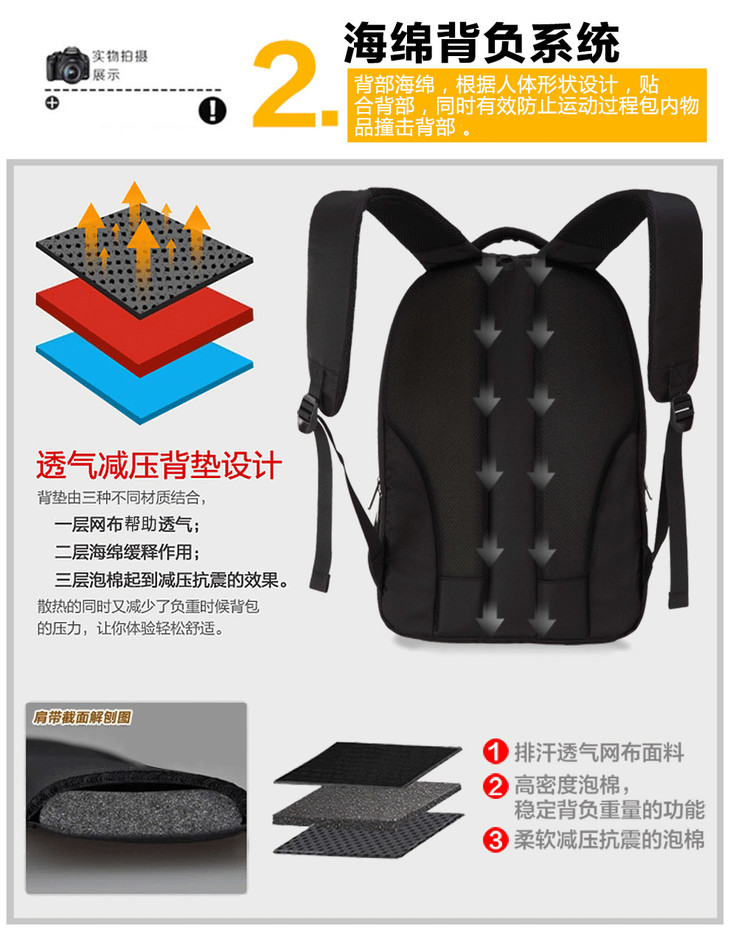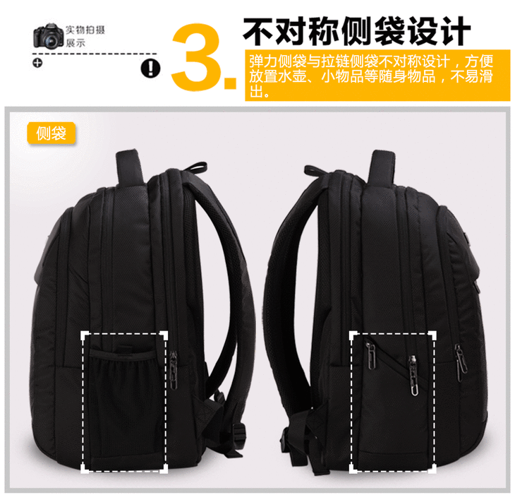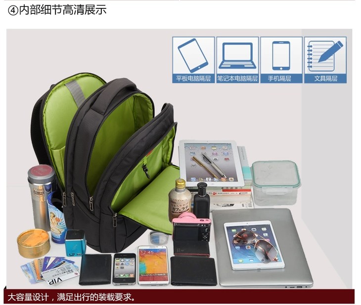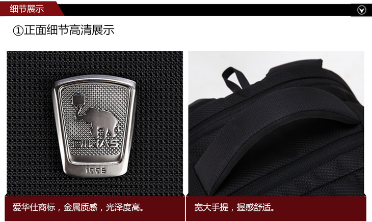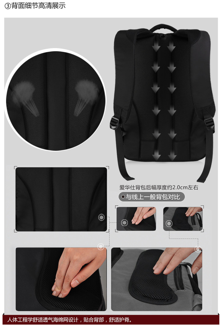 爱华仕 多功能商务专业笔记本电脑包 双肩包男 旅行背包 OCB4148 黑色