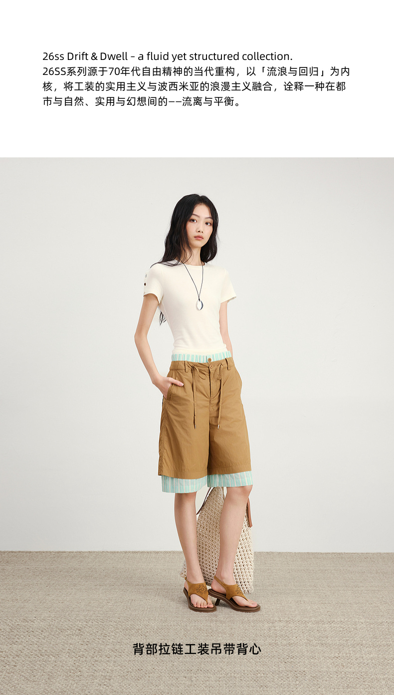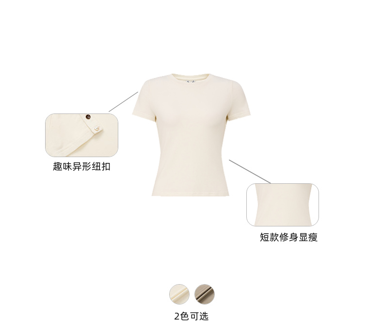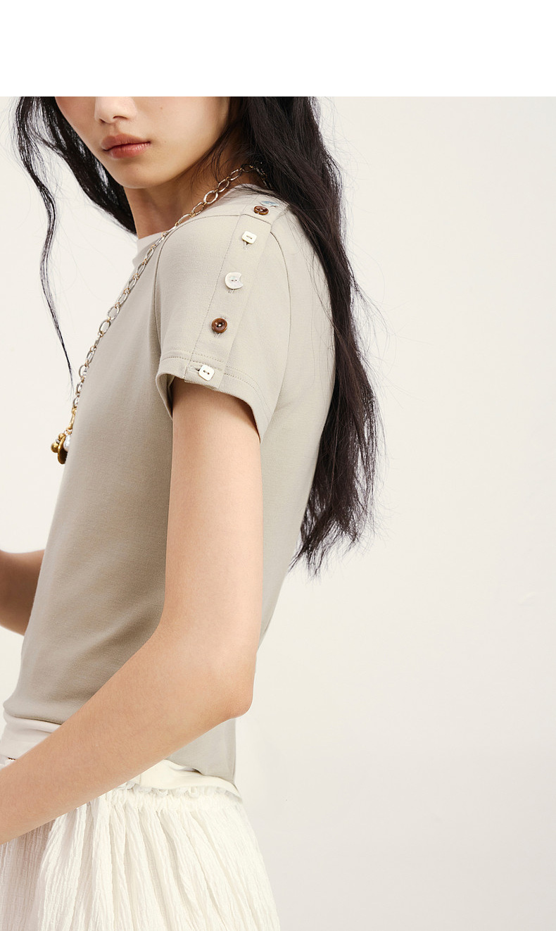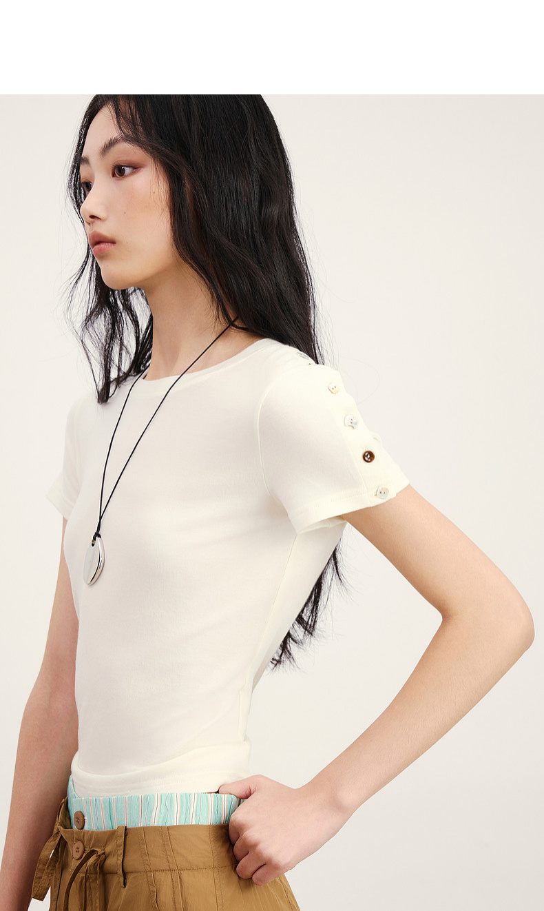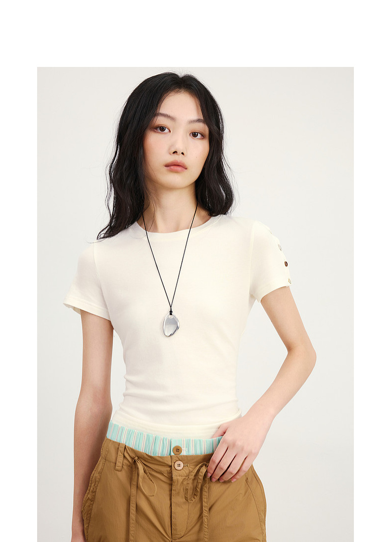 lost in echo2026春夏新款圆领亲肤修身短款显瘦精致纽扣T恤上衣