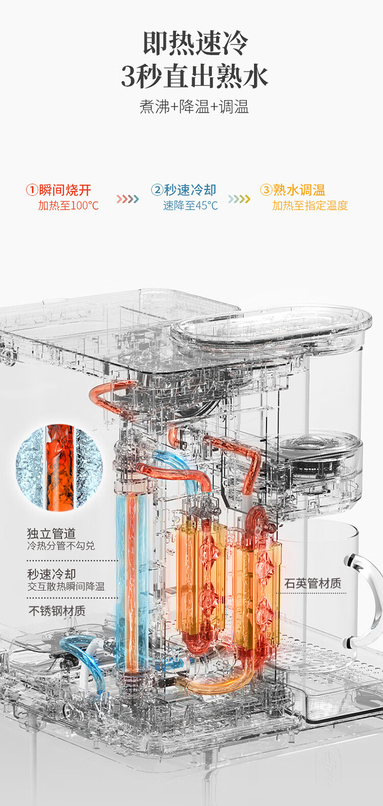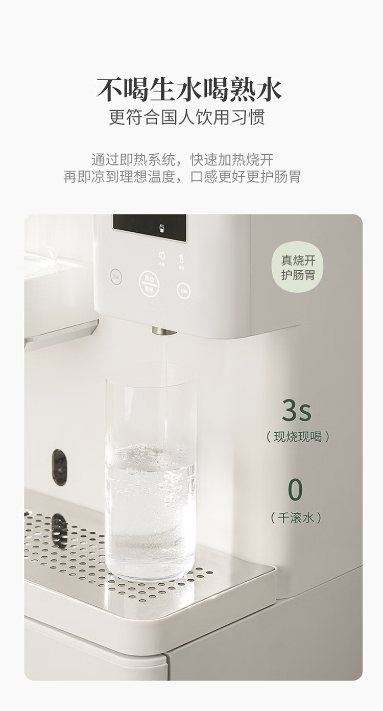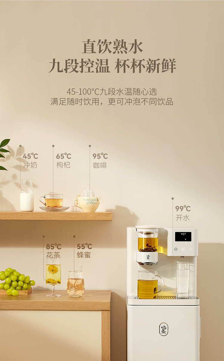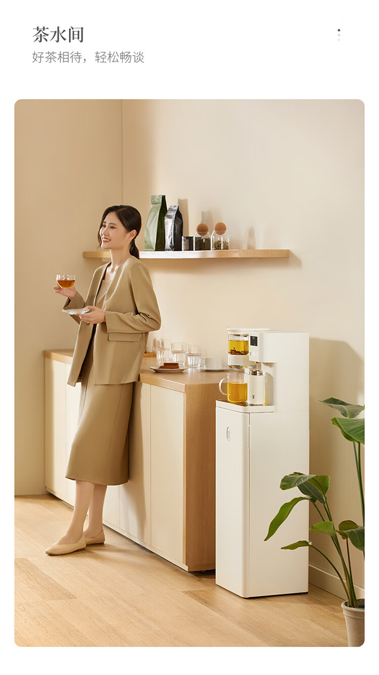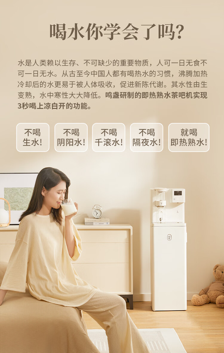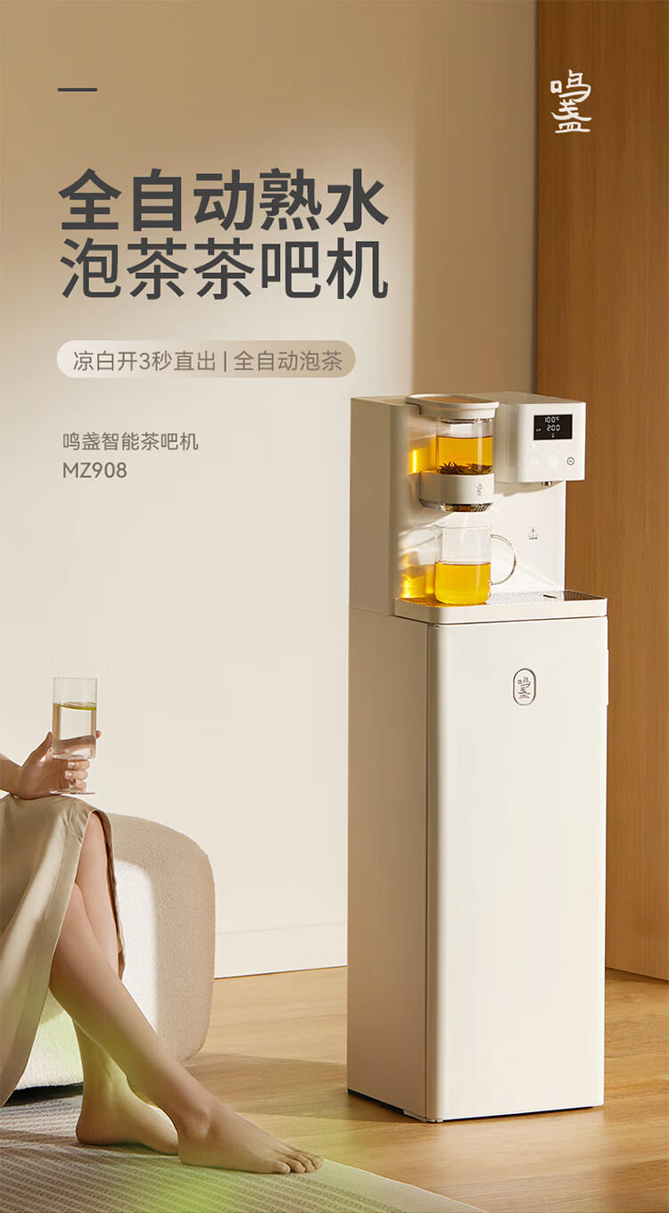 鸣盏即热茶吧机饮水机 智能熟水泡茶机 茶吧饮水一体柜 高端客厅用办公室大型饮水机教师中秋节礼物 MZ908米白色即热型