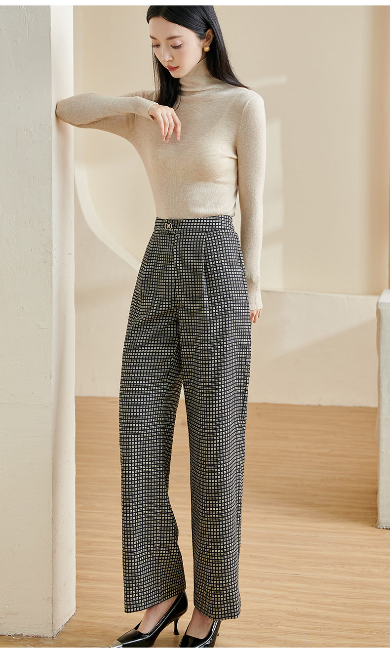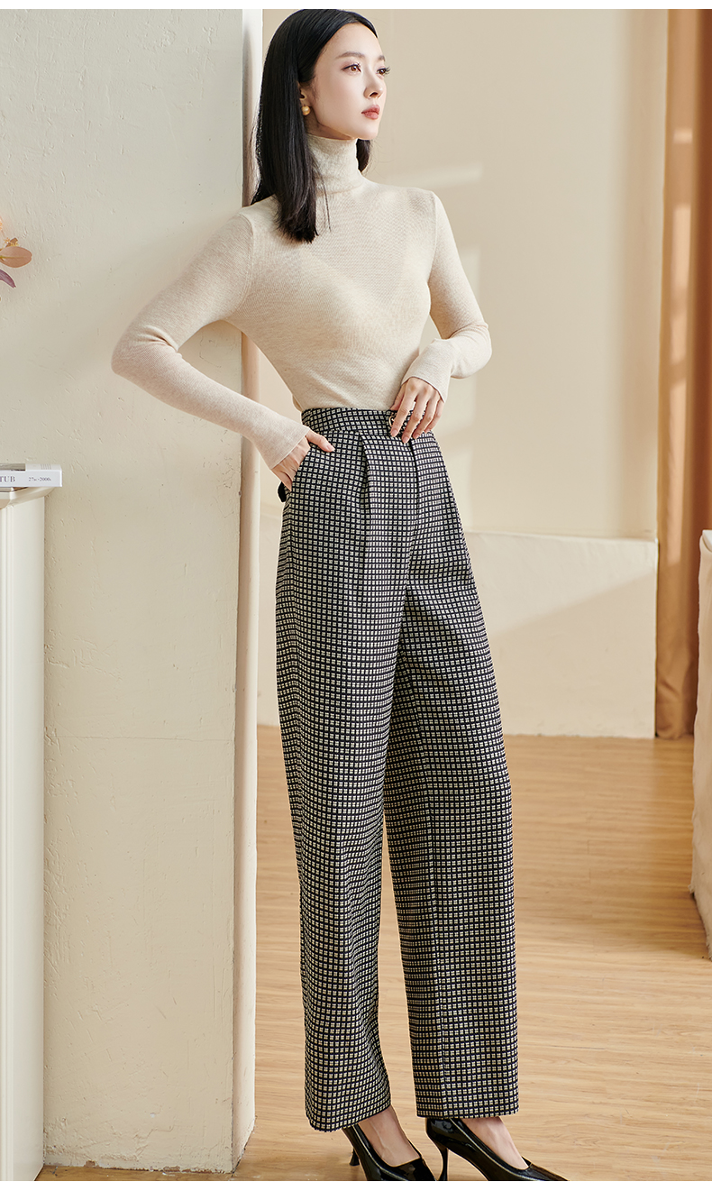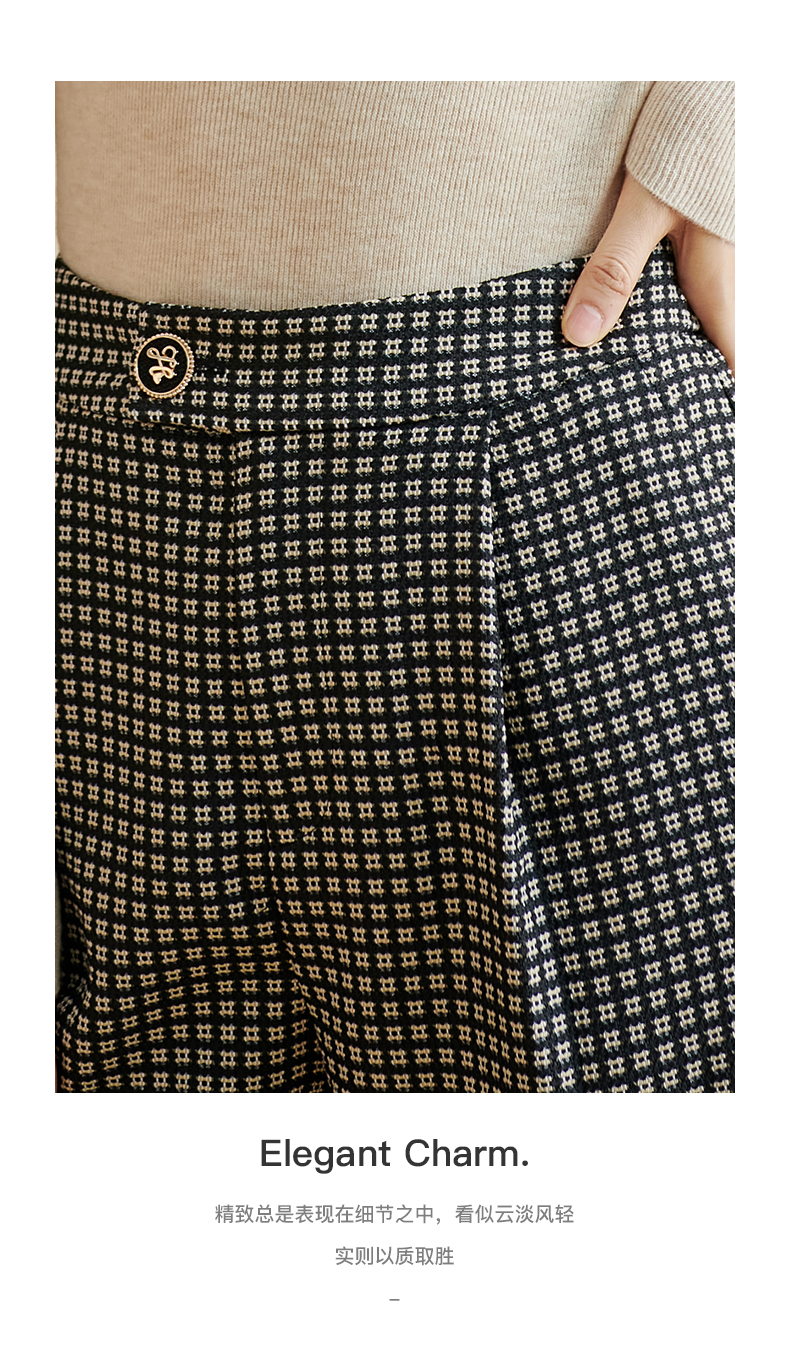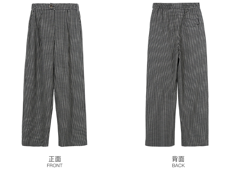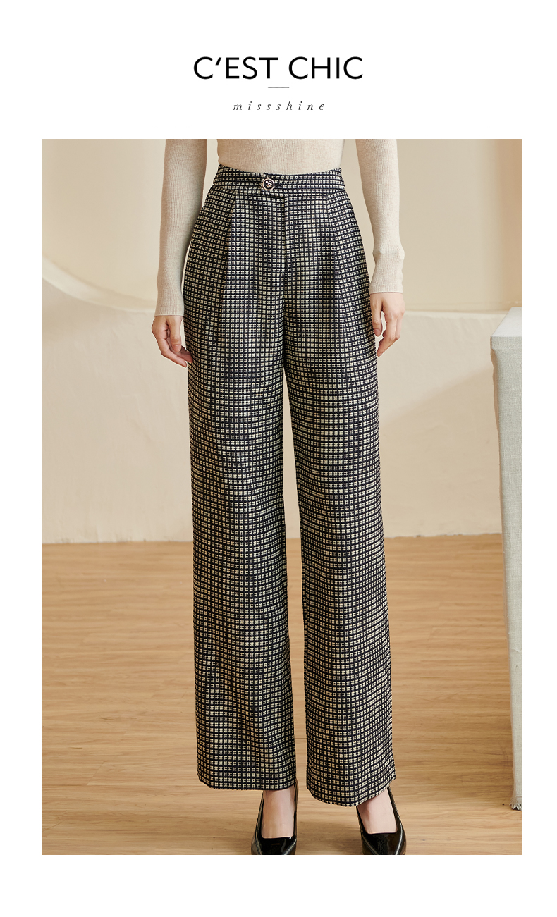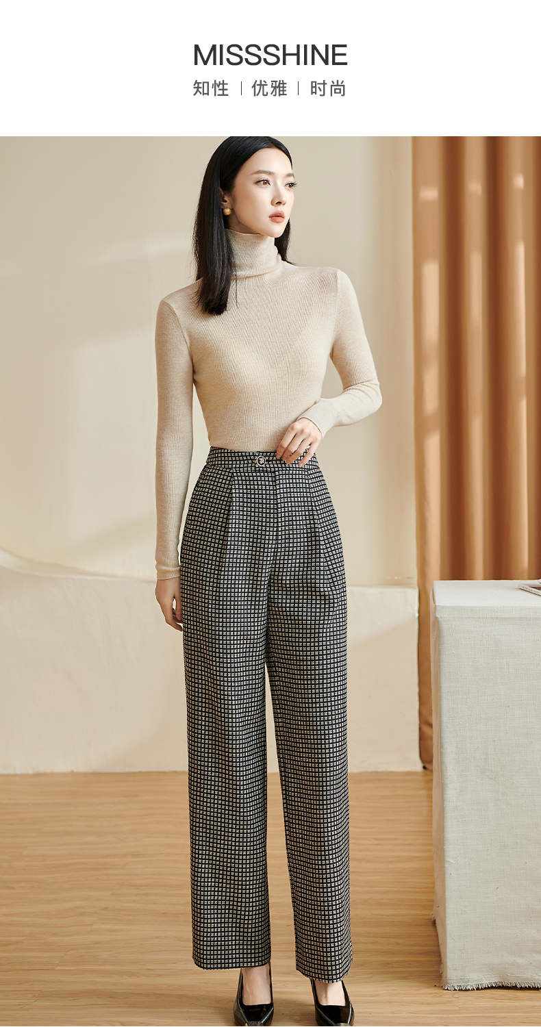 剩M/L/XL 米思阳2026春季新款时尚设计感格纹休闲裤高腰修身显瘦直筒裤2667