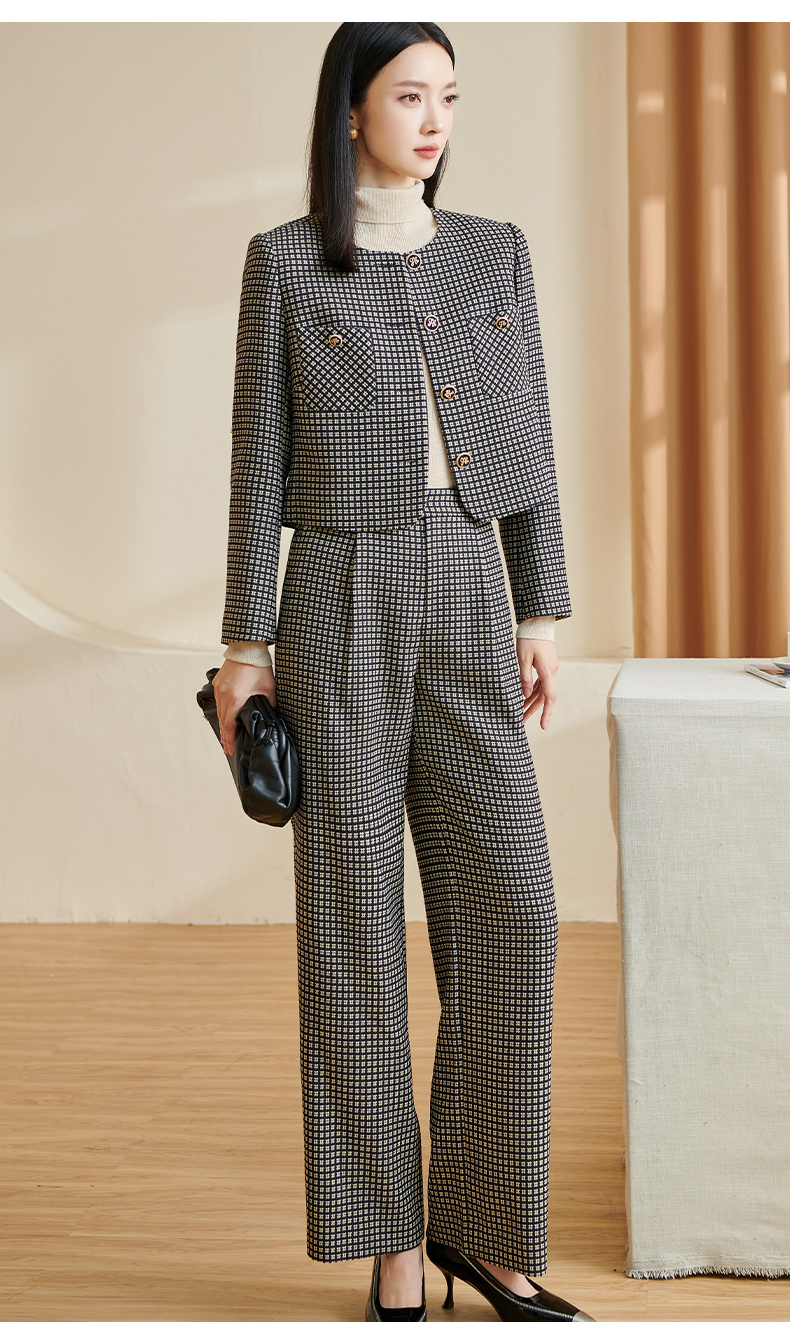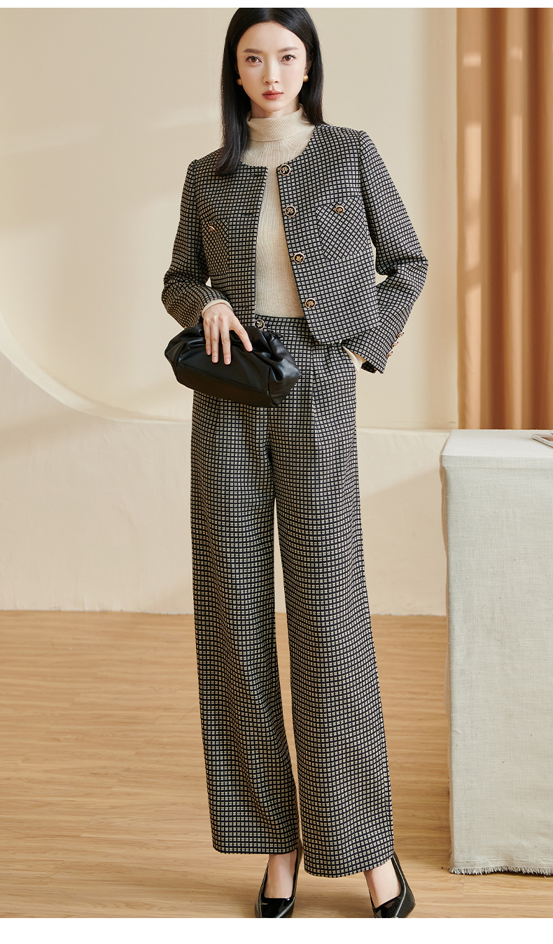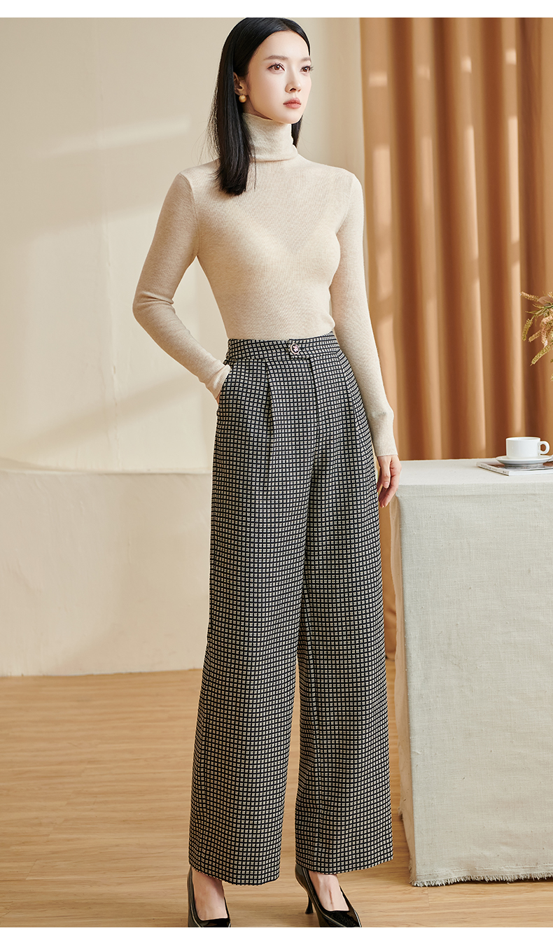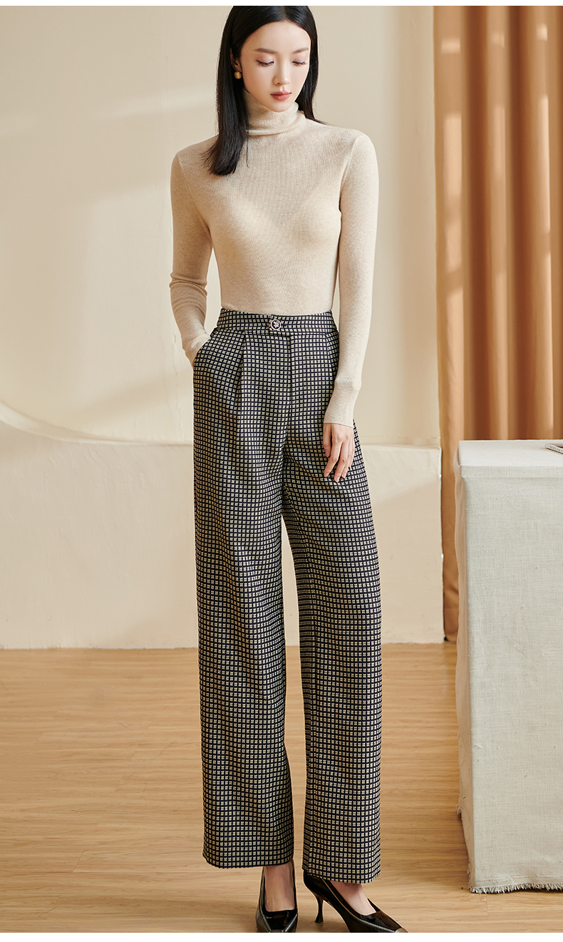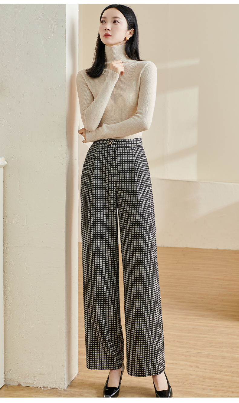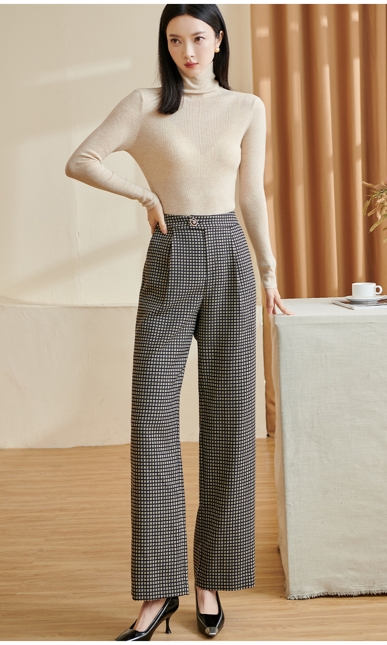 剩M/L/XL 米思阳2026春季新款时尚设计感格纹休闲裤高腰修身显瘦直筒裤2667