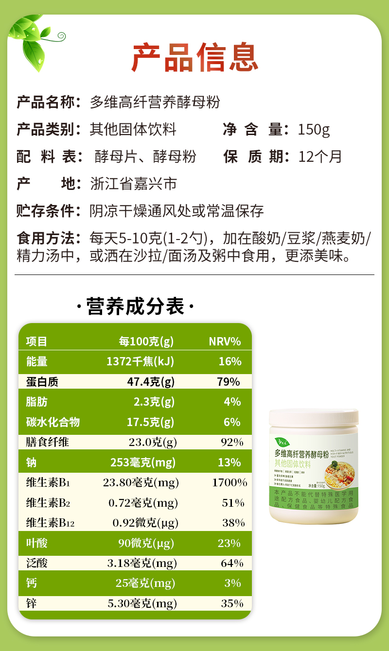 【悦意】多维高纤营养酵母粉150g*1罐 FX