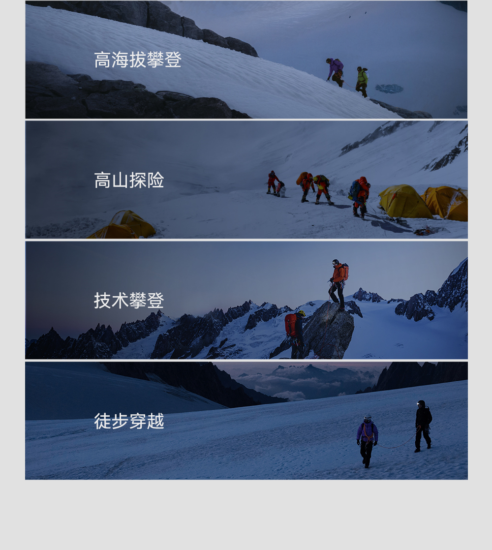 致力于推动登山及探险运动发展,为运动员及专业爱好者提供高性能的户外装备。