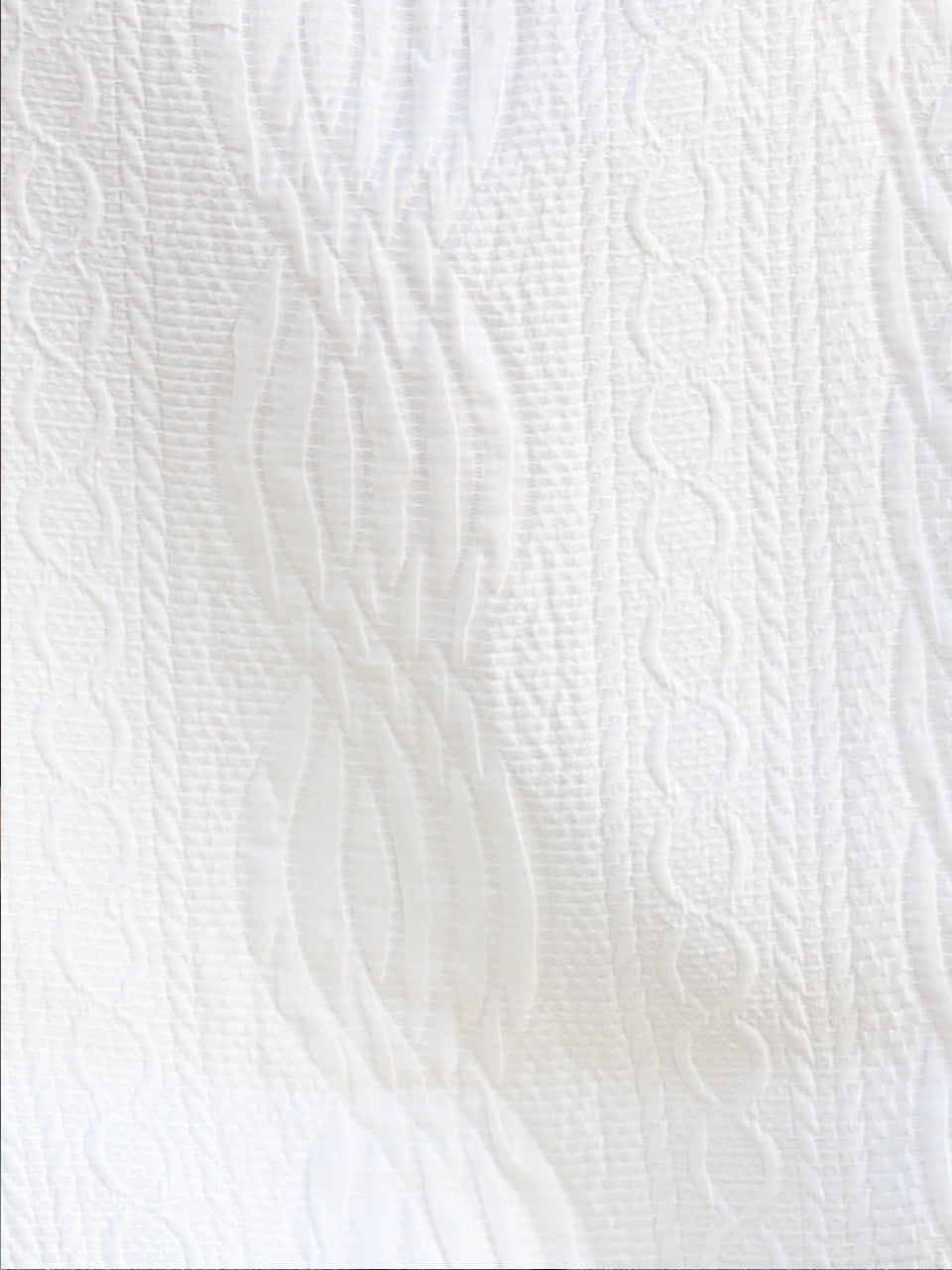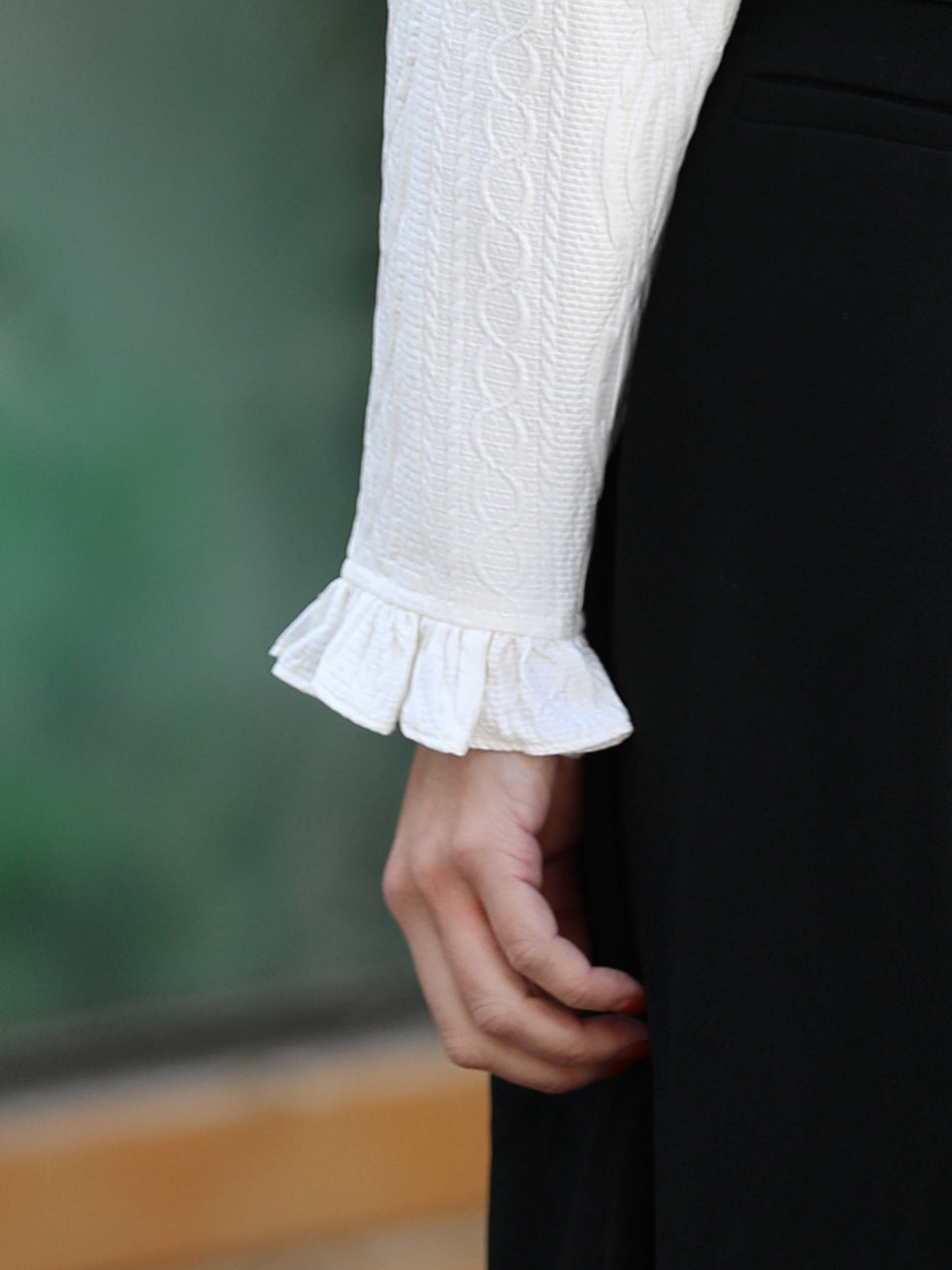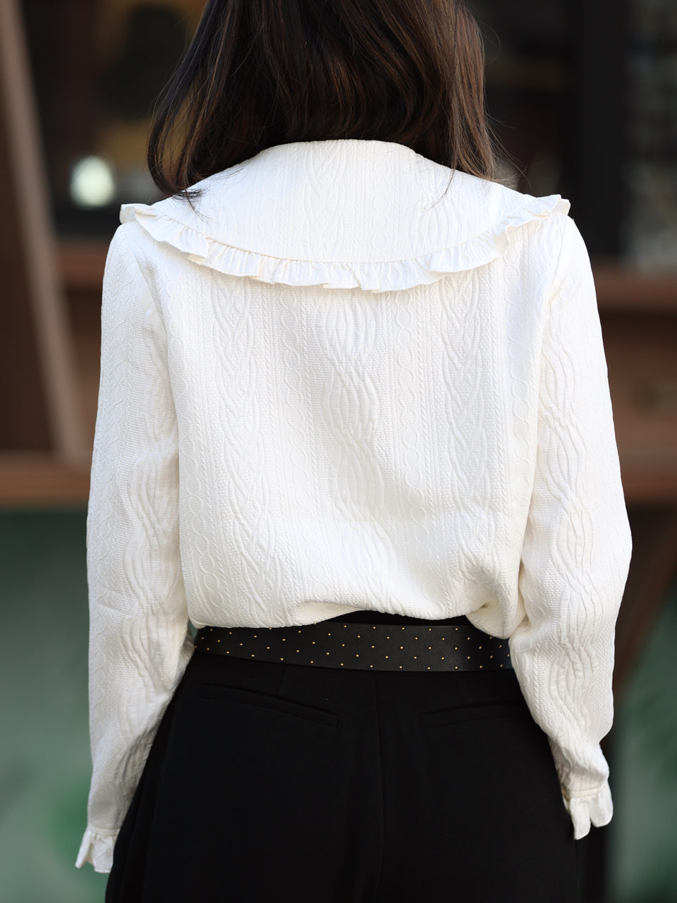 TYNVIE 压花白色荷叶边领长袖丝质衬衫