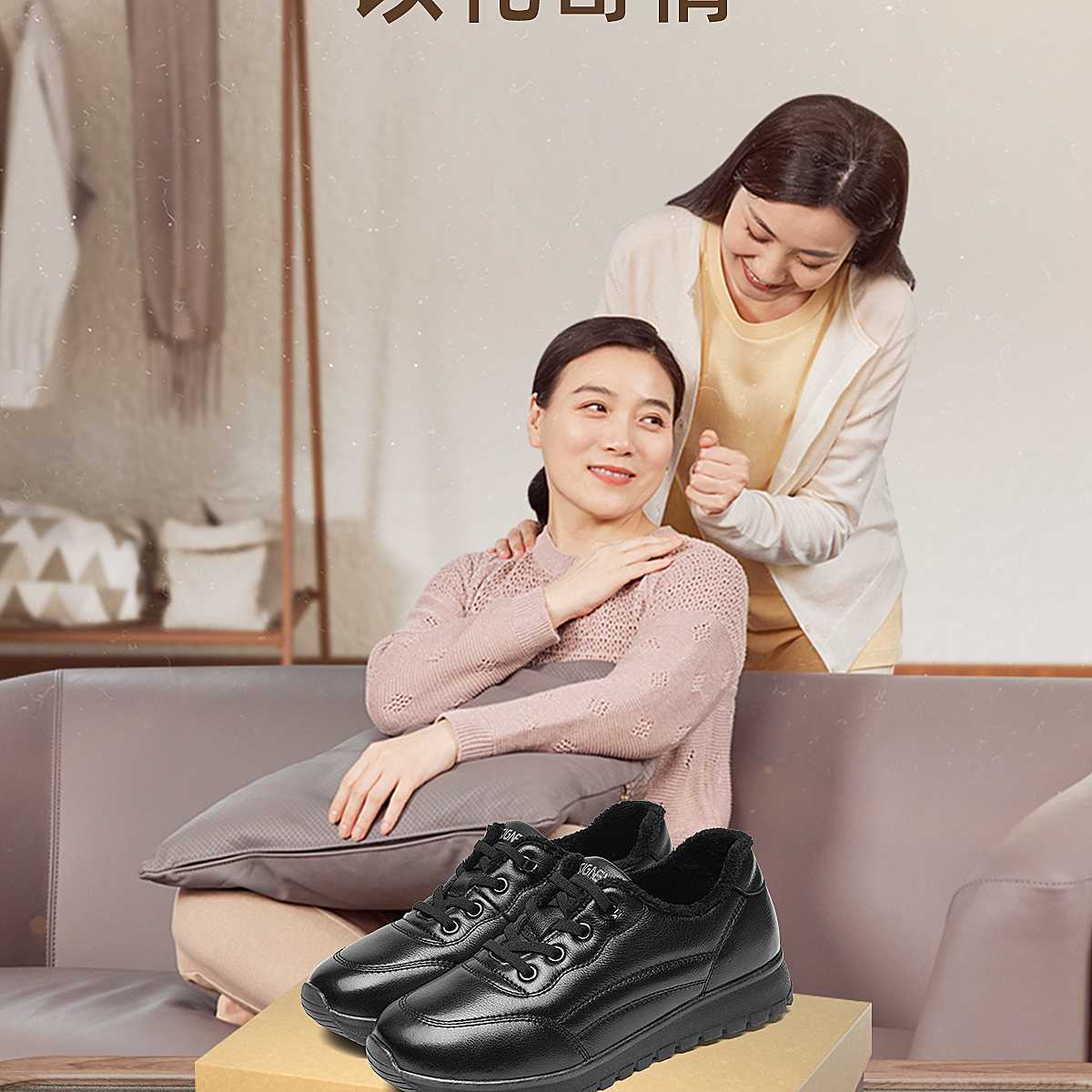 信诺妈妈鞋加绒保暖棉鞋软底舒适中老年女鞋休闲皮鞋2025冬季新款X5M131-211
