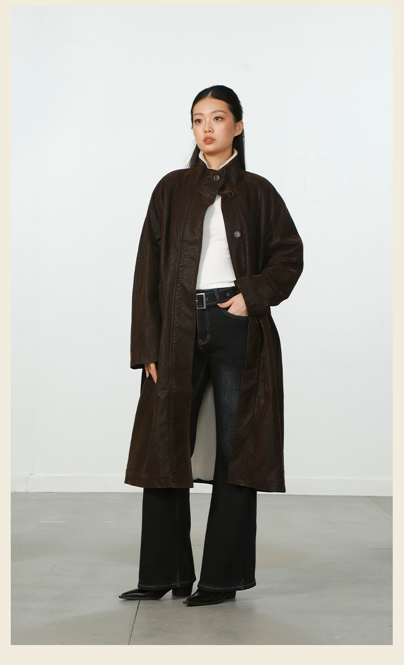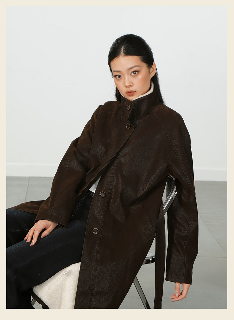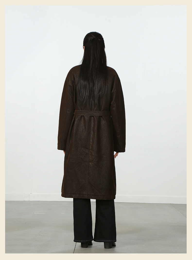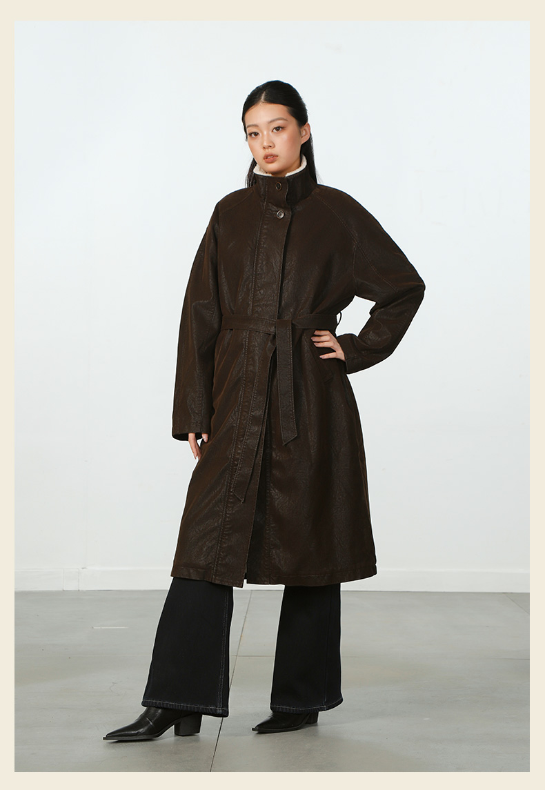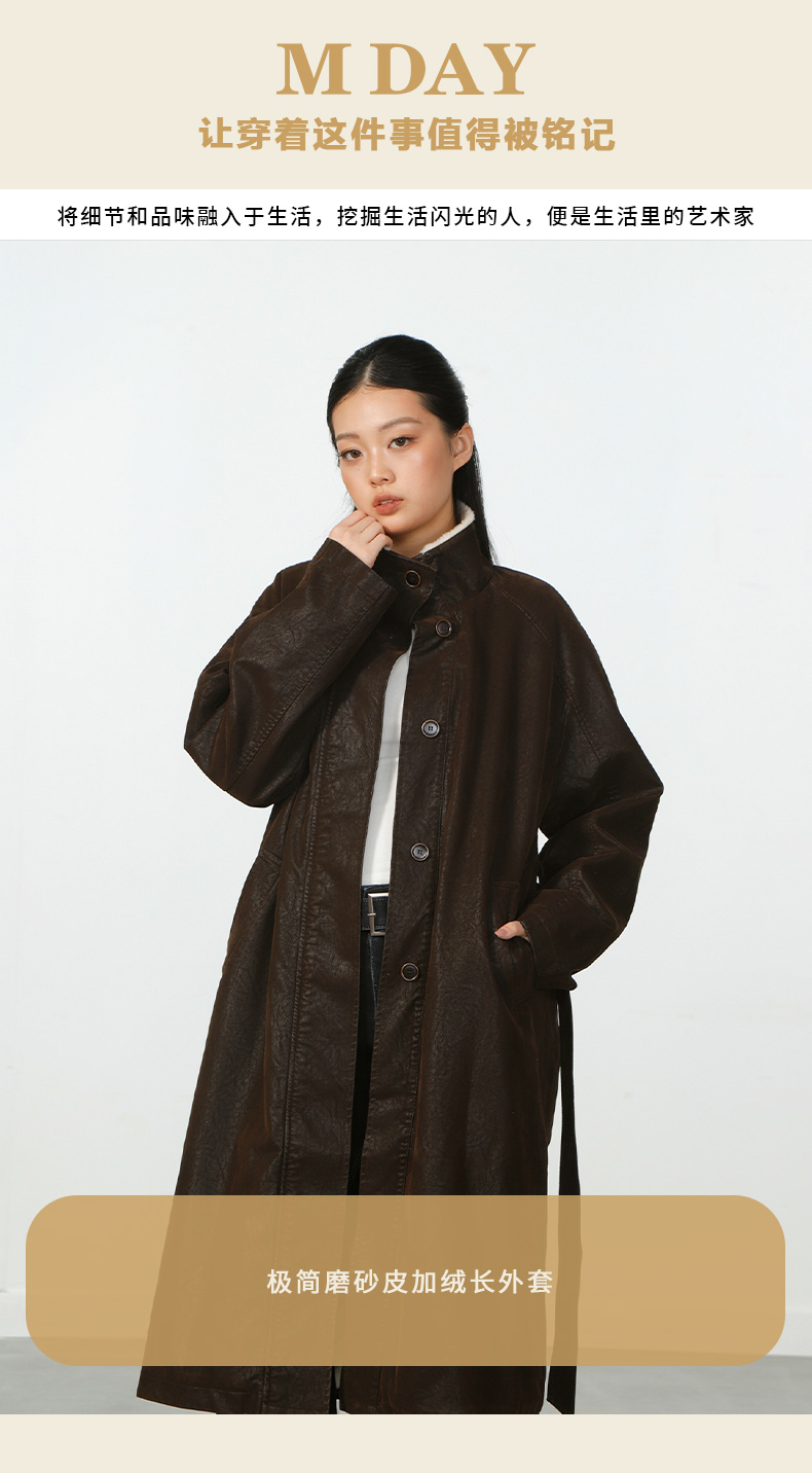 气质风极简磨砂皮加绒长外套-纪念日百货门店同款167945401