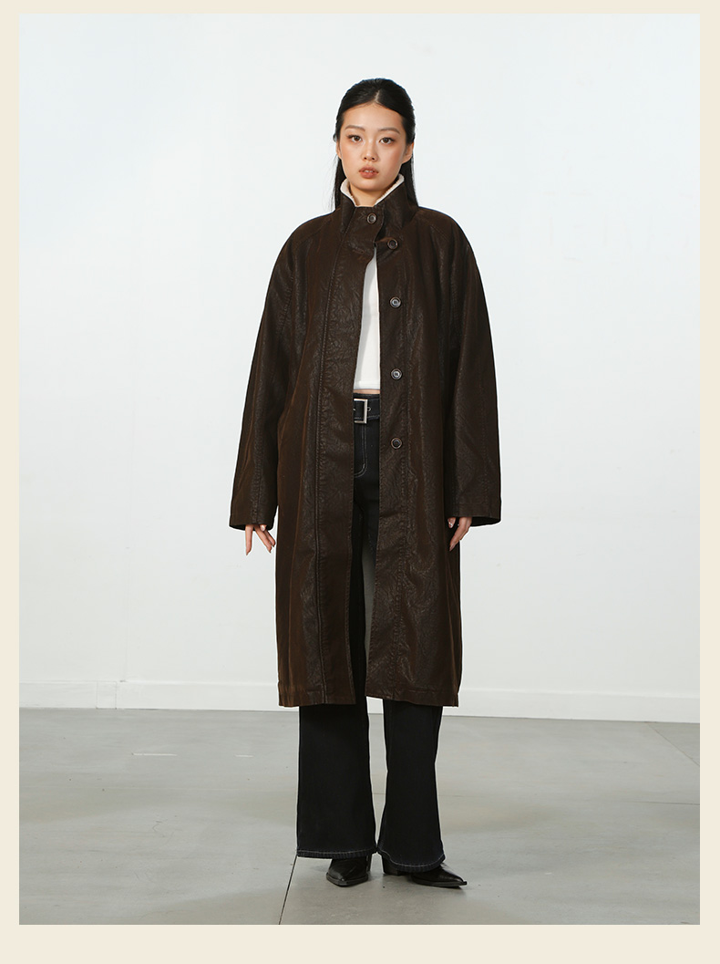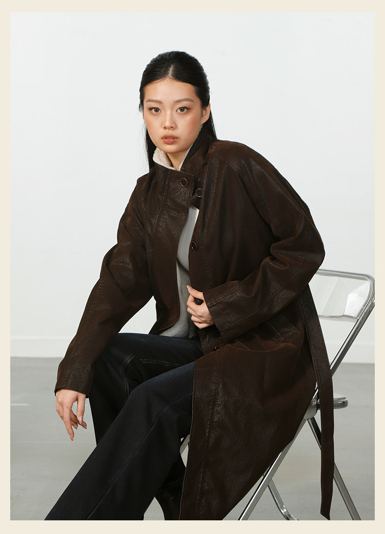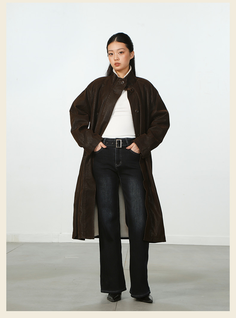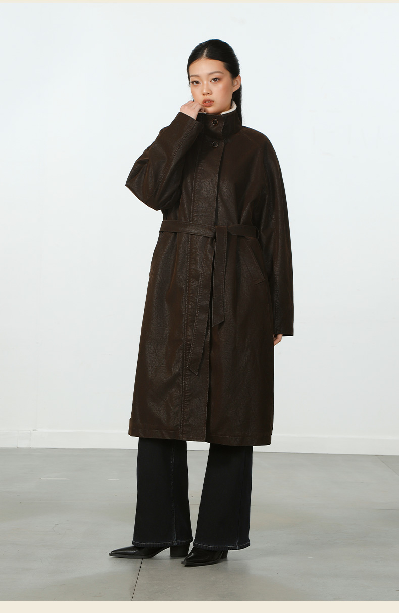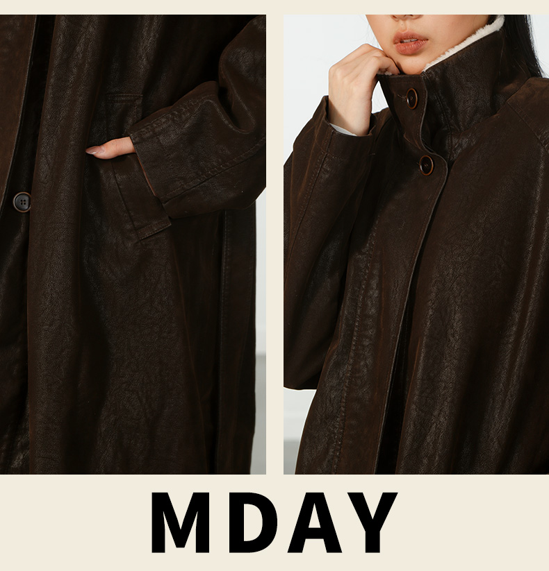 气质风极简磨砂皮加绒长外套-纪念日百货门店同款167945401