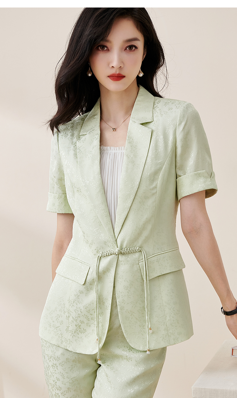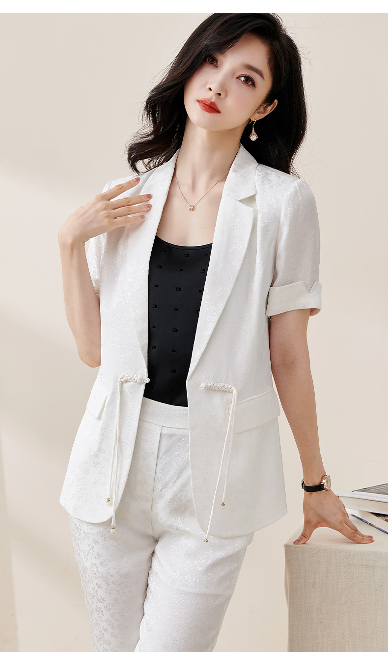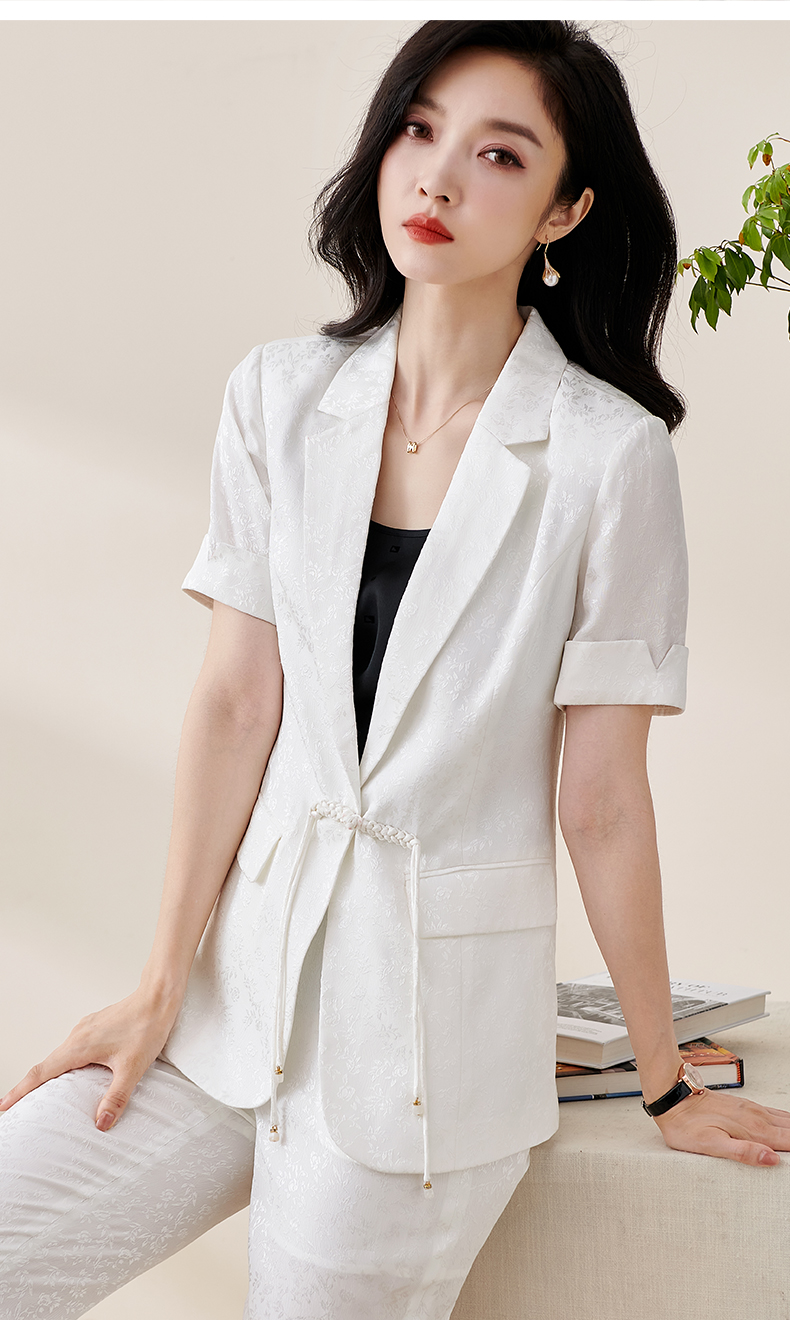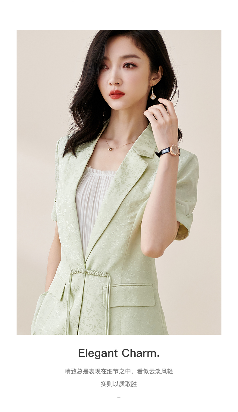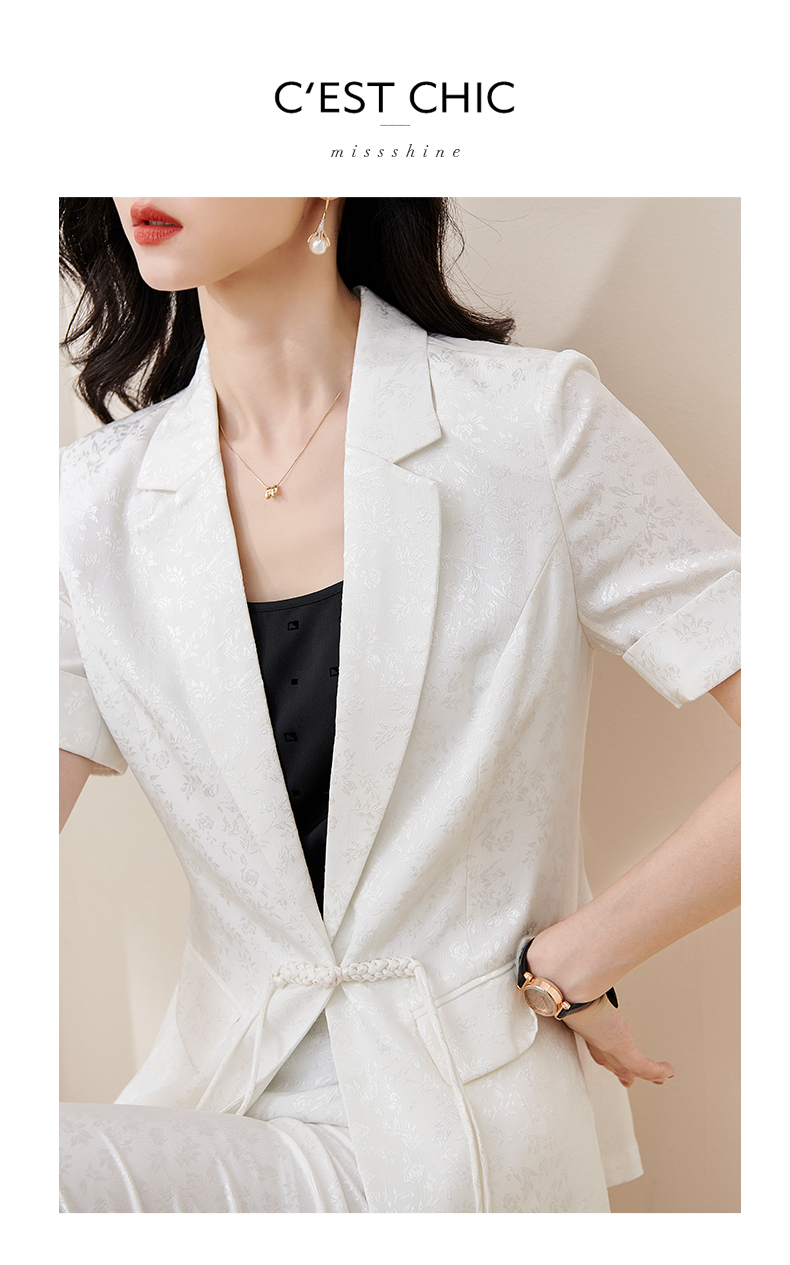 剩S/M/L/XL/XXL 米思阳2025夏季新款时尚中国风气质提花女式西装修身短袖外套2032