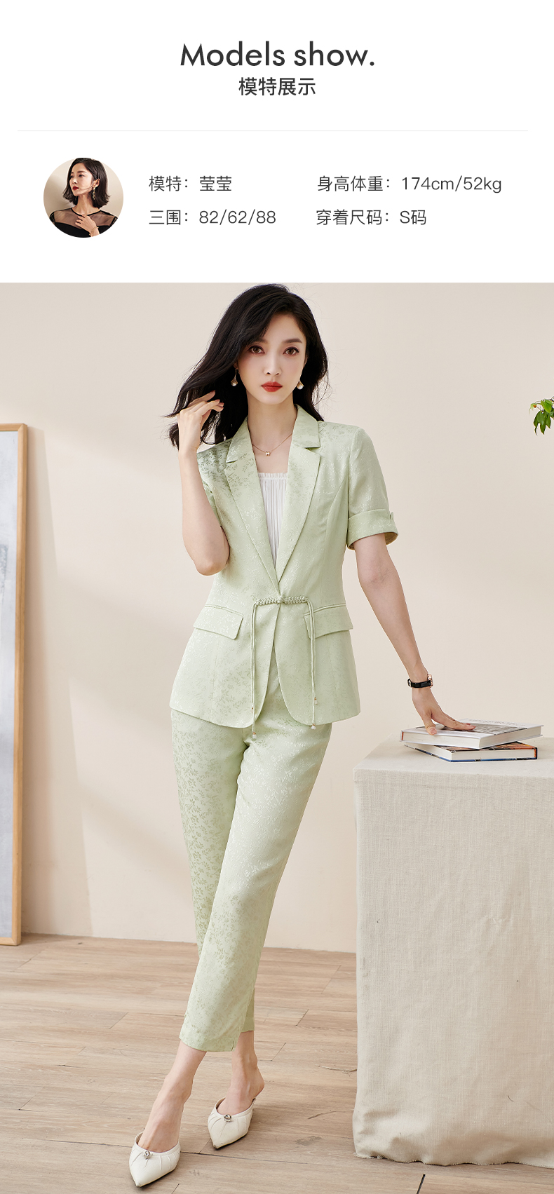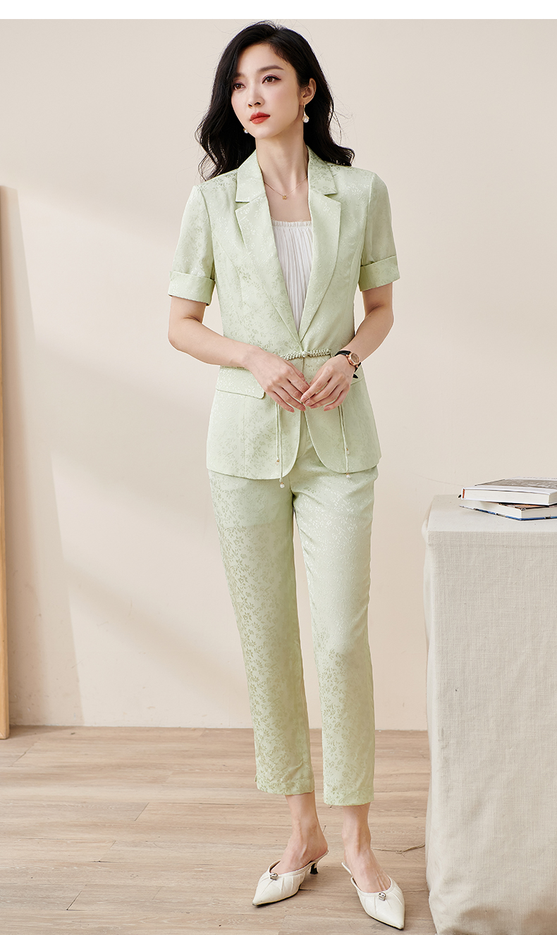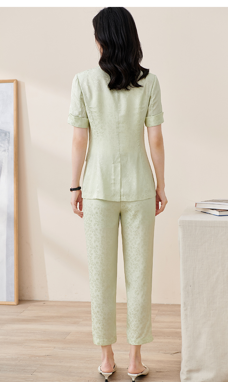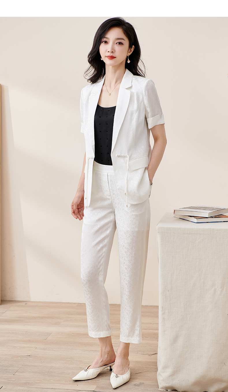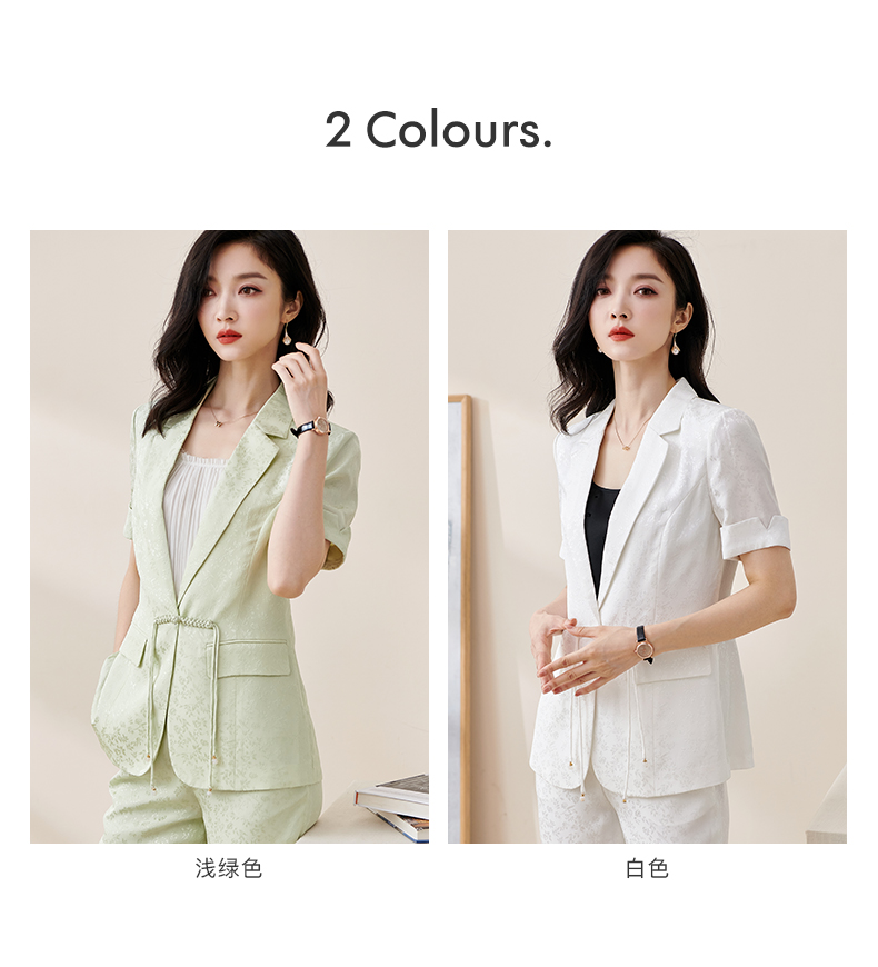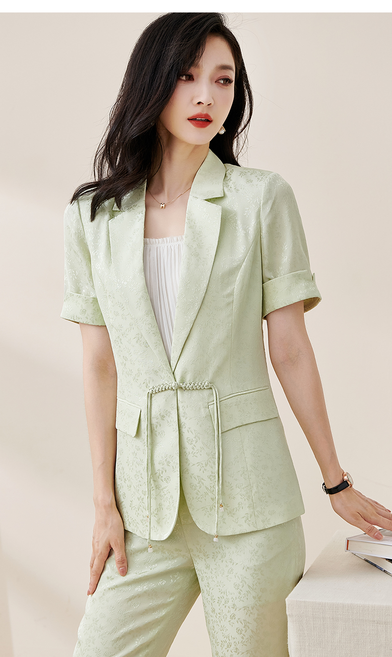 剩S/M/L/XL/XXL 米思阳2025夏季新款时尚中国风气质提花女式西装修身短袖外套2032