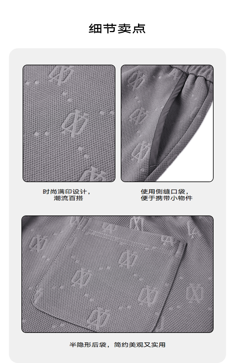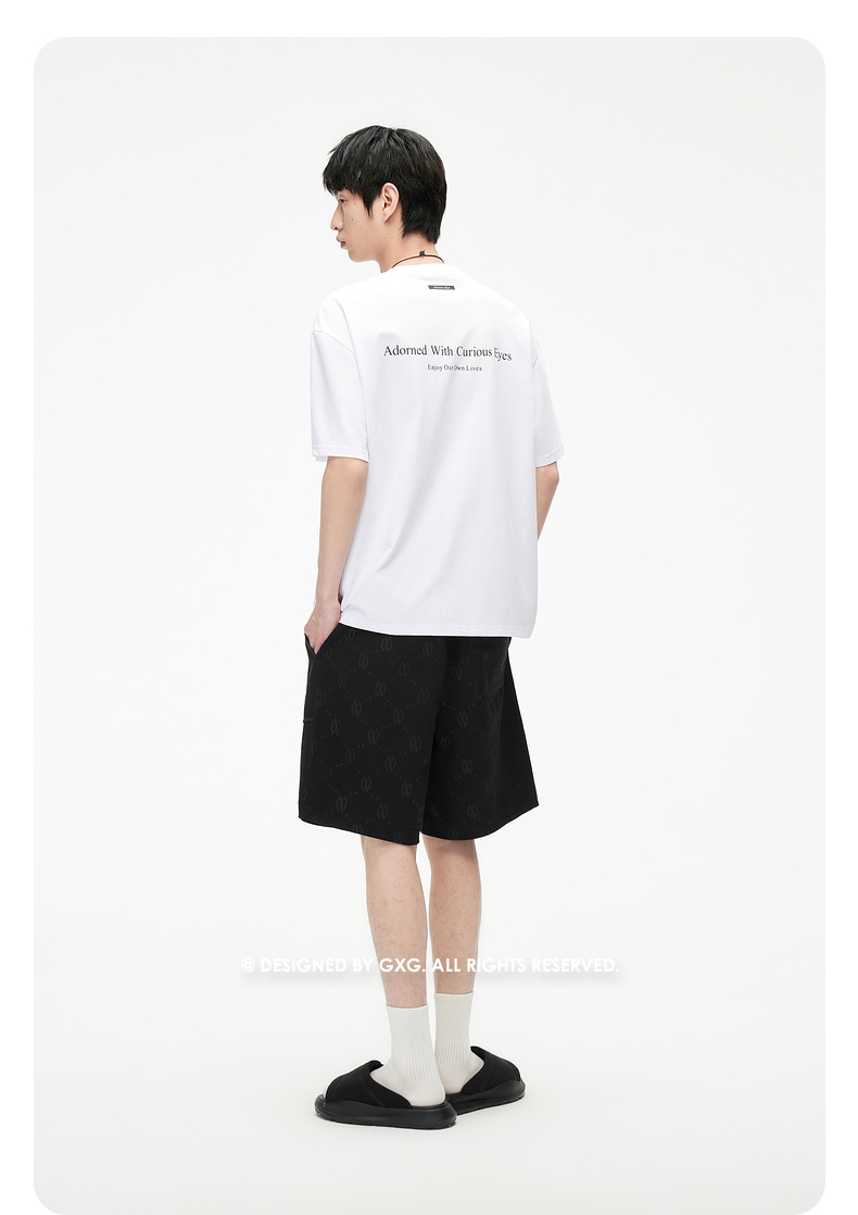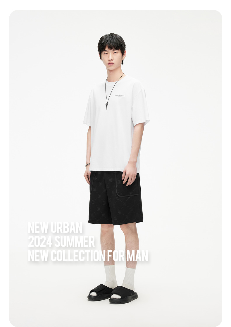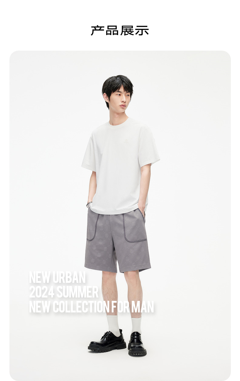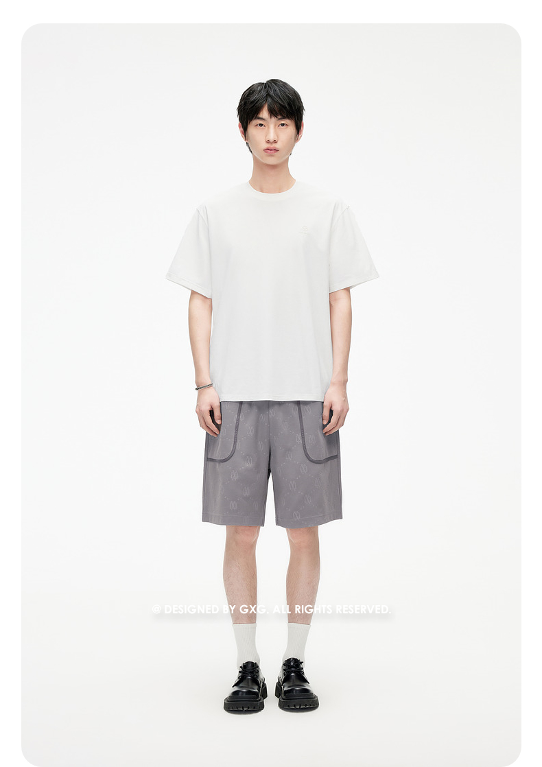 GXG男装 老花满印压花设计五分裤通勤休闲男士短裤 2025春季热卖