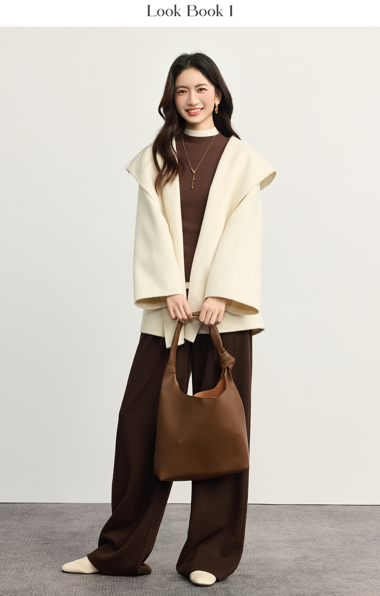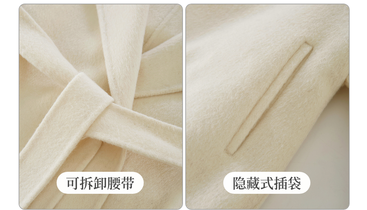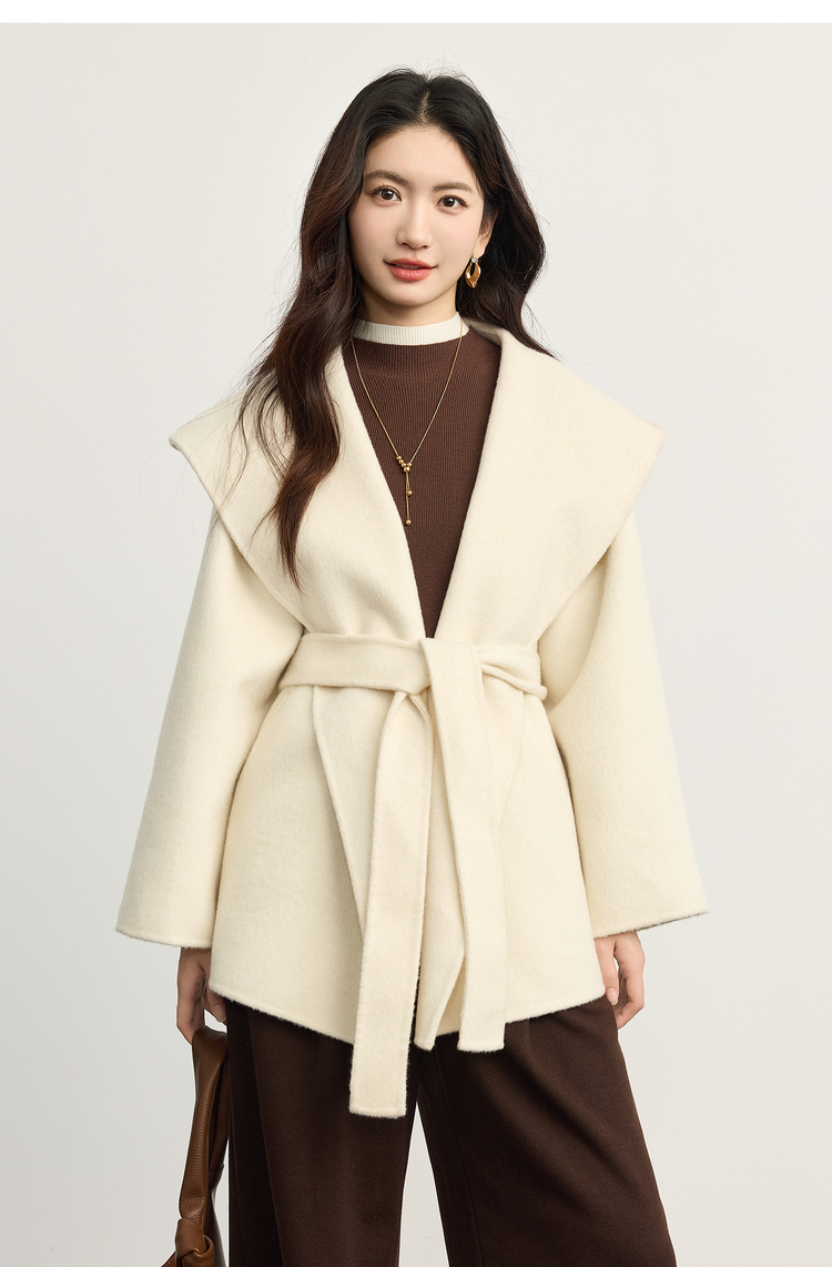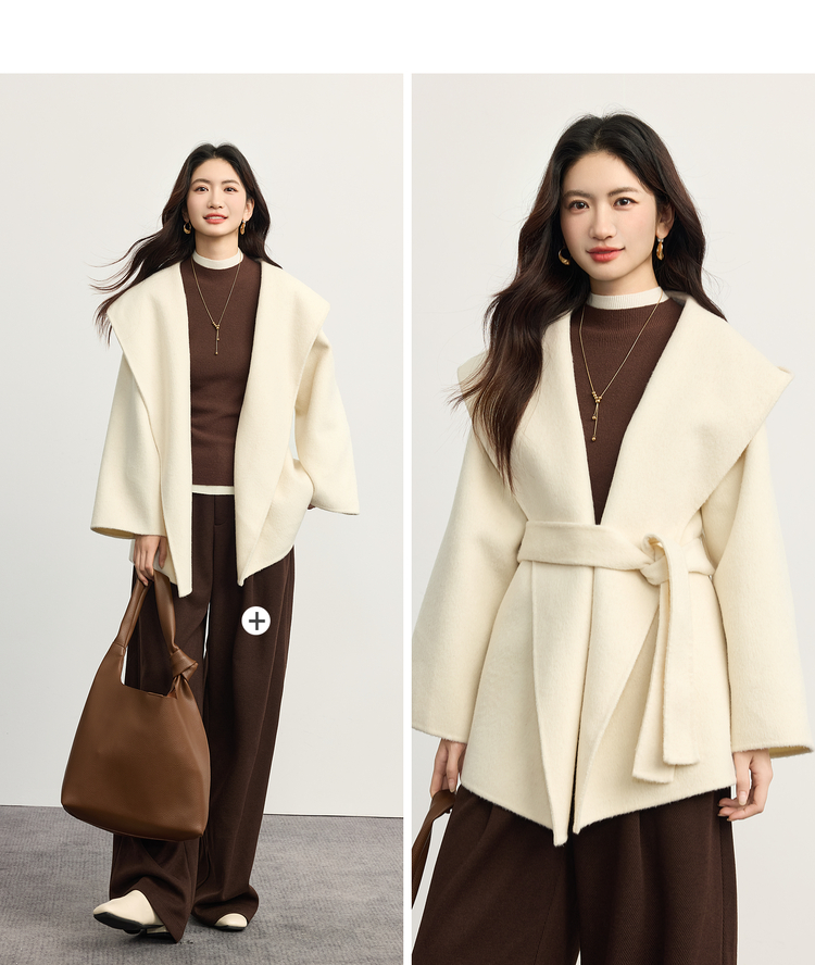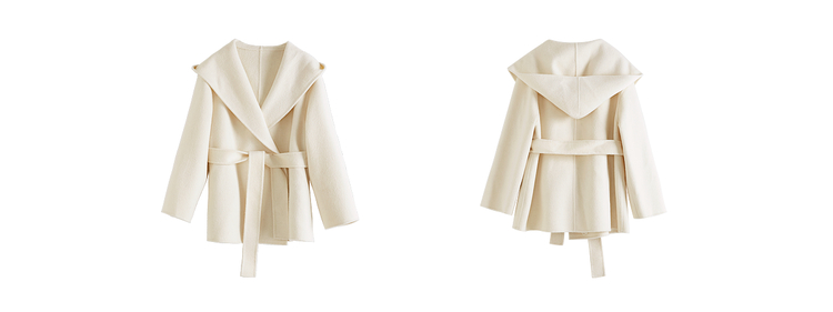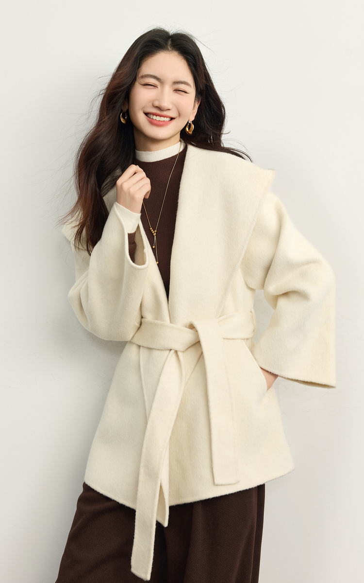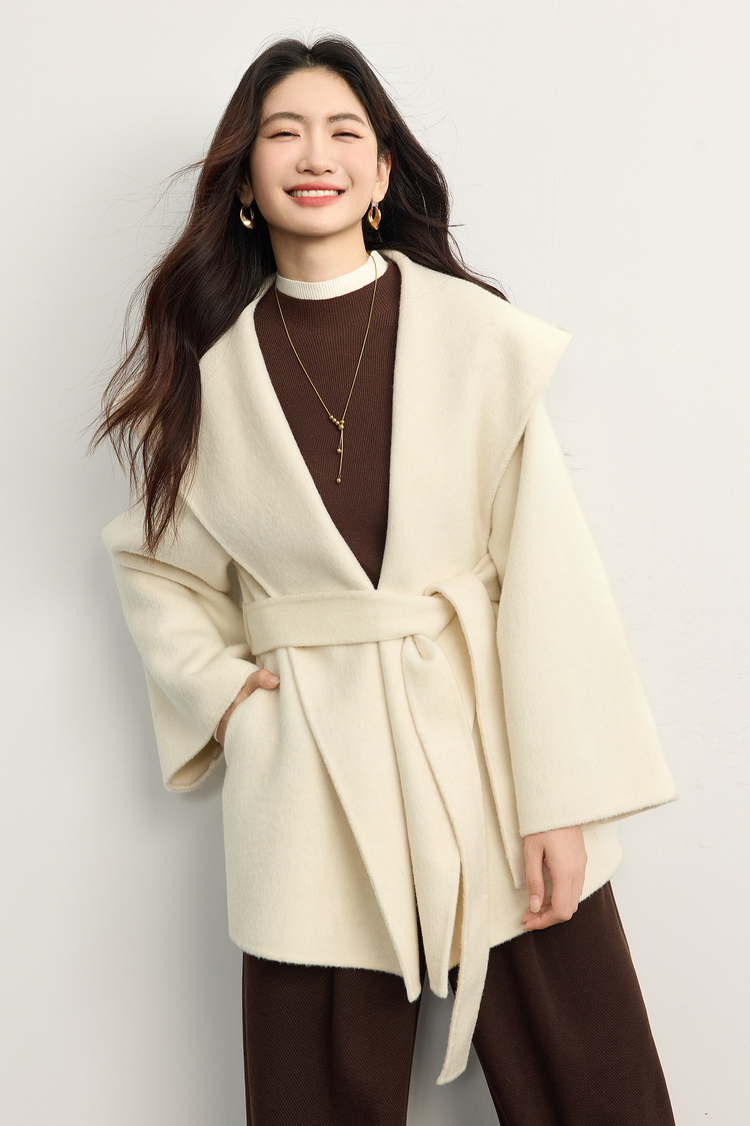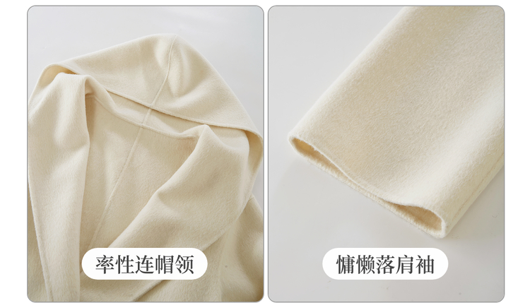 【10/23新品】熙世界浴袍式斗篷双面呢大衣女冬季连帽收腰短款100.%羊毛呢外套