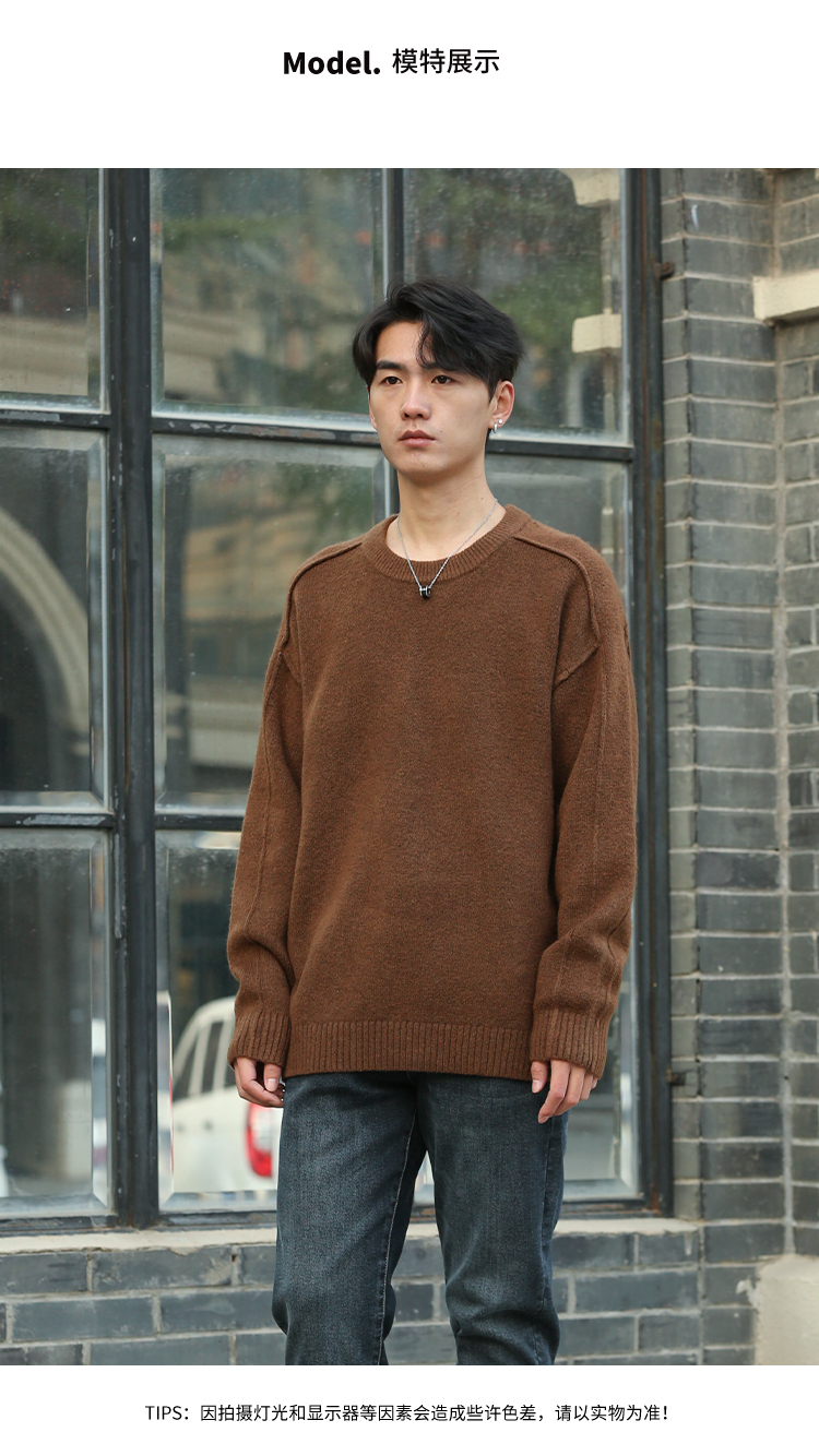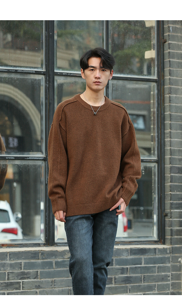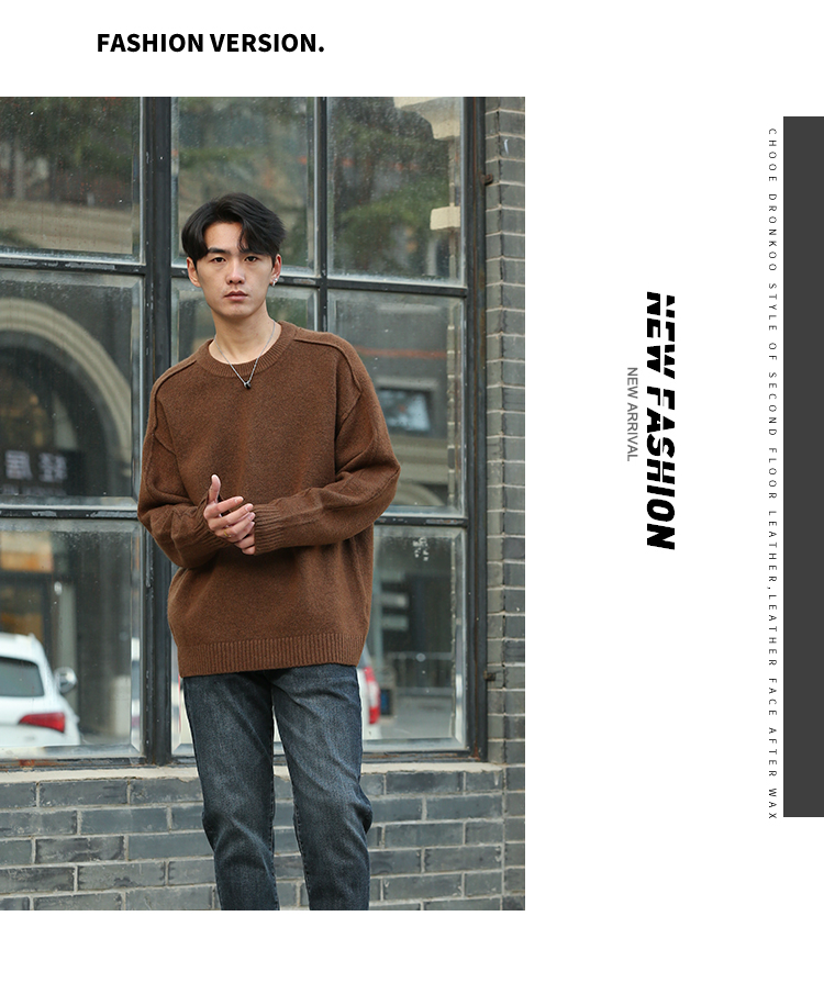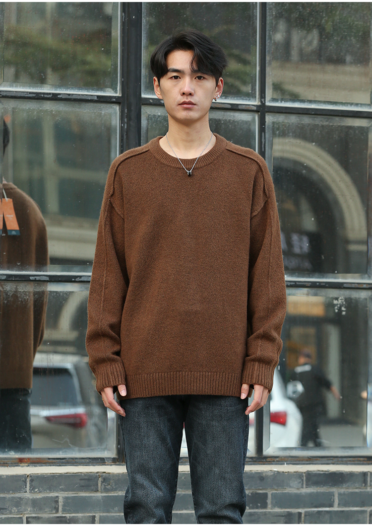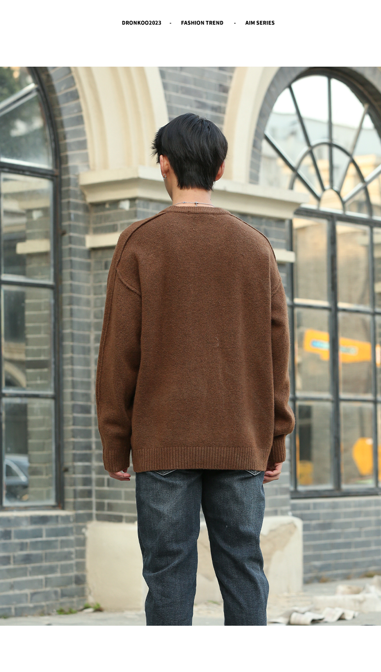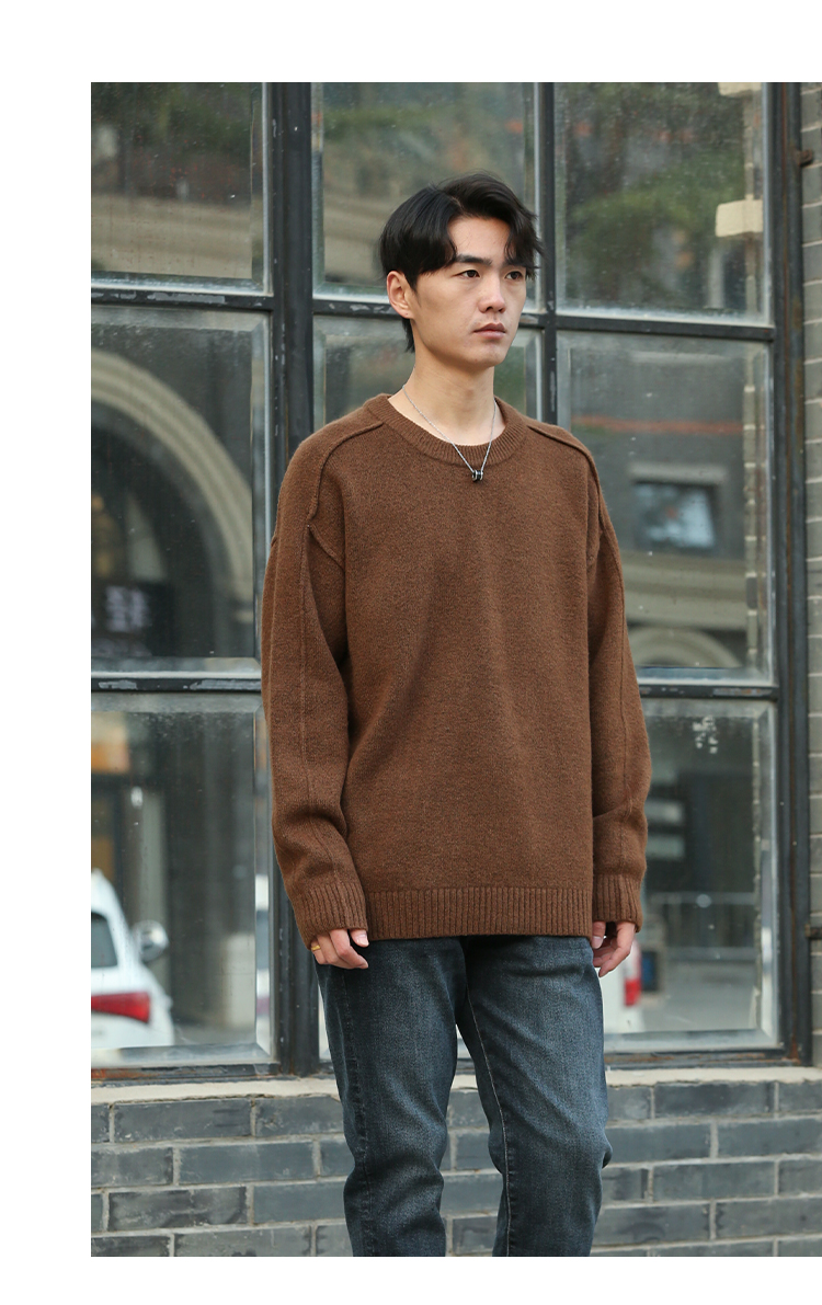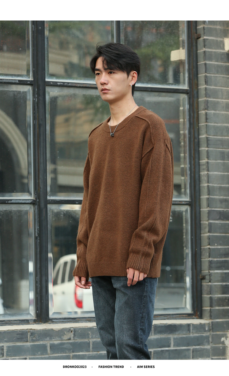 DRONKOO 2025 圆领袖子夹圈反边含羊毛厚毛衣