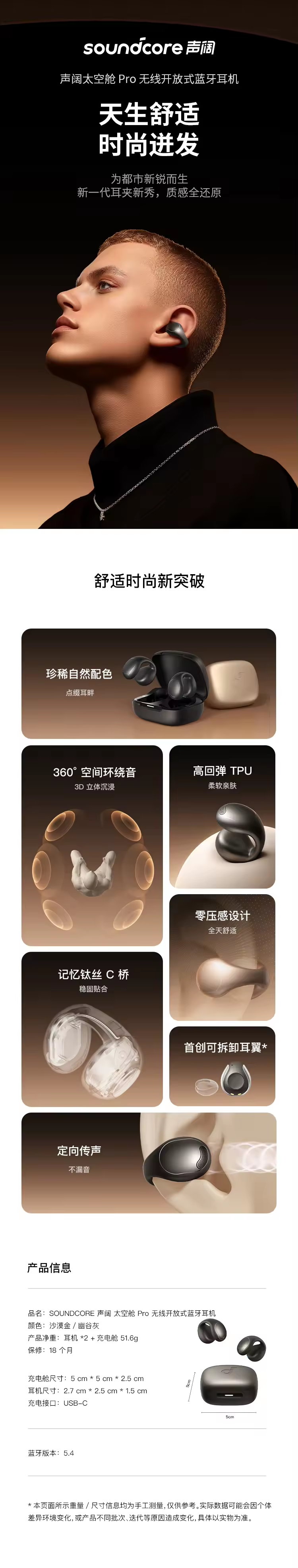 声阔 耳机 开放式 太空舱 Pro - 灰