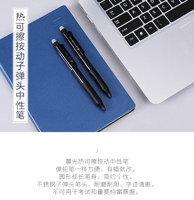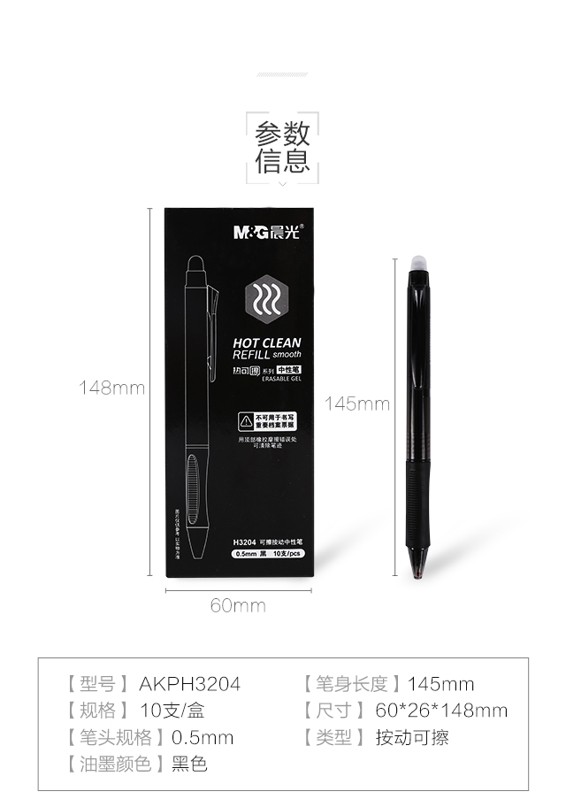 晨光(M&G)文具0.5mm黑色中性笔 子弹头按动签字笔 热可擦水笔 10支/盒AKPH3204