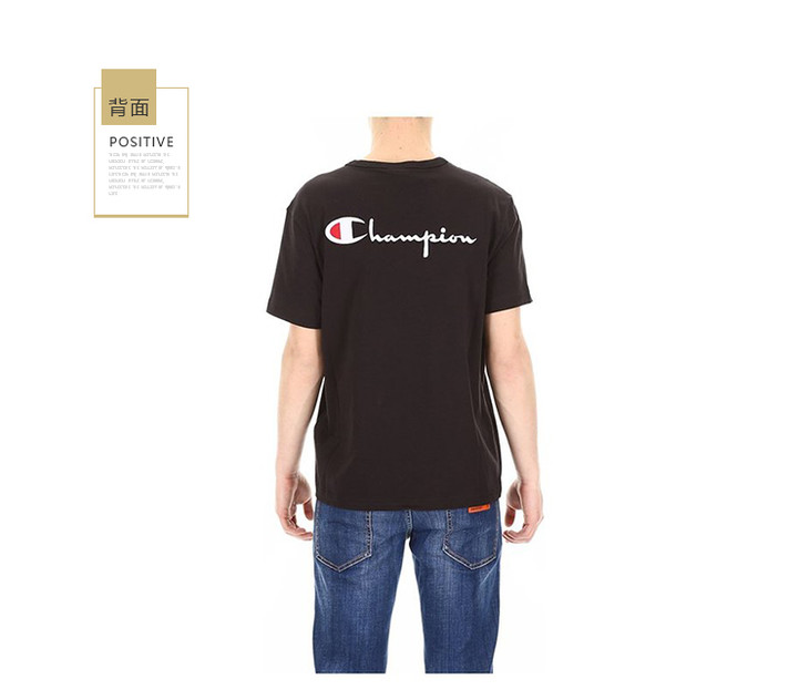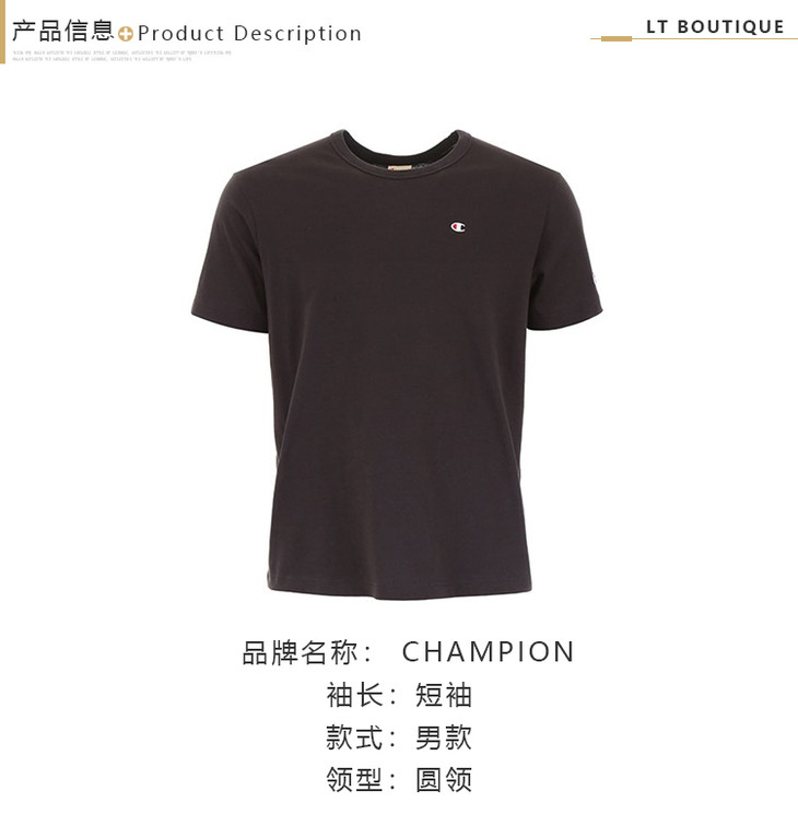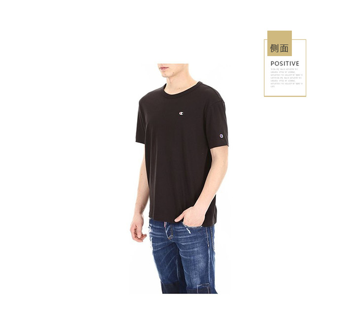 CHAMPION 冠军 圆领 男性 胸标 宽松 男士短袖T恤 黑色 212974 KK001