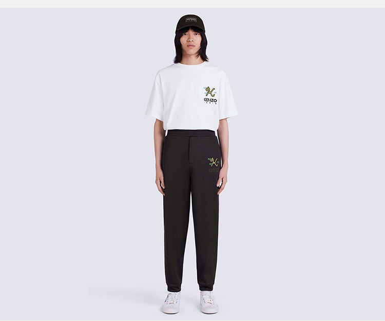 KENZO 高田贤三 男士棉质 Tiger Tail K系列 刺绣徽标休闲运动裤 黑色 FC65 PA790 4IP 99J