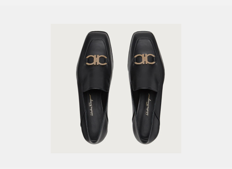 FERRAGAMO 菲拉格慕 GANCINI莫卡辛鞋 女士皮鞋 黑色 733041