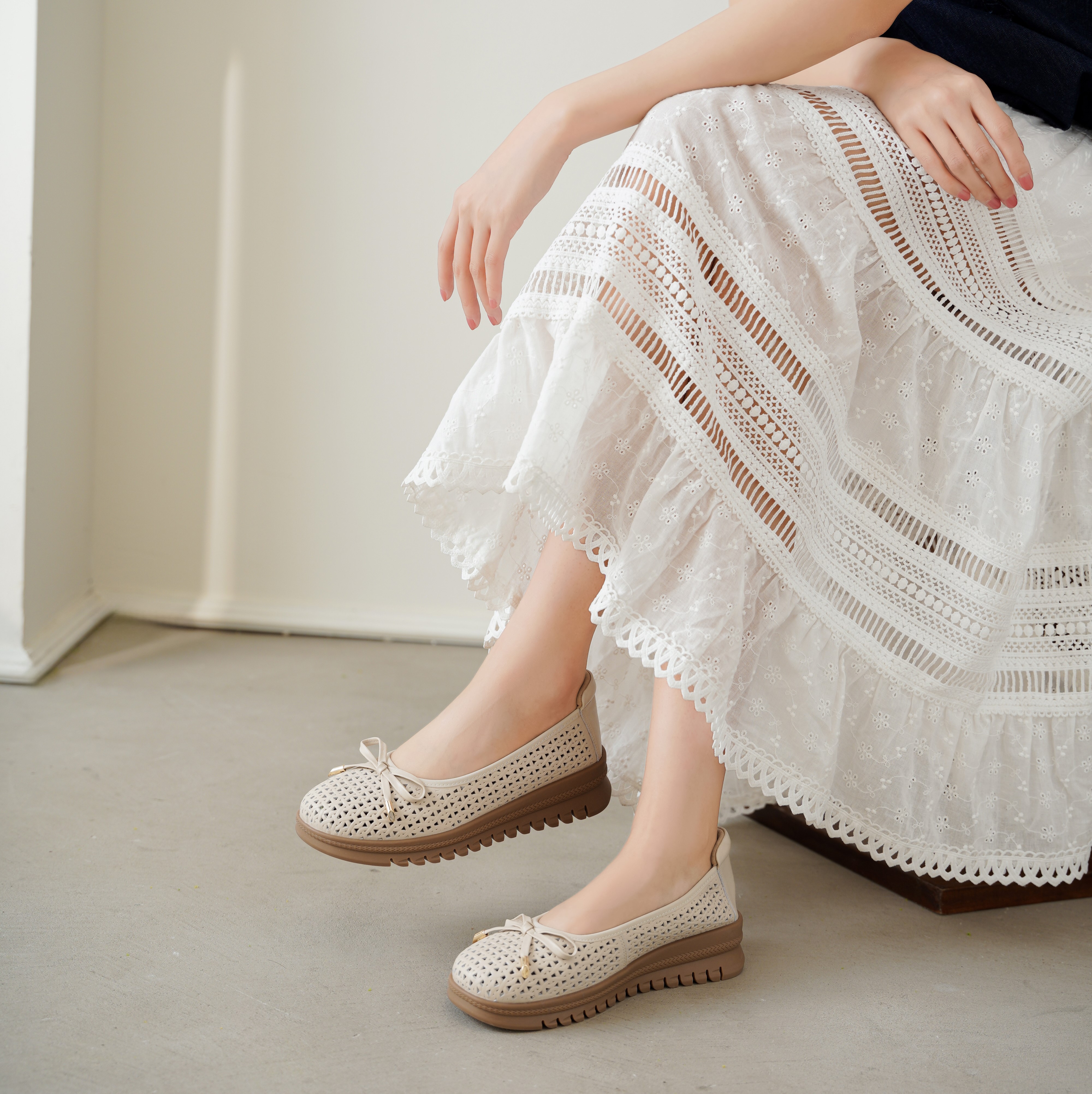 【夏季新款】2025年夏季新款舒适透气厚底坡跟防滑大底软底软面妈妈鞋T25AH16371