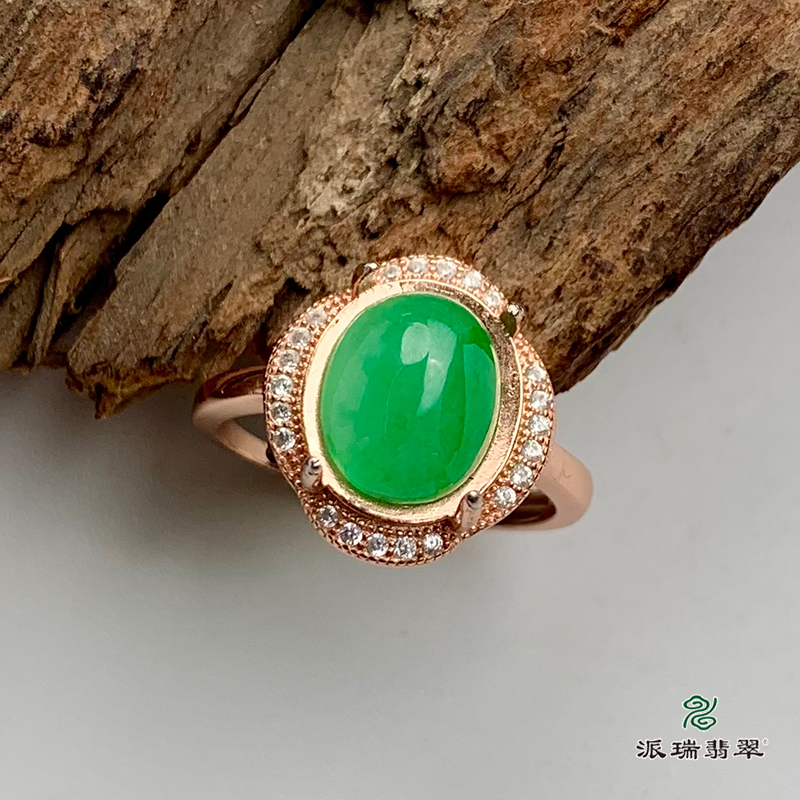 派瑞翡翠 翡翠戒面 冰种 绿色