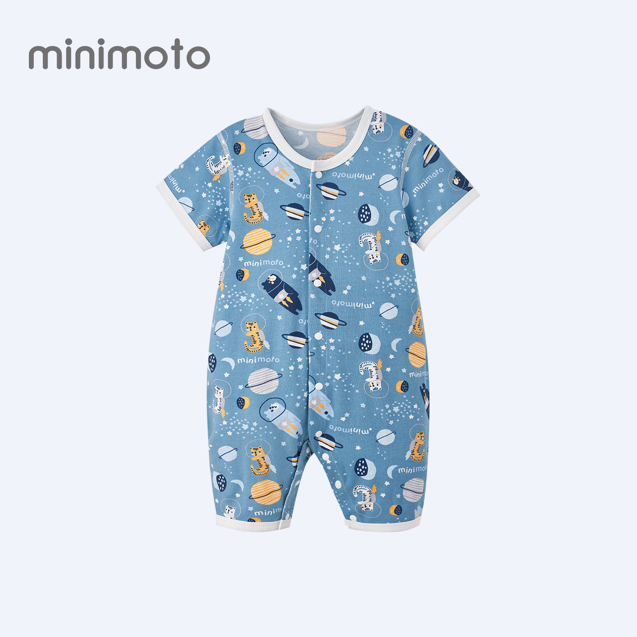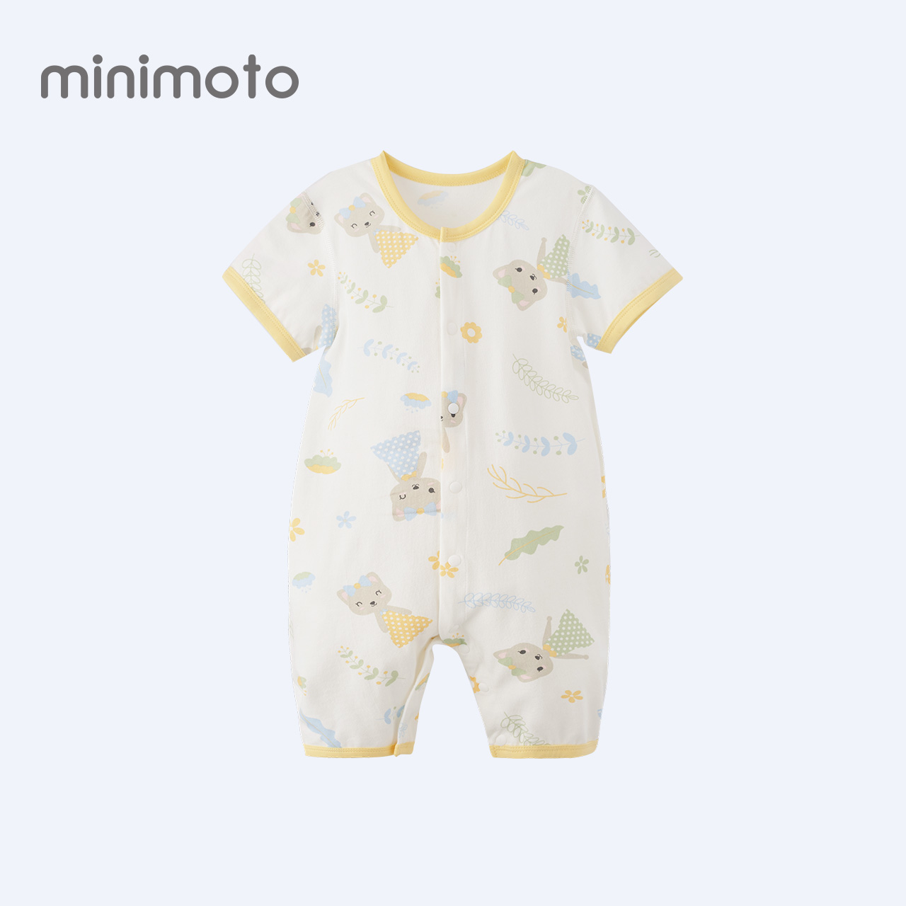 小米米童衣夏装新款男女童连体衣宝宝凉爽冰瓷棉爬服哈衣新生儿和尚服MIM-YJ11001
