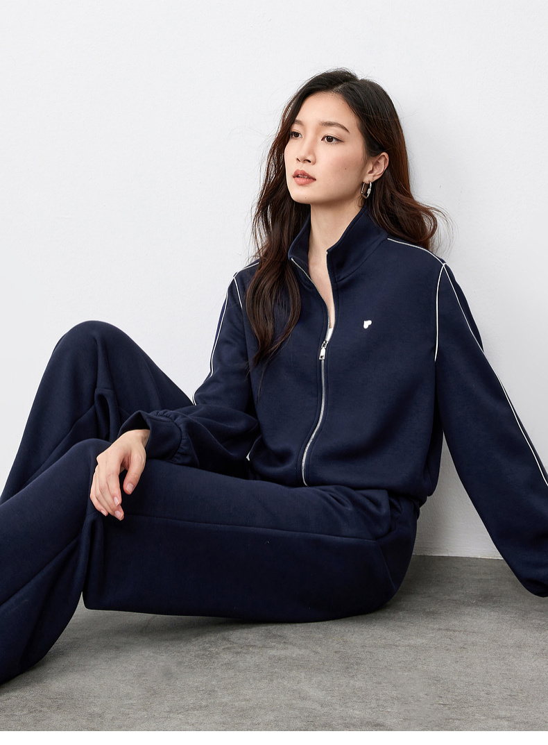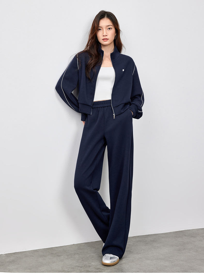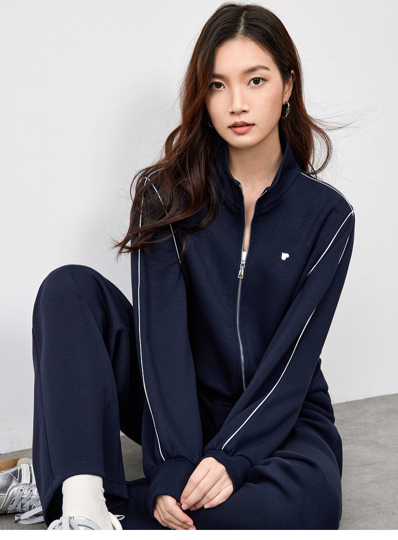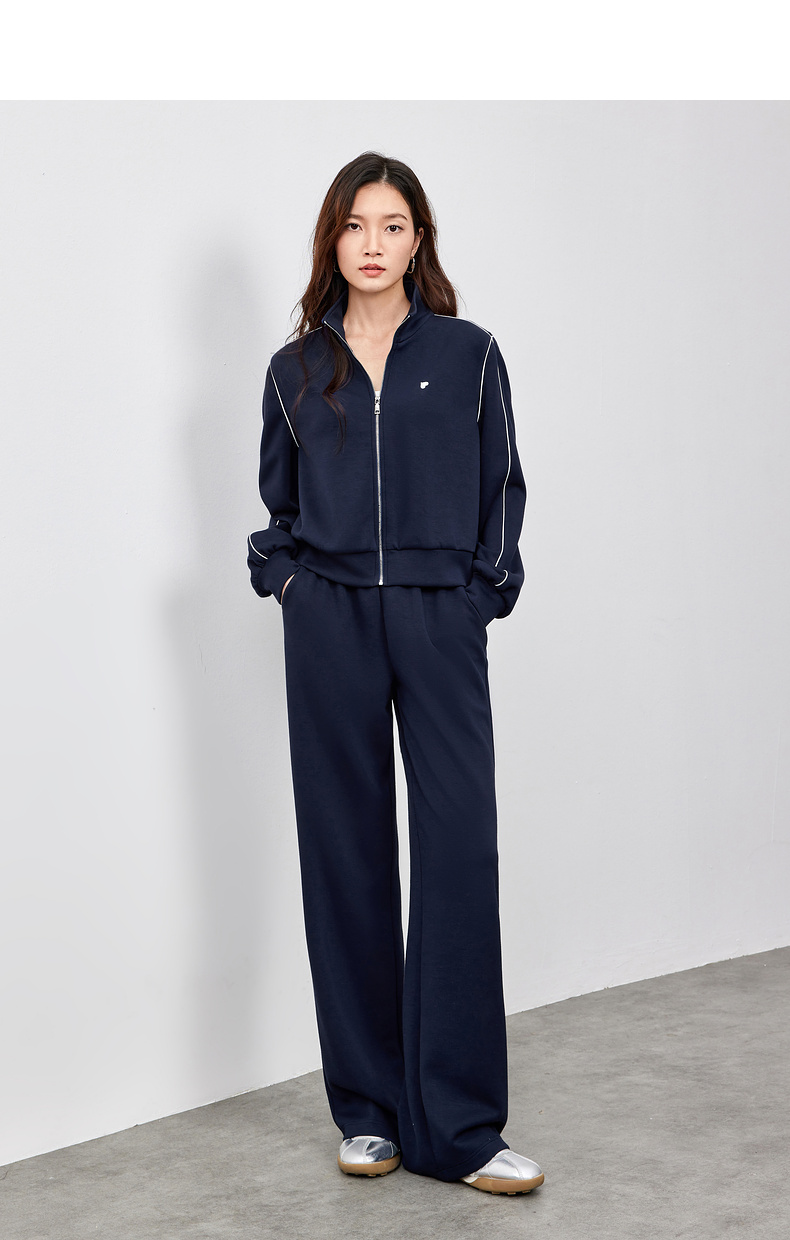 【内购】运动风撞色织带爱心刺绣卫衣外套&松紧腰直筒长裤-151Z58733