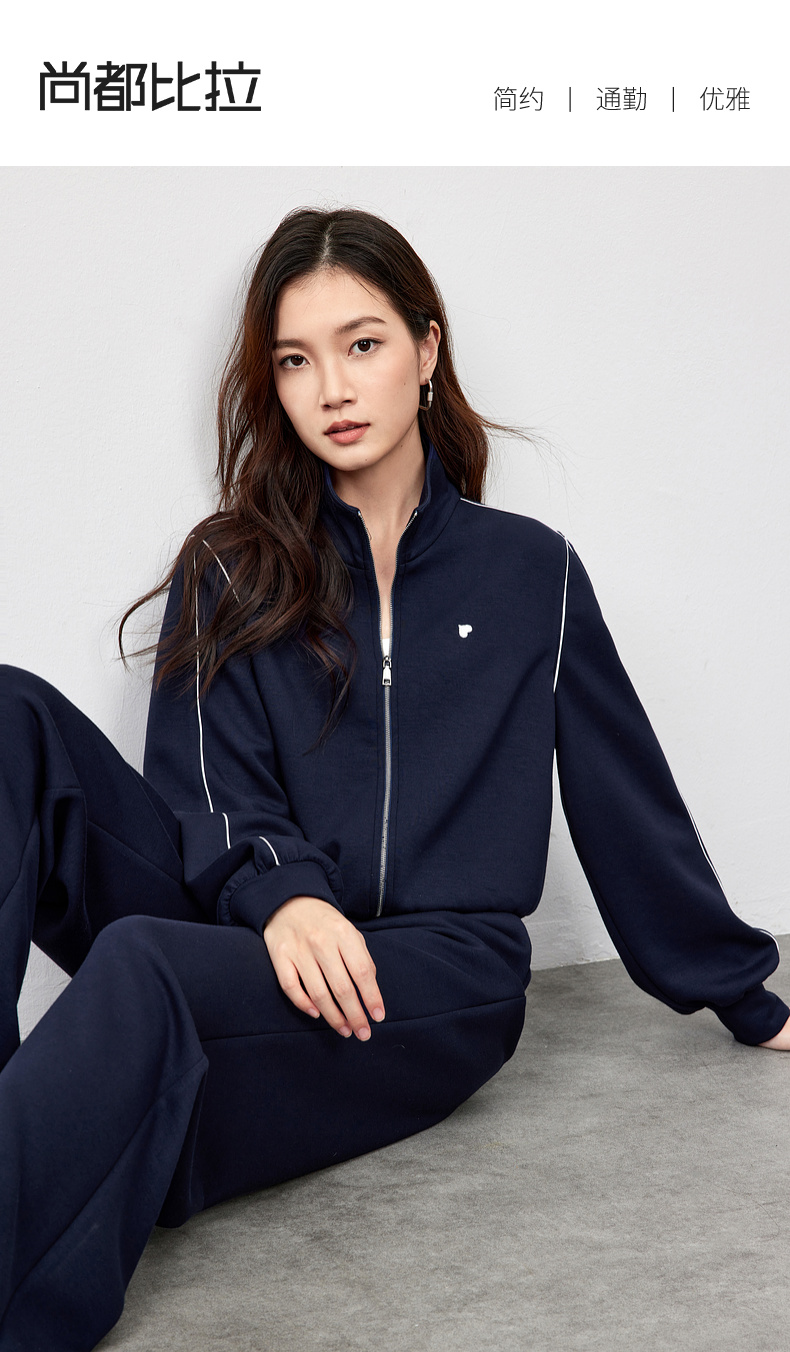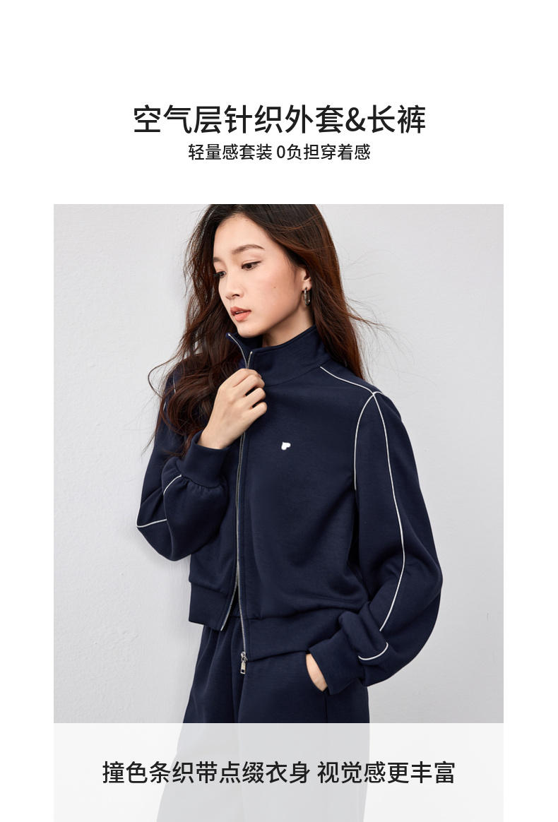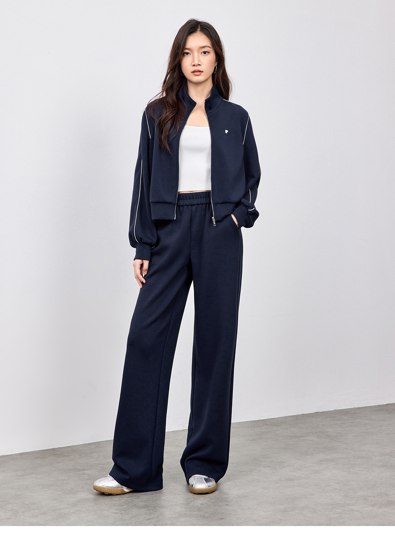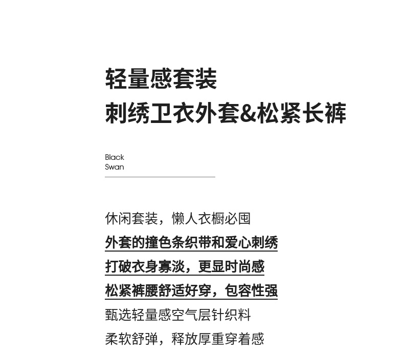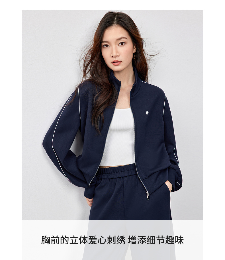 【内购】运动风撞色织带爱心刺绣卫衣外套&松紧腰直筒长裤-151Z58733
