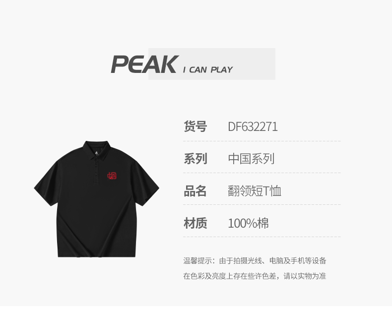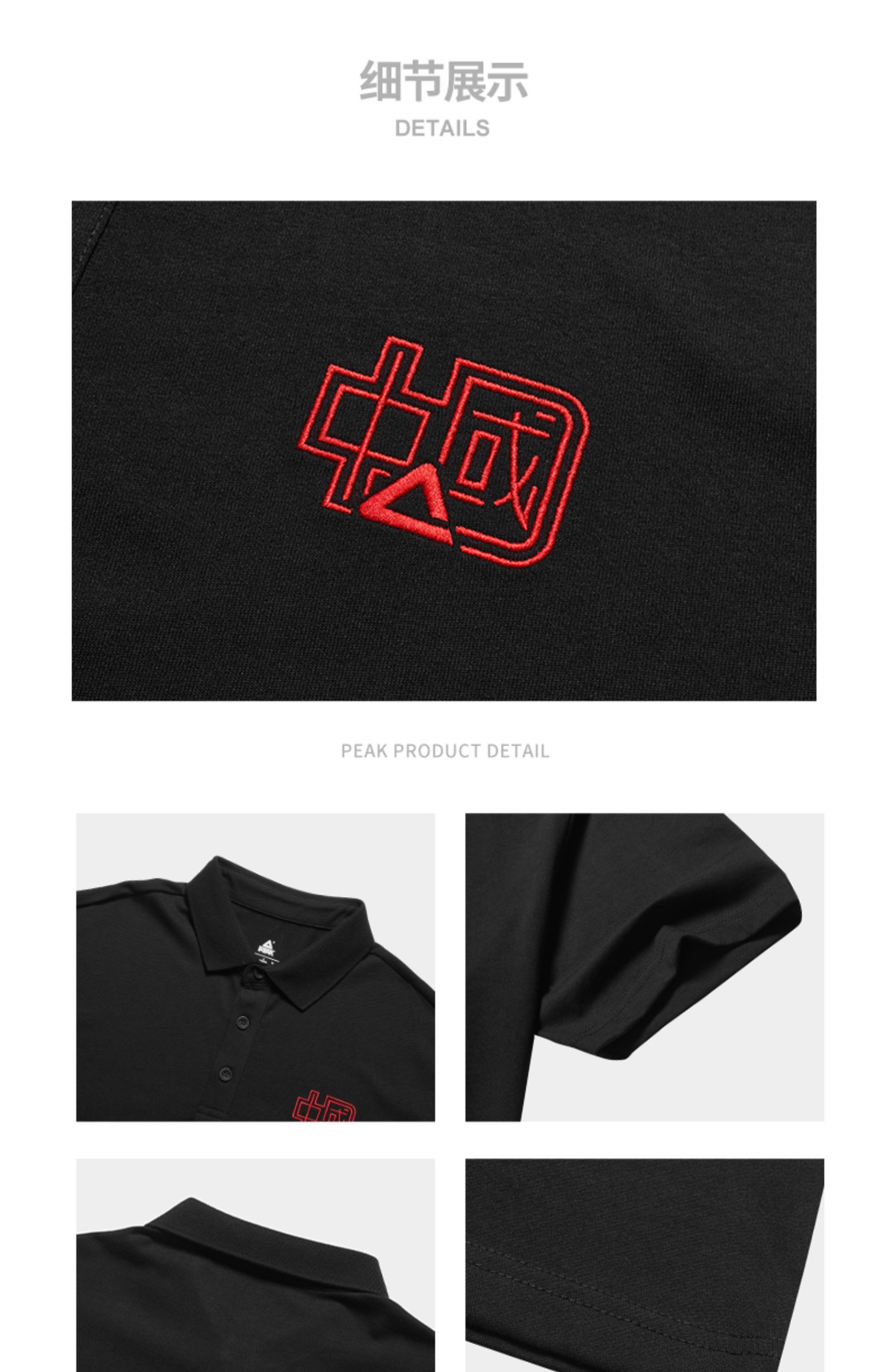 匹克POLO短袖男中国系列纯棉T恤夏季休闲运动半袖透气上衣健身短TDF632271