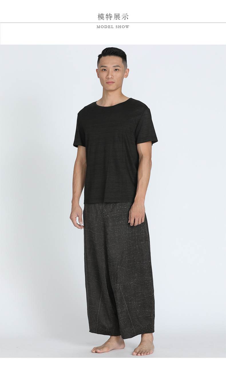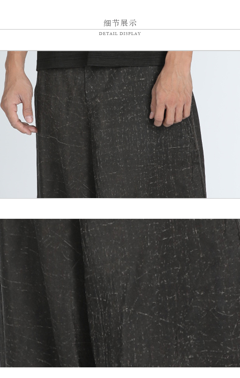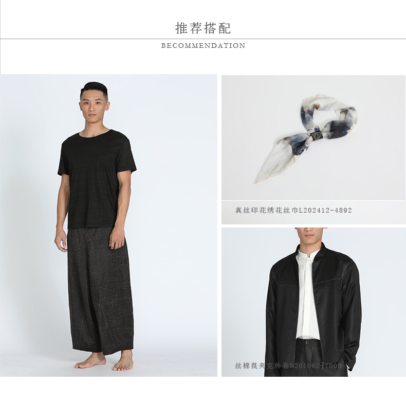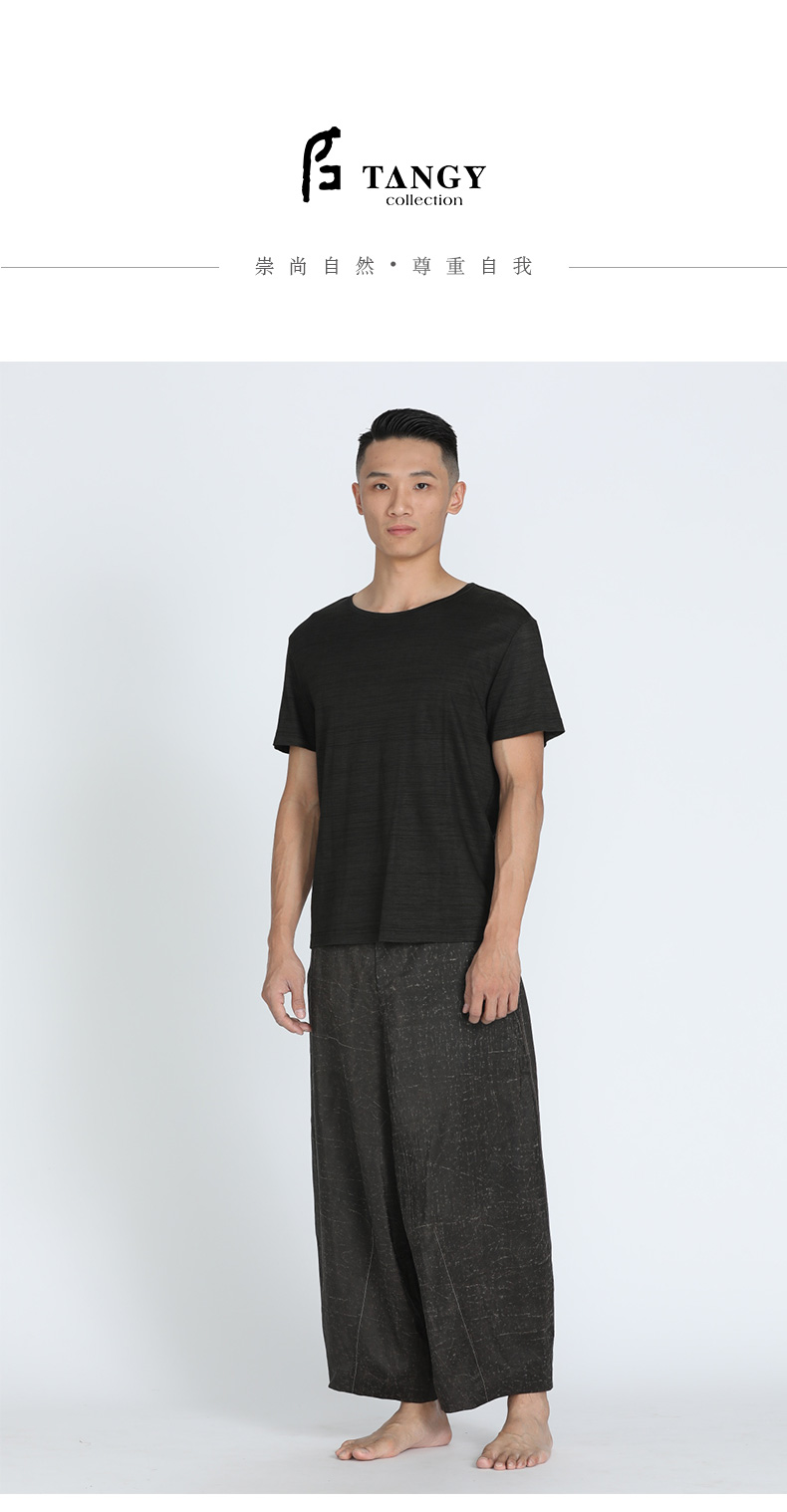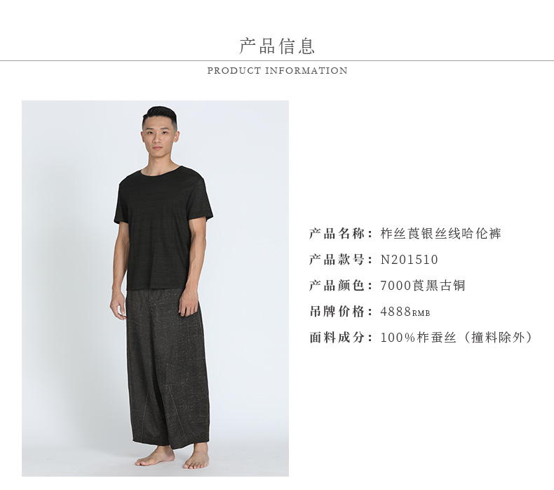 TANGY Collection/天意精品春夏新品柞丝莨线迹男士真丝宽腿休闲裤