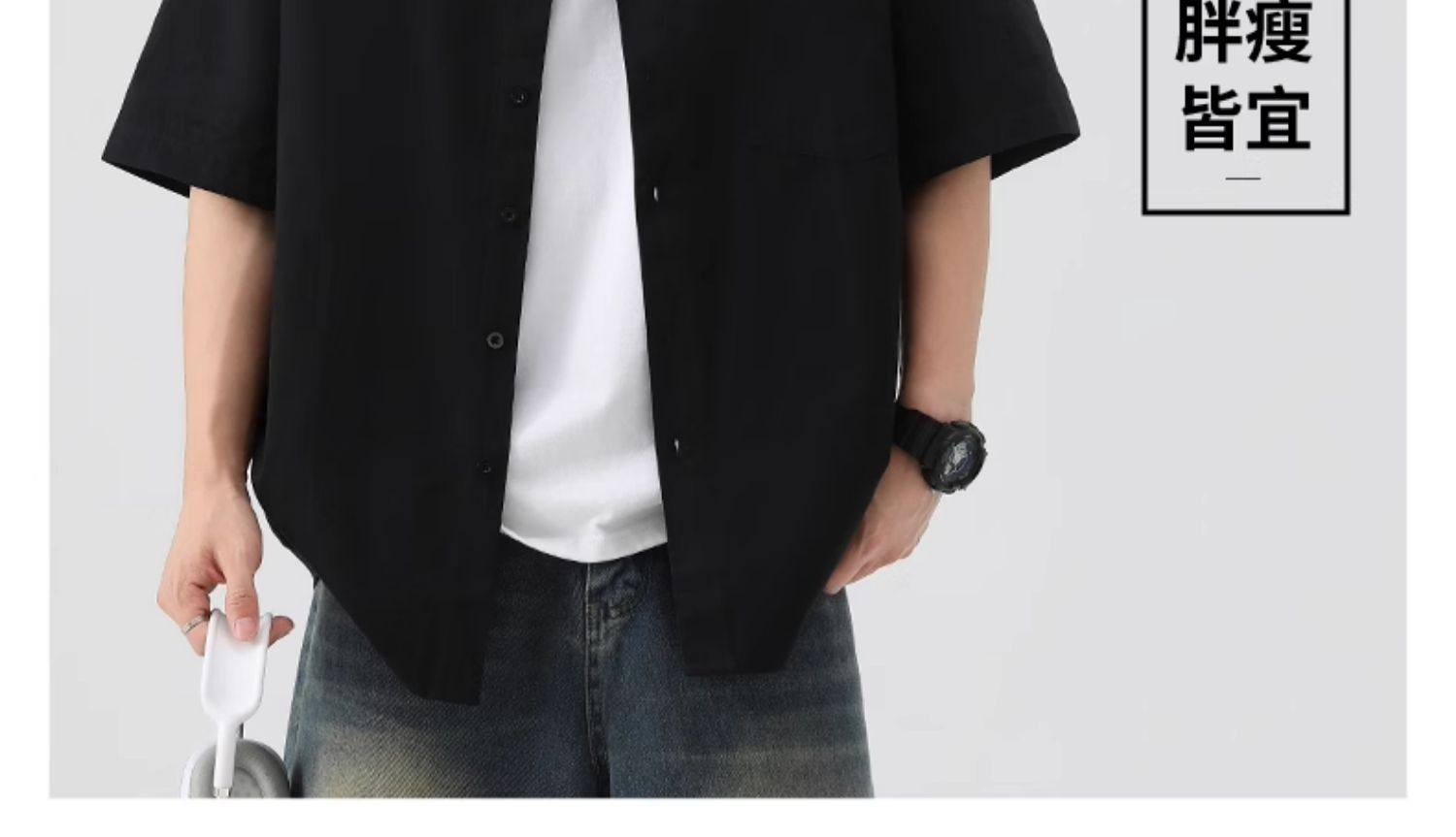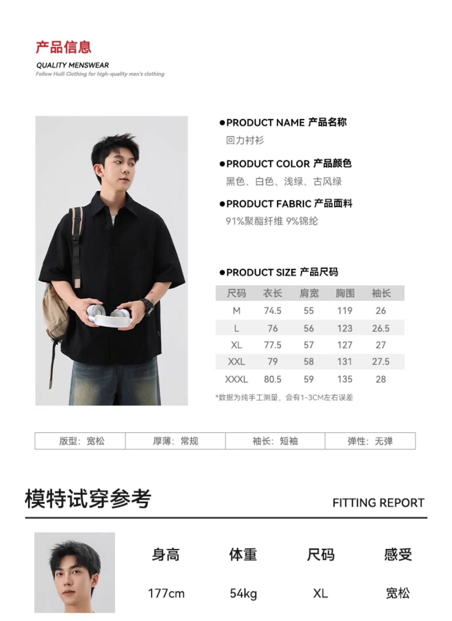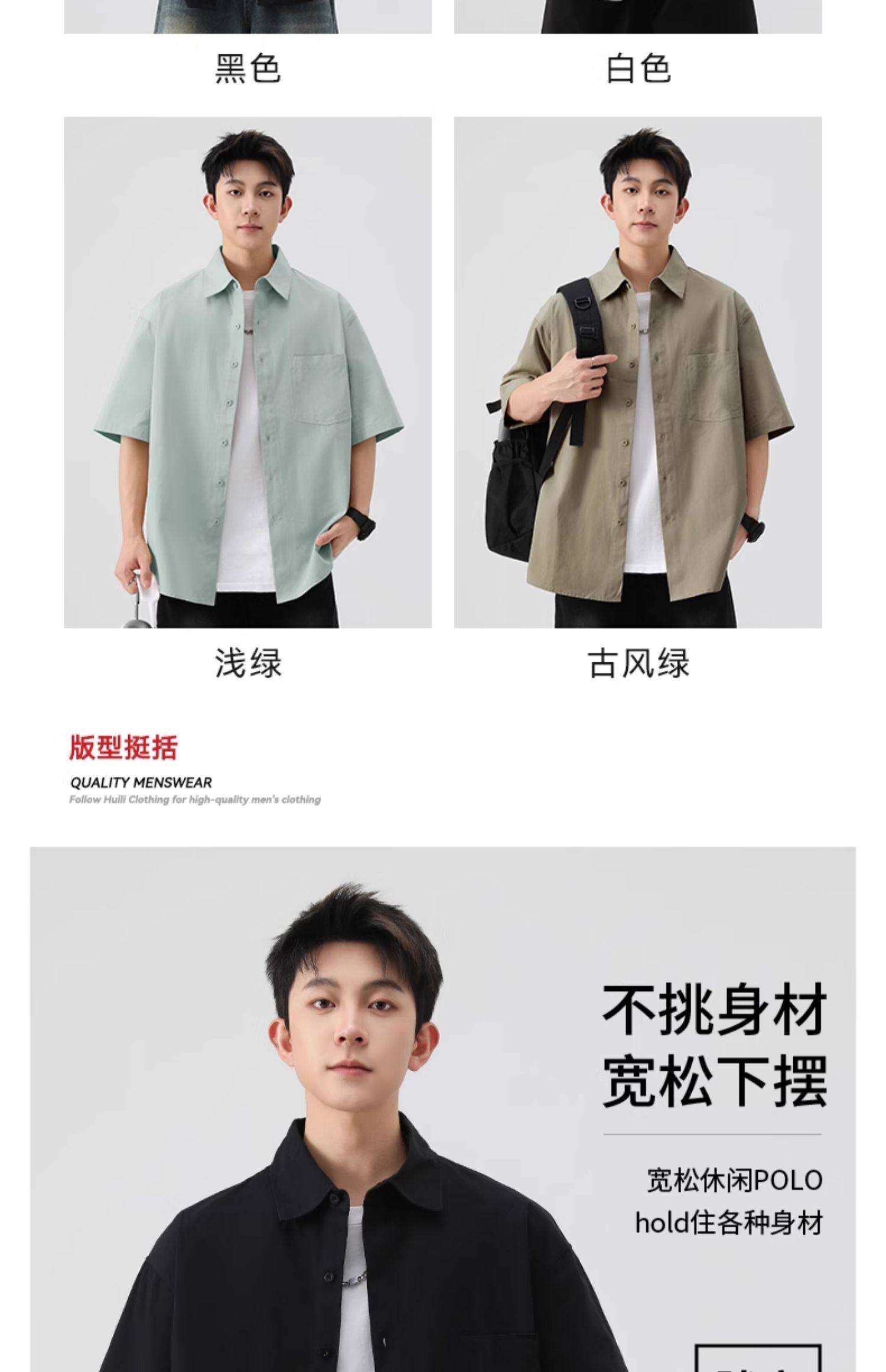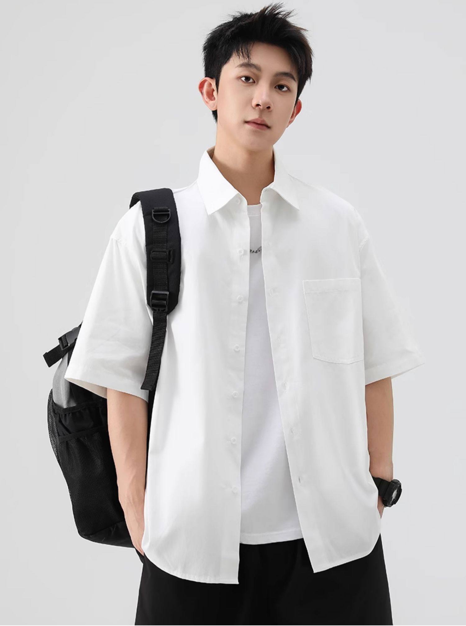 回力白色短袖衬衫男士夏季新款男生长袖半袖休闲工装衬衣冰丝外套