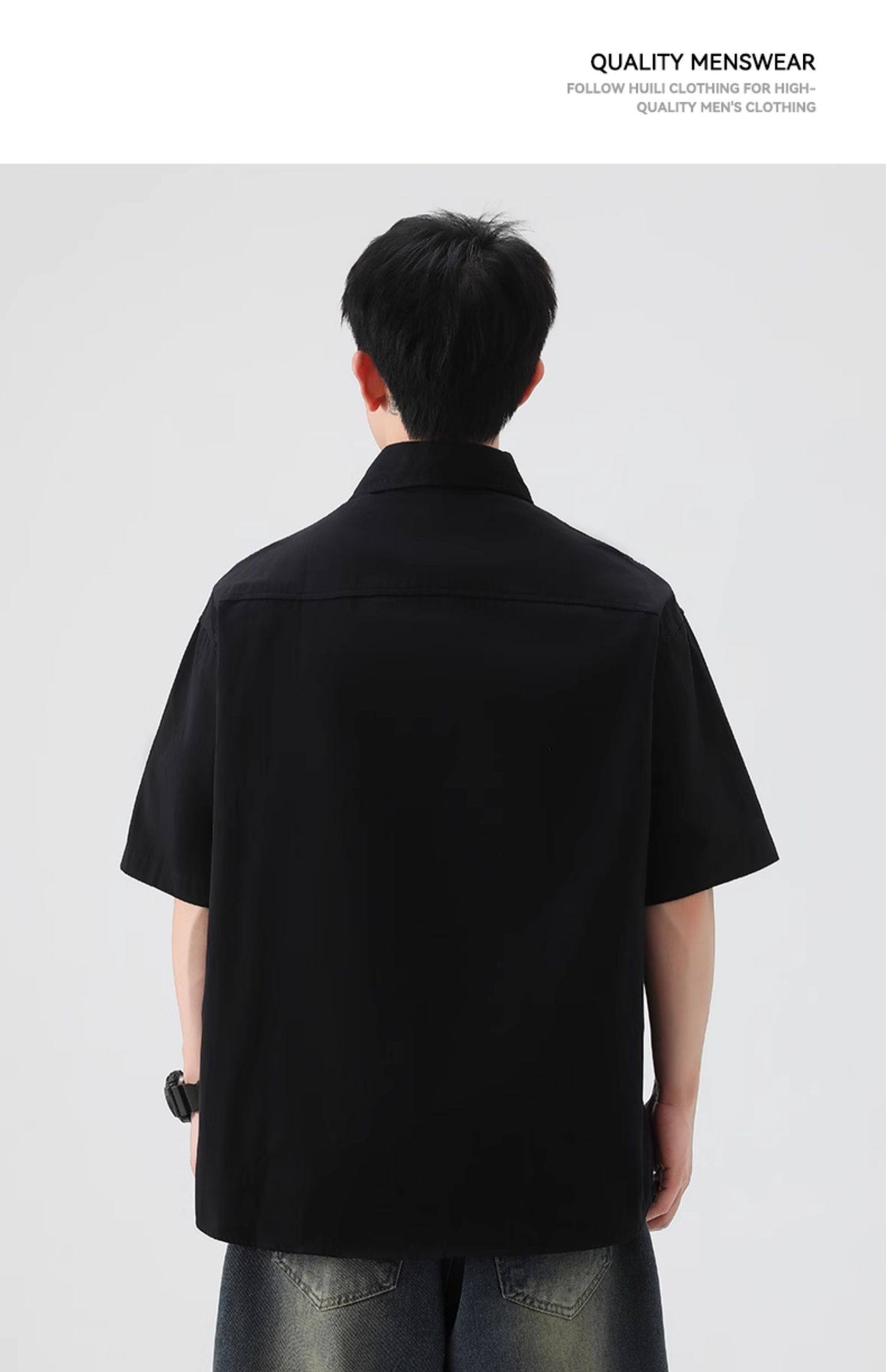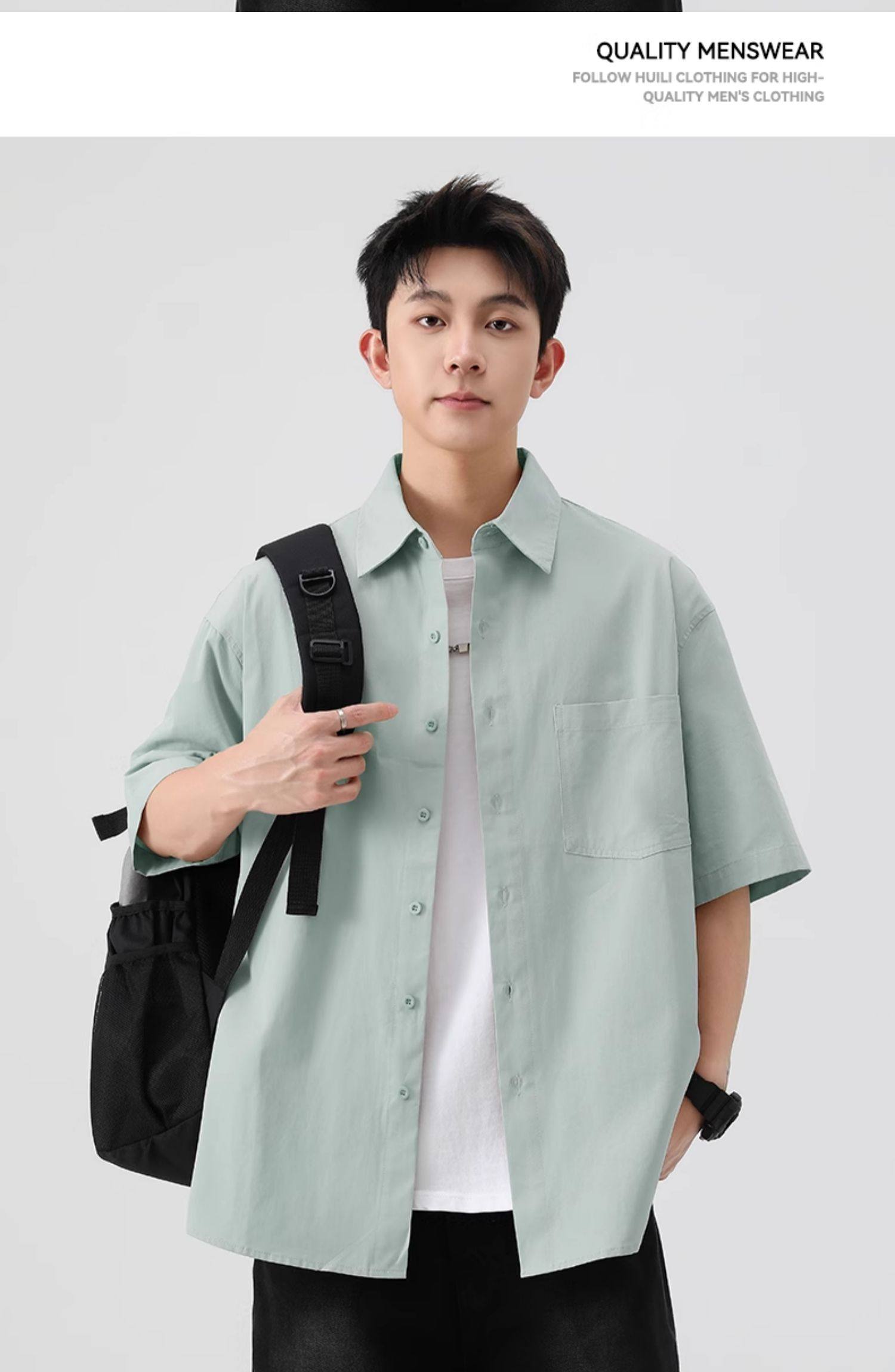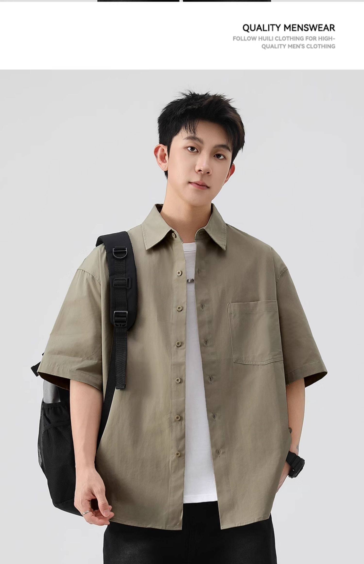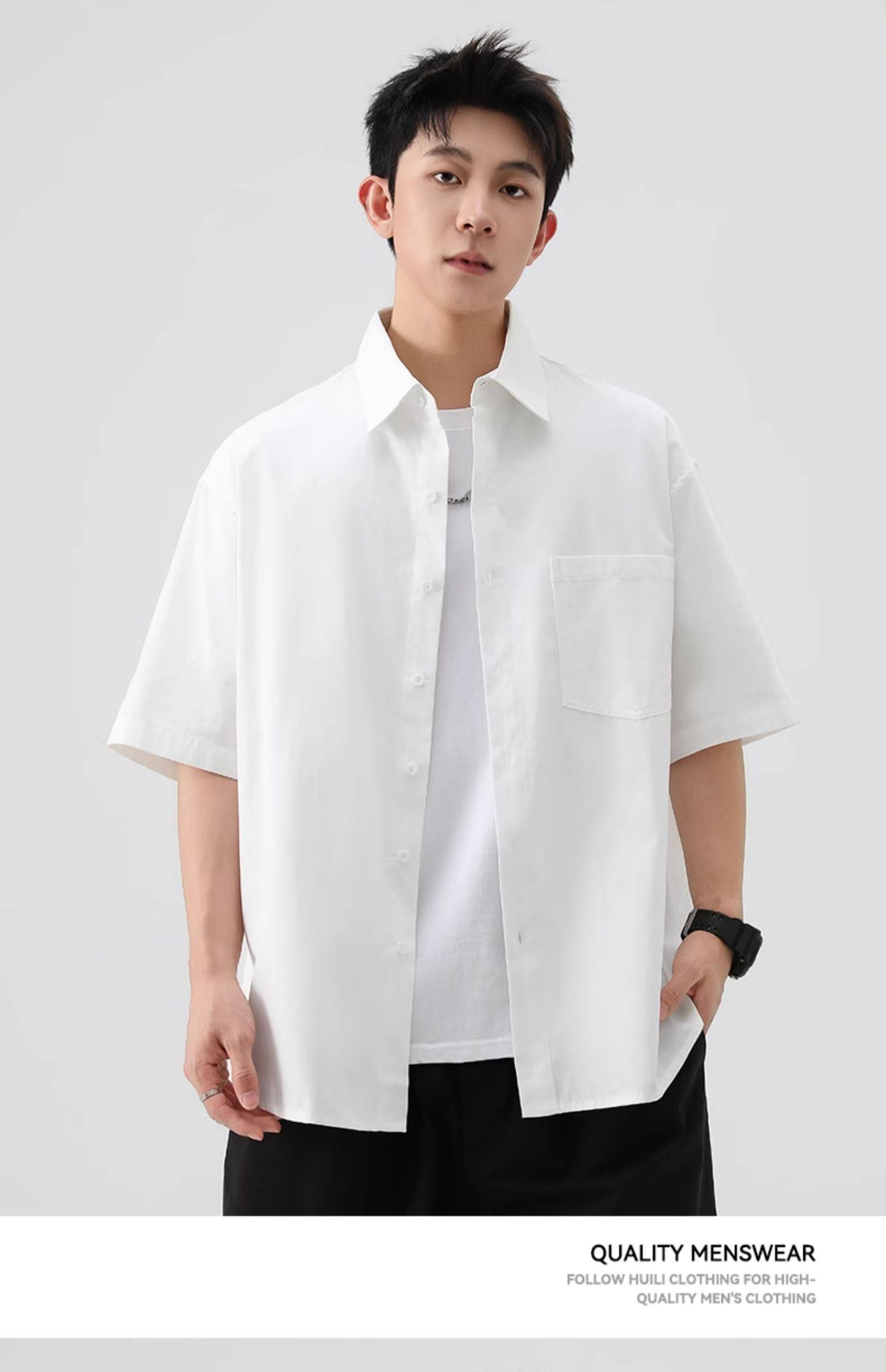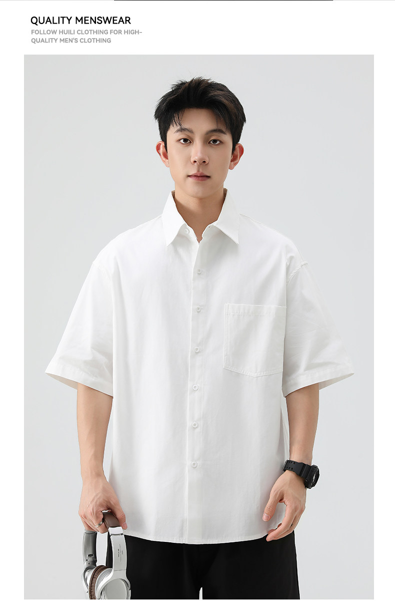 回力白色短袖衬衫男士夏季新款男生长袖半袖休闲工装衬衣冰丝外套
