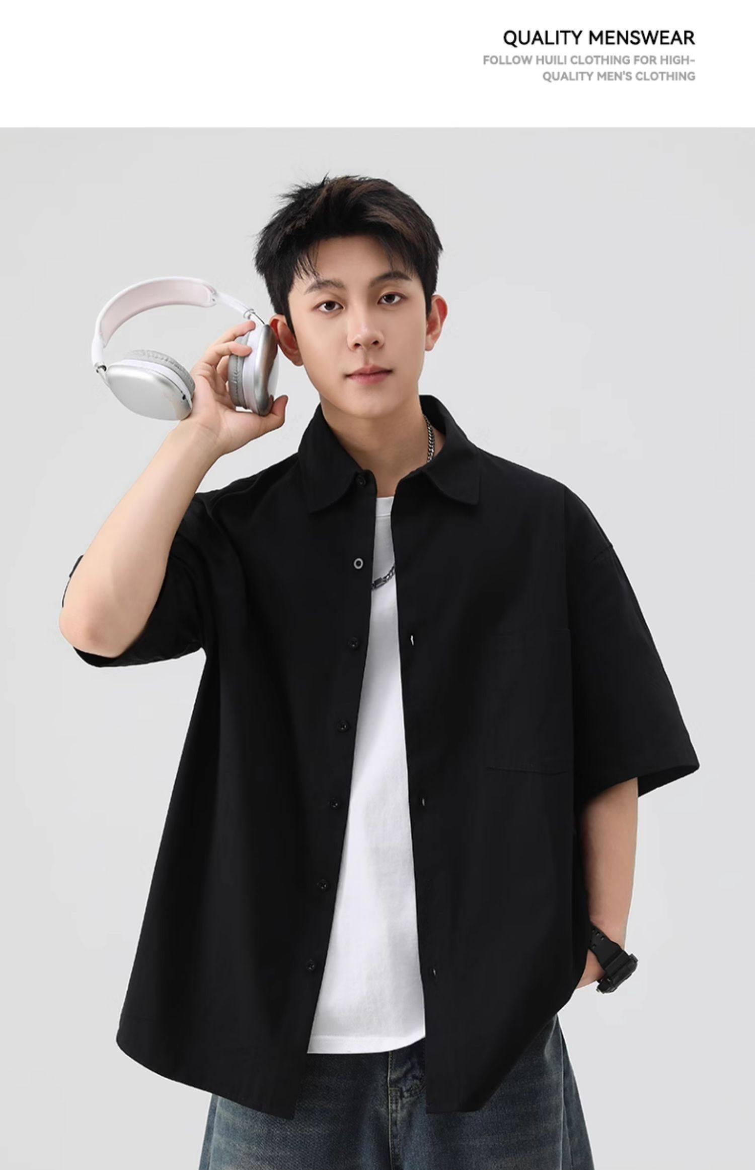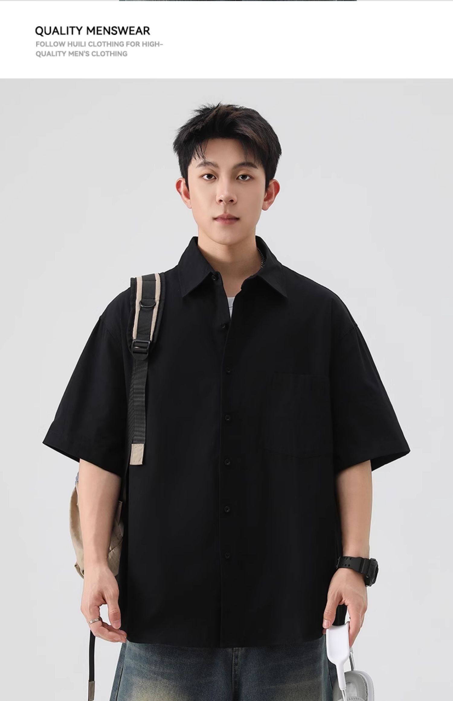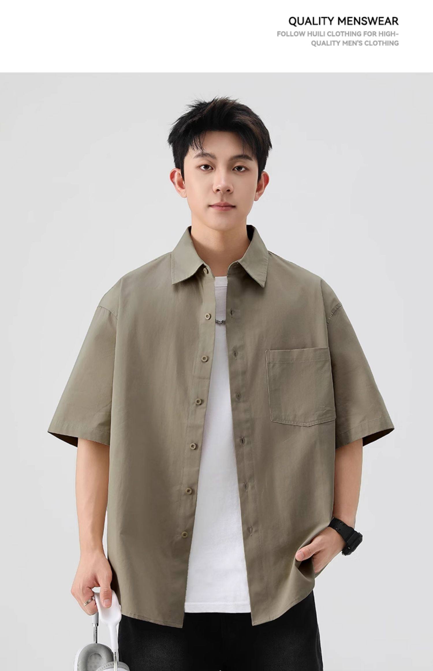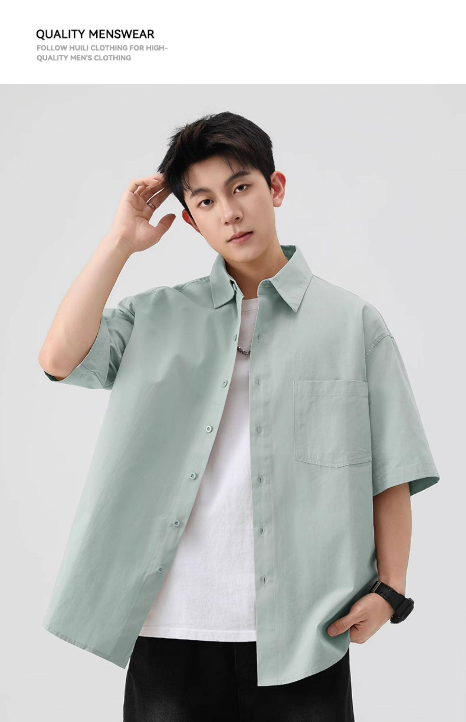 回力白色短袖衬衫男士夏季新款男生长袖半袖休闲工装衬衣冰丝外套