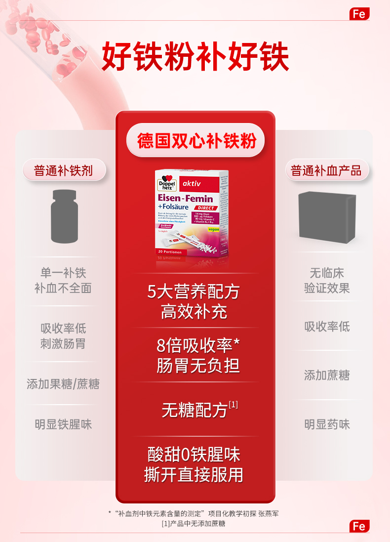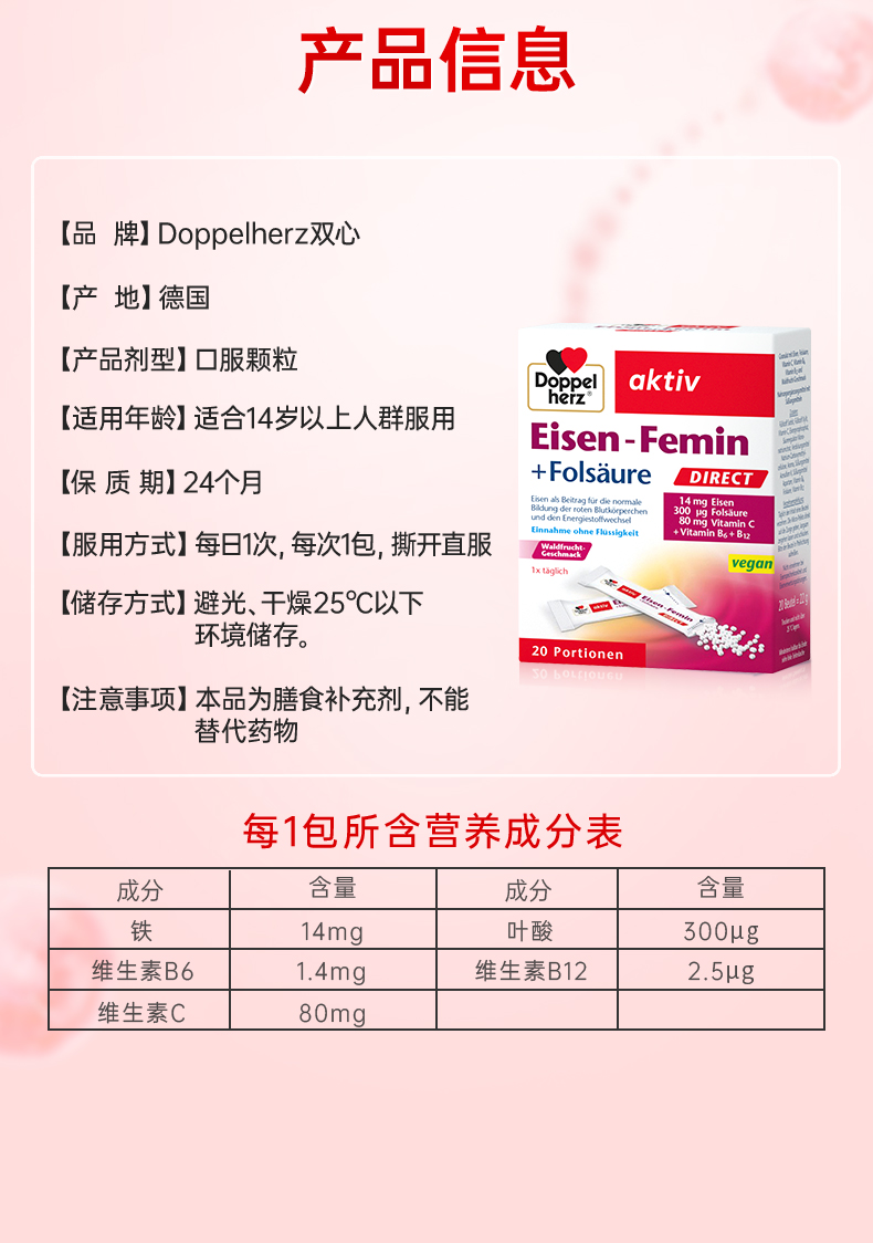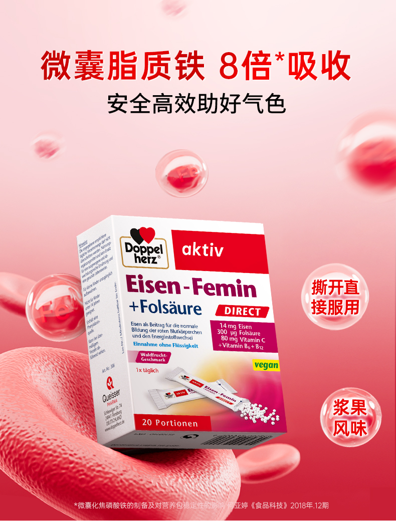 【德国双心】补铁口服颗粒随行装补铁剂20袋1-2盒装
