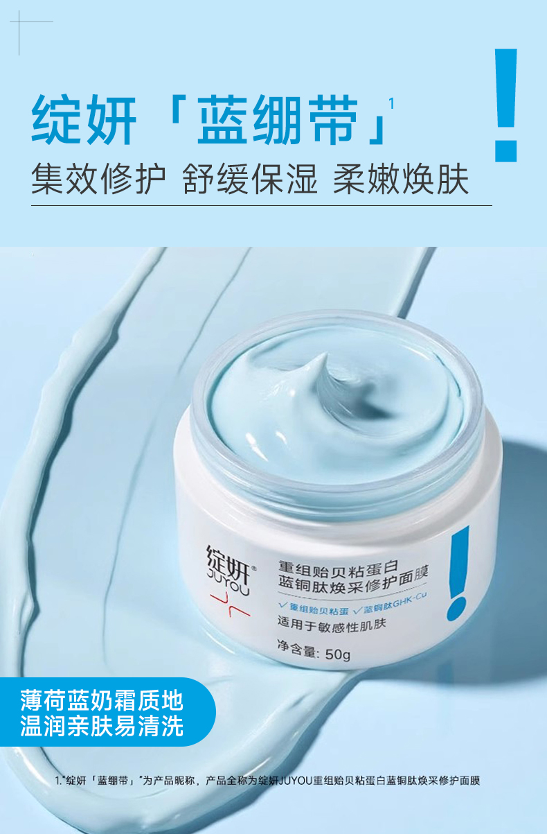绽妍蓝绷带重组贻贝粘蛋白蓝铜肽涂抹式面膜 保湿舒缓修护面膜50g