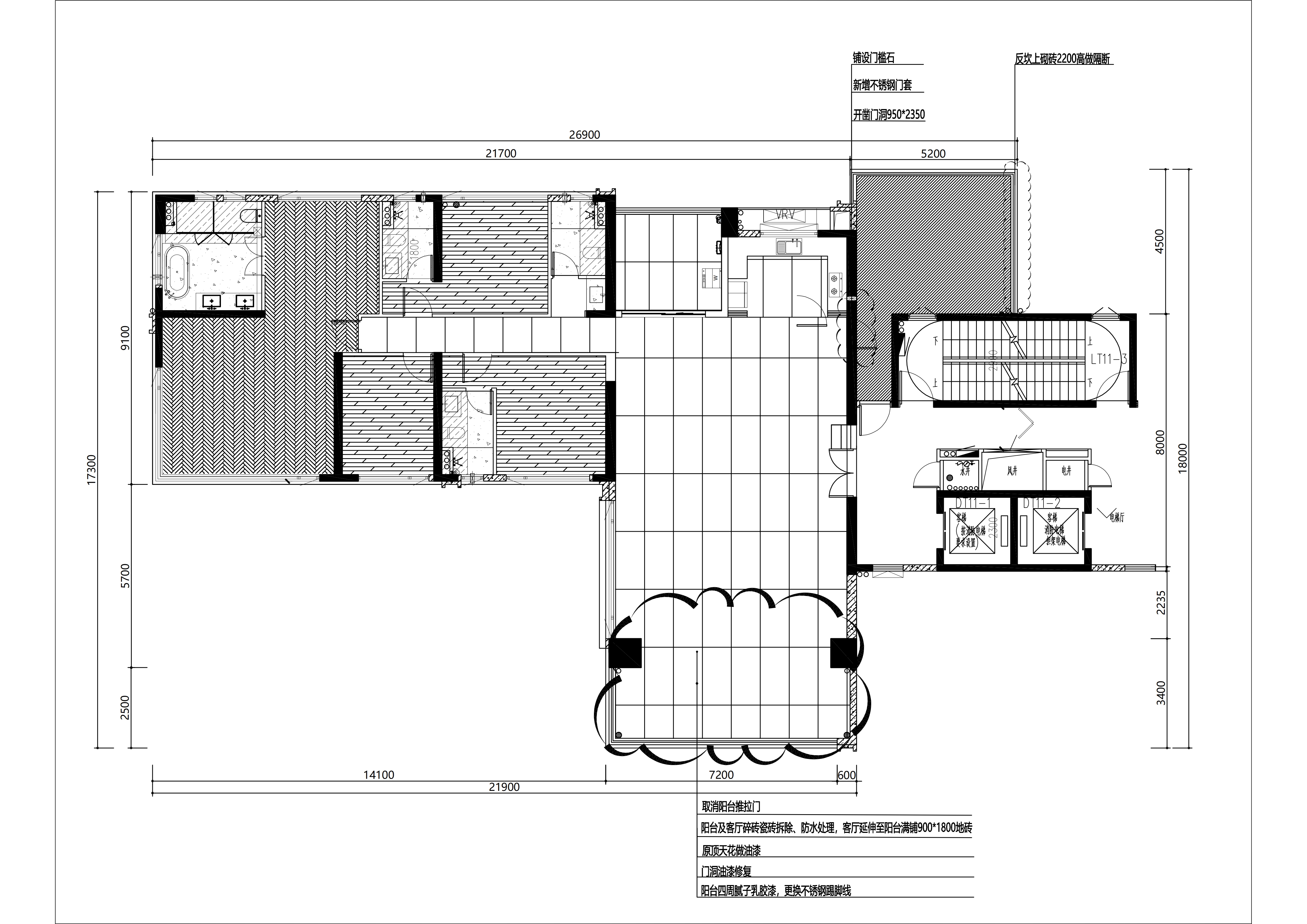 江门185A户型阳台通铺(奇数层)
