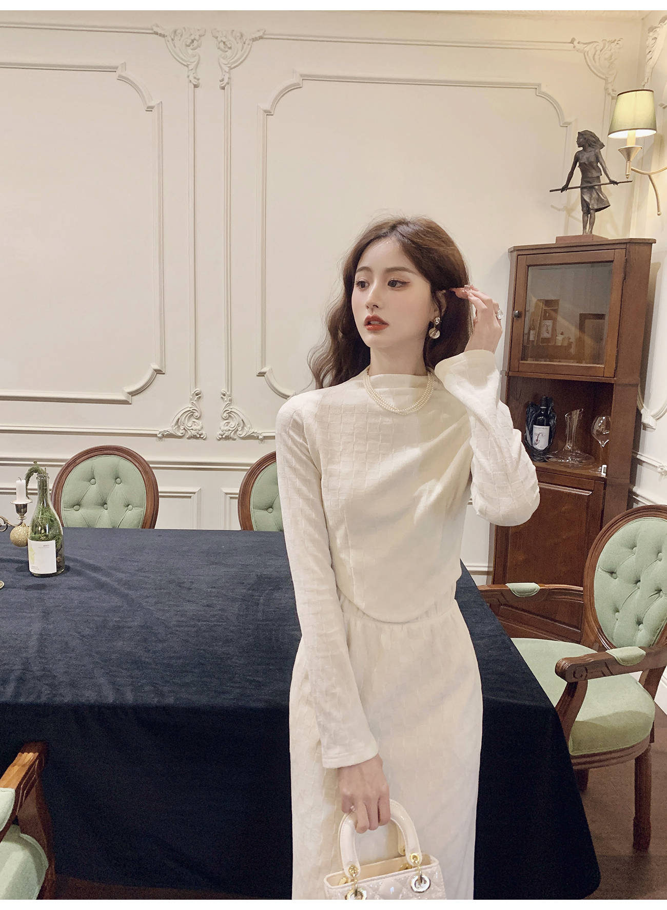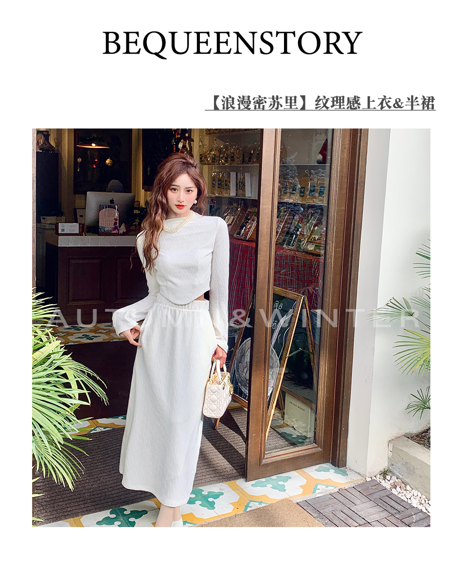 【孤品样衣,不退不换】【浪漫密苏里】温柔气质纹理感上衣&半裙套装