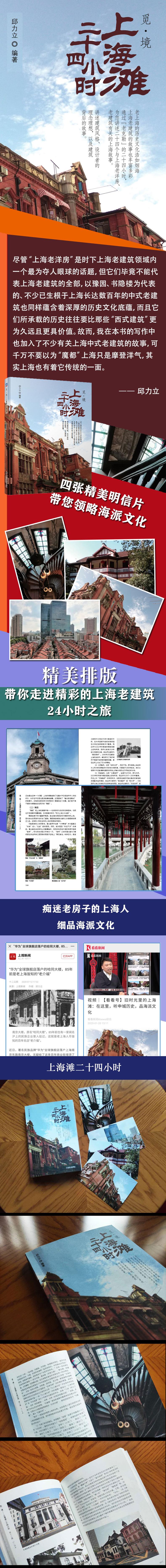 老上海的历史文化浩如烟海上海老建筑的故事也丰富多彩通过“老克勒”的二十四小时走访二十四栋老洋房。讲述建筑风格、设计拥有者的理念理想,以及建筑背后的故事。图片修过色,排版很文艺印刷很精美,纸感很细腻四张记录旅途的明信片这是一本可以在咖啡店慢悠悠阅读的故事集也是一本可以插在口袋里伴随你穿行上海滩的老笔记
