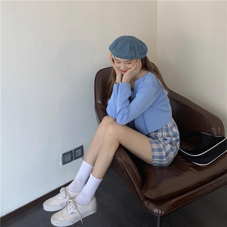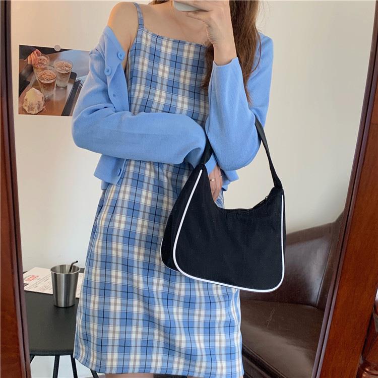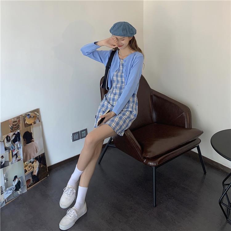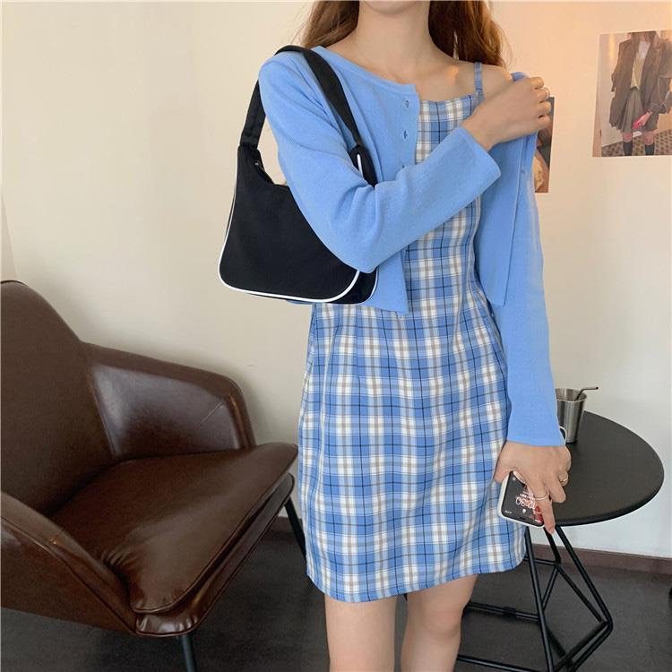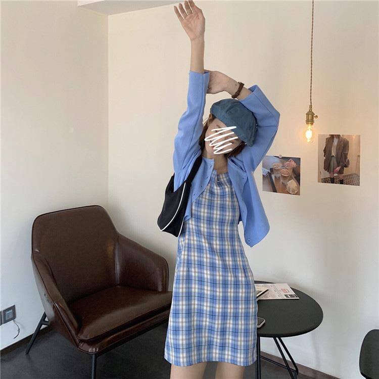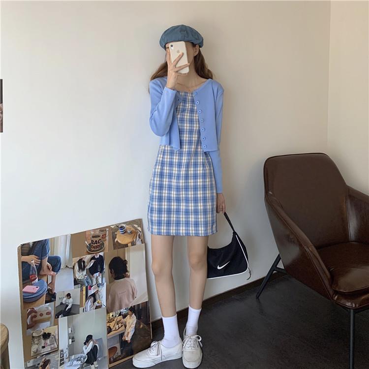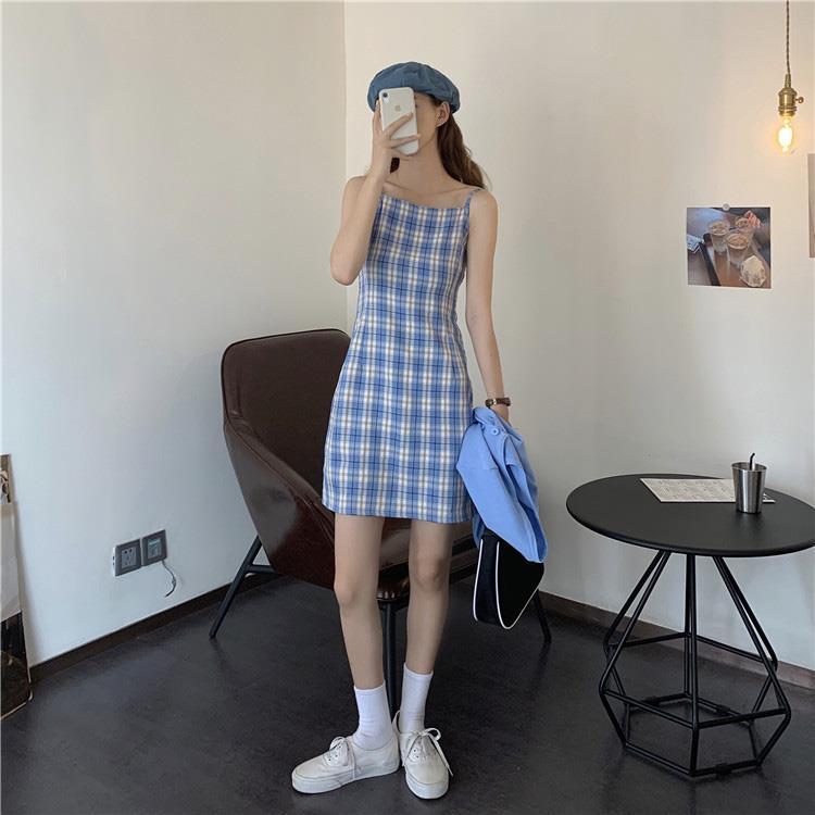 chic复古格子吊带连衣裙女2021夏季新款学生显瘦甜美气质初恋短裙七夕情人节