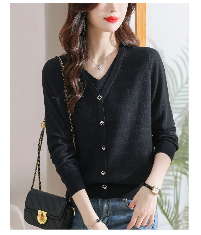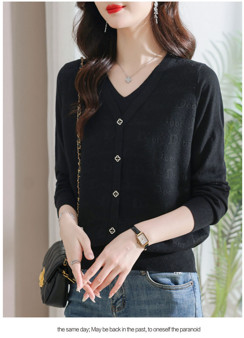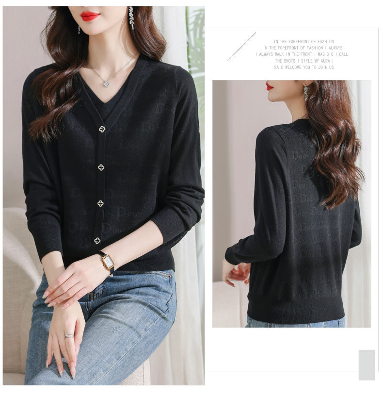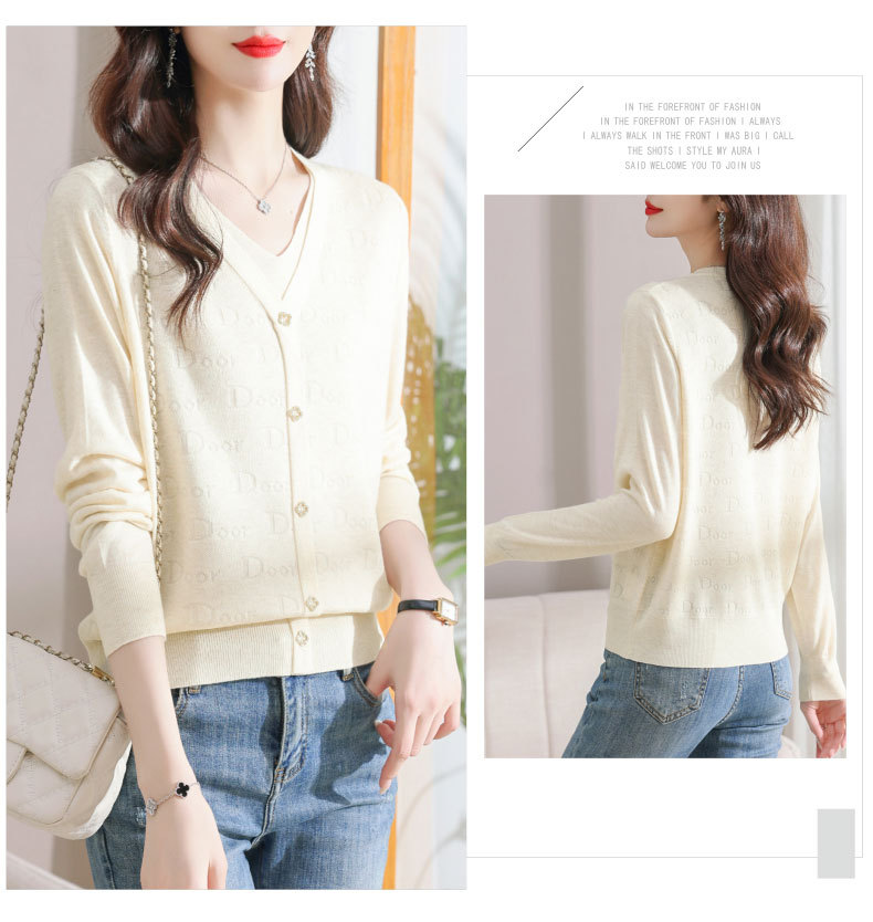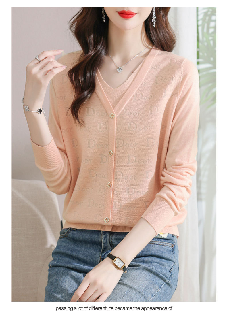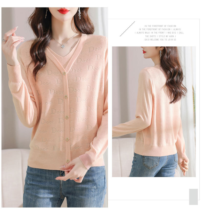 秋装新款,薄款V领假两件宽松年轻妈妈装长袖套头针织女装CC-9222