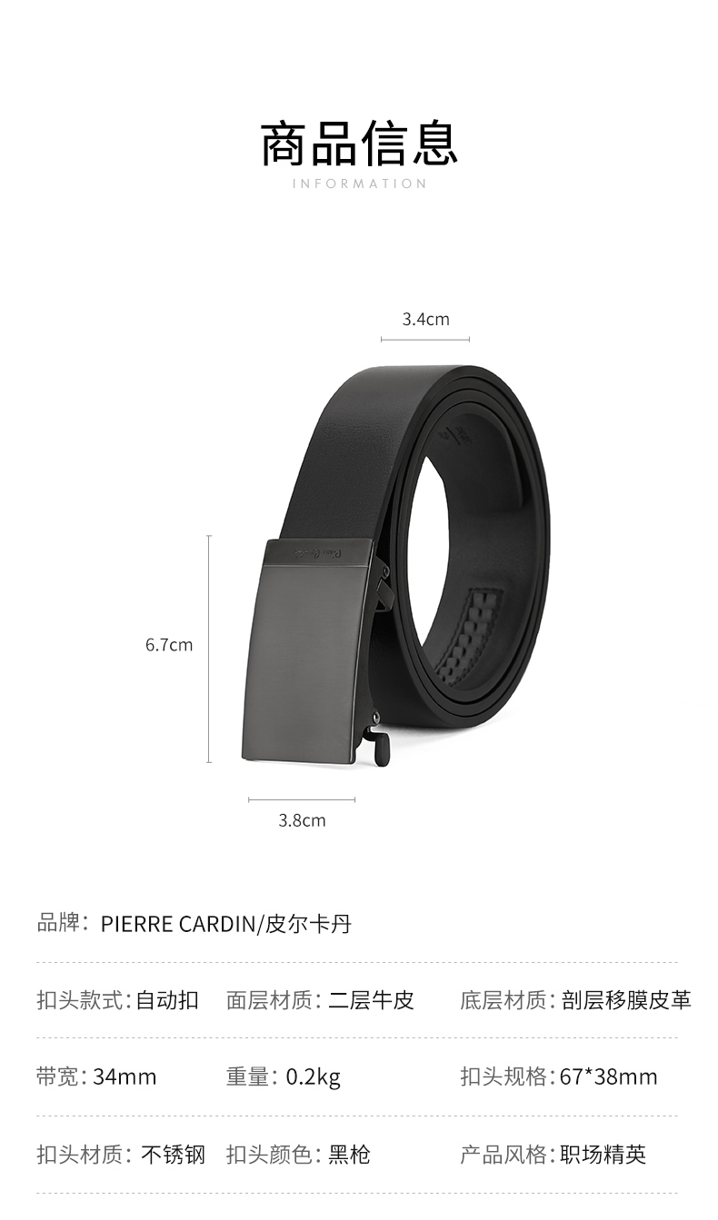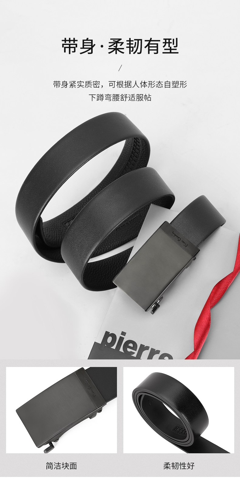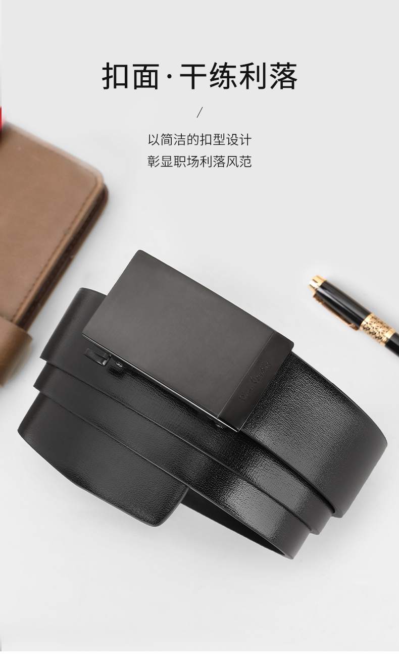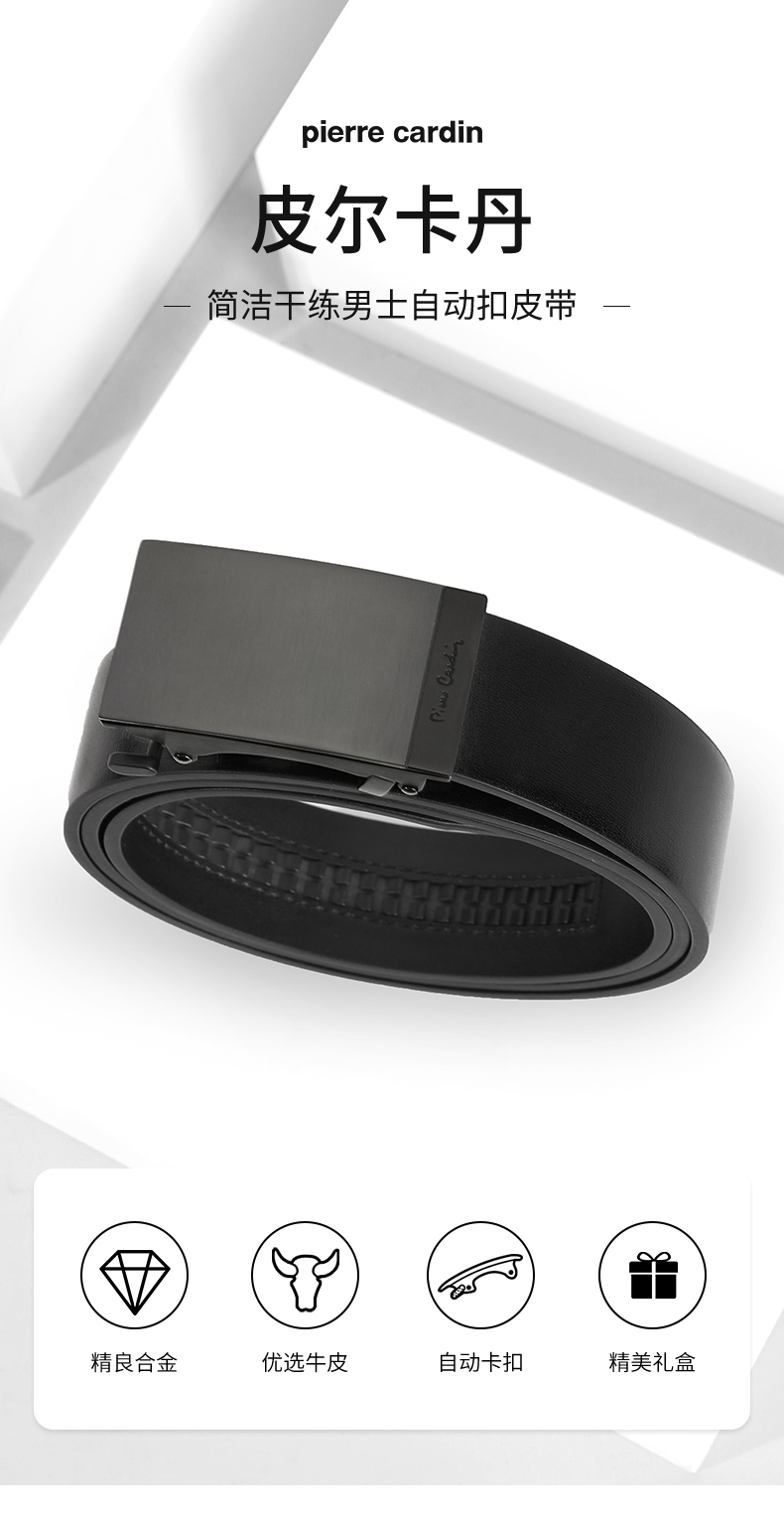 皮尔卡丹男士牛皮皮带经典大气头层牛皮商务都市自动扣男士腰带高级感牛皮男式裤腰带