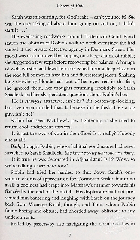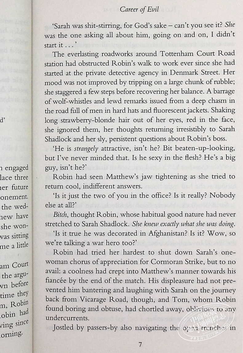 这本书是罗琳以笔名罗伯特·加尔布雷思推出的,主角是她的王牌侦探团队,考莫伦·斯特莱克(Cormoran Strike)和罗宾·艾拉科特(Robin Ellacott)。