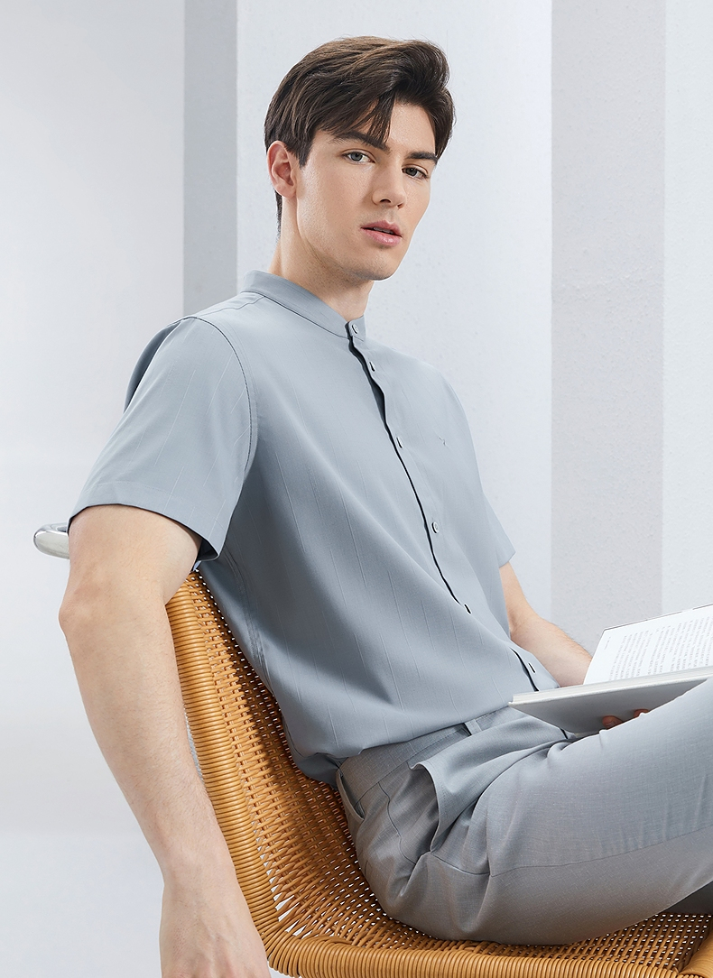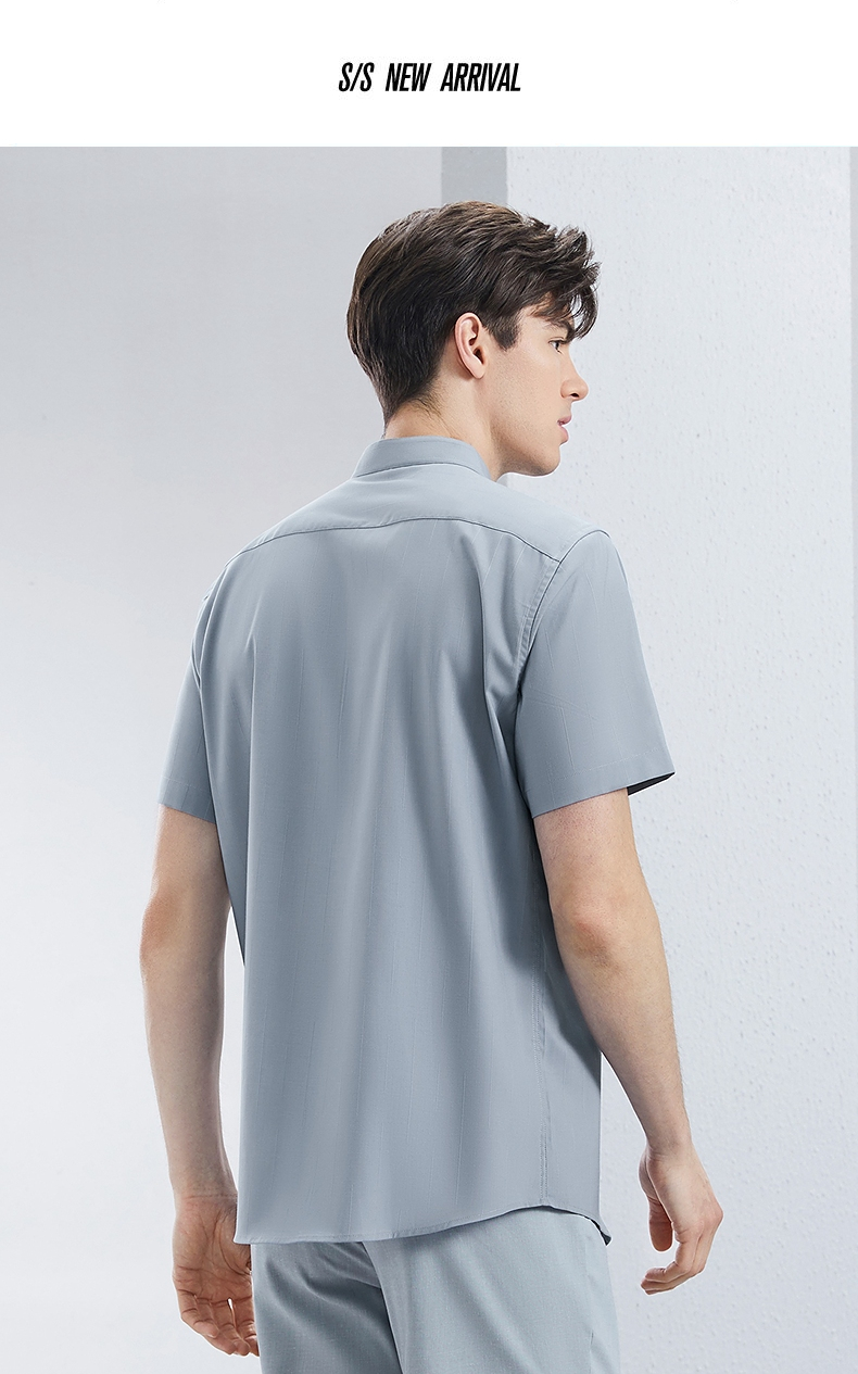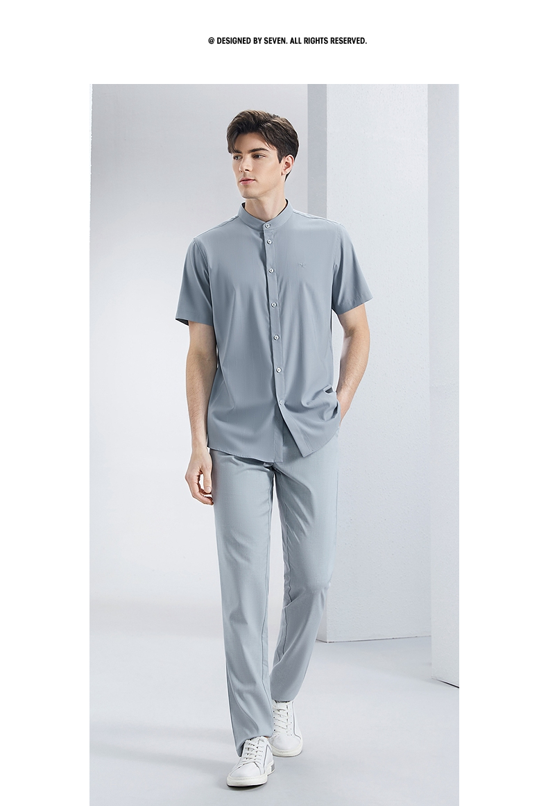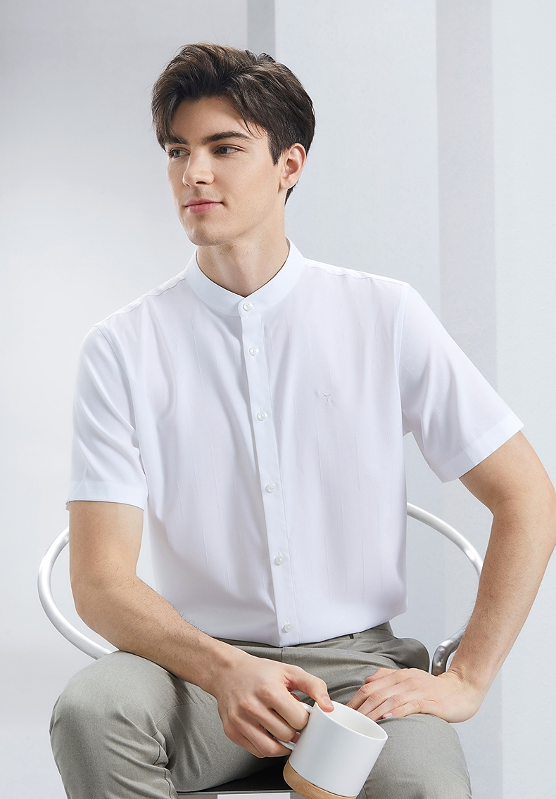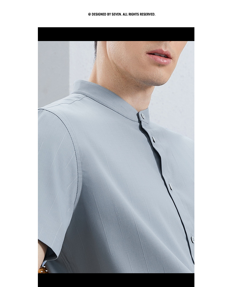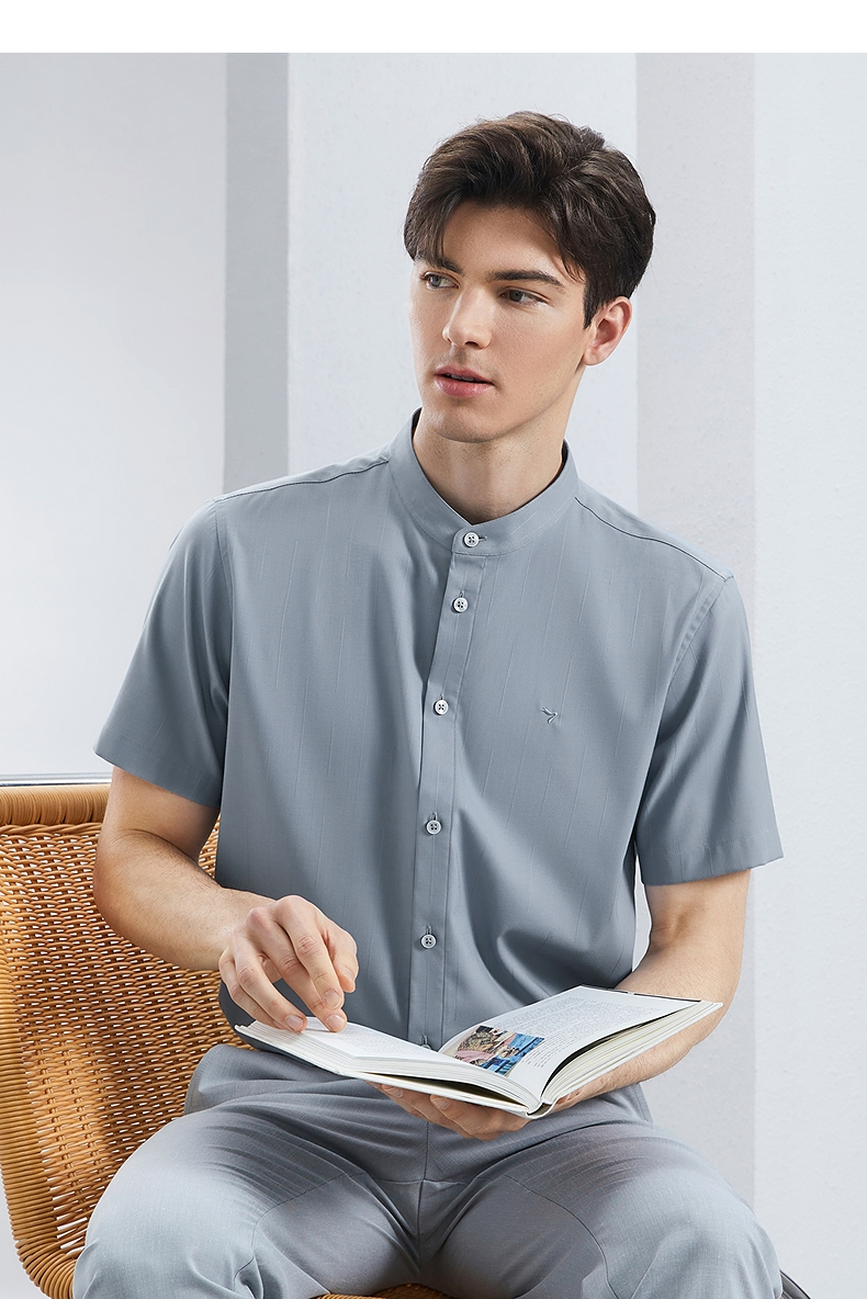 【含竹纤维】柒牌男士短袖衬衫2024夏季新款暗纹提花休闲立领衬衣 126A71190